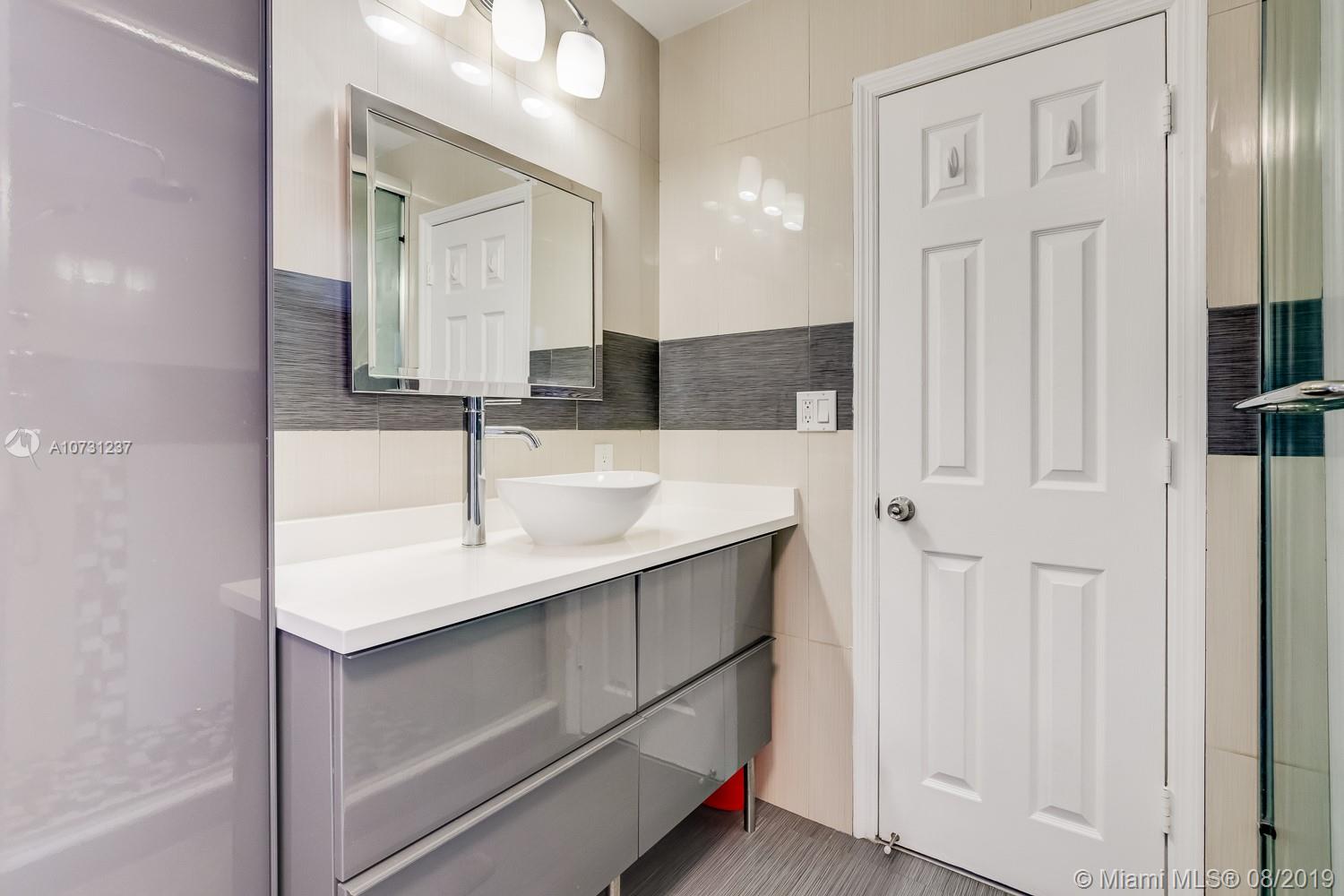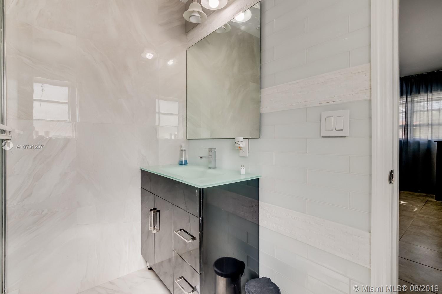 Price reduced. Seller motivated. Bring offers! Prestigious Hollywood Lakes home exceptionally priced and fully renovated with over 1900 sq ft. Beautifully landscaped w/2 car garage in the rear of the property allowing for beautiful front 'curb appeal'. Kitchen features stainless steel appliances with quartz counter tops, waterfall center island & custom lighting. 32" porcelain tile throughout including bedrooms. Master bedroom features fully updated modern en suite bath, 2nd bedroom features en suite bath with double access to the main house. A/C and roof are less than 10 years old with updated electrical throughout. Separate laundry room with side entrance door. Perfect for young families or 'empty nesters' looking to live in the heart of Hollywood 1/2 mile from the beach & downtown.