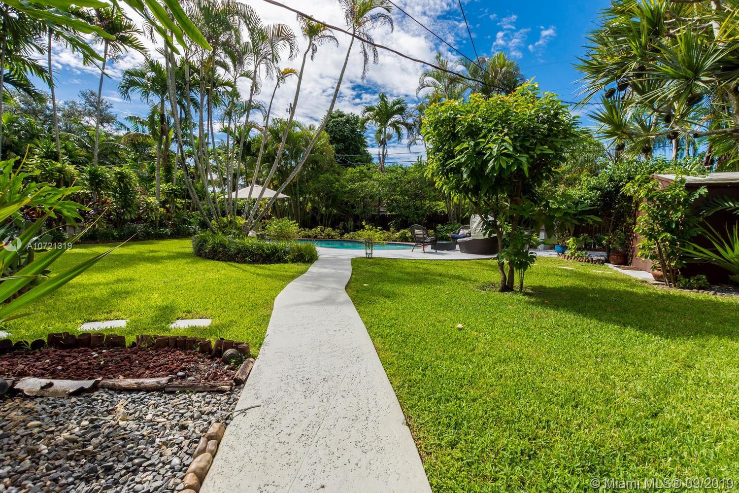 Welcome HOME! Resort-style living... swimming pool RETREAT! Fabulously classic Miami Shores "Charmer" featuring original 1940's architectural style...Enjoy the 'Best of Both Worlds'! Beautiful modern open kitchen and top-of-the-line appliances w/elegant Carrera marble 'waterfall' counter and breakfast bar. This home is wonderful to entertain in, with in-door & out-door living room and dining room...all leading to the private and lushly landscaped and tranquil backyard and pool! Rich wood floors and open concept. Located on a quiet street with cul-de-sac. Both bathrooms are tastefully updated, too! Garage was converted into the 3rd bedroom with permits. This special home will go fast!