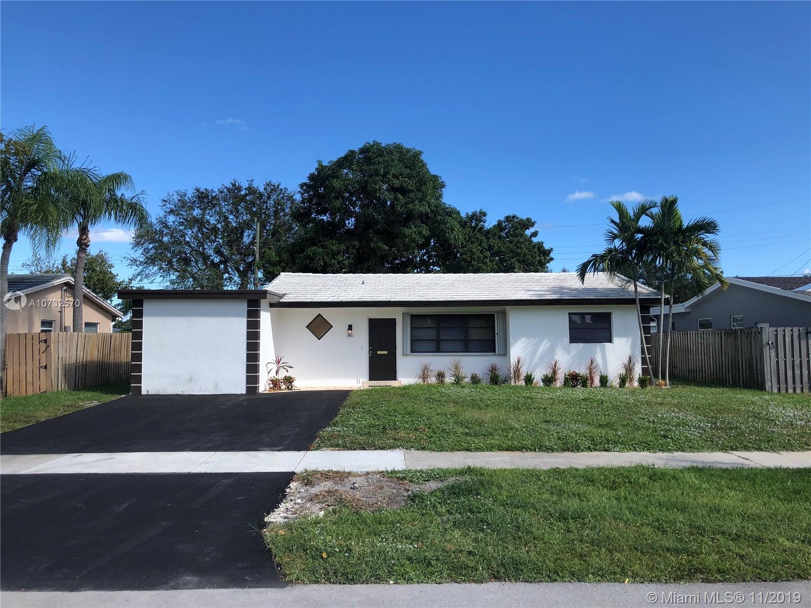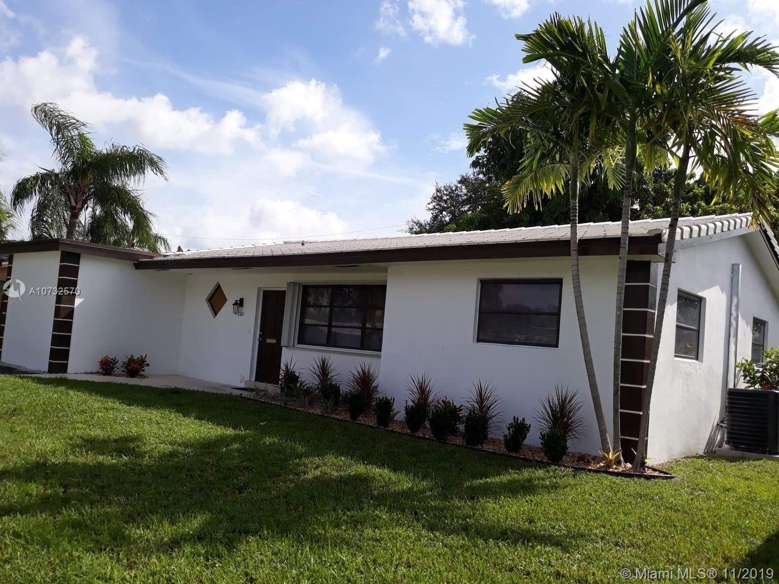 This beautifully updated home is move-in ready! Perfect location, spacious and bright 3 bedroom 2 bath with porcelain floors, kitchen with wood cabinets and granite countertops. Completely remodeled bathrooms, laundry area. Brand new A/C unit, electrical and LED Lighting inside and out This house is a must see, close to A rated schools, houses of worship, shopping and dining. Rear alley for garbage pickup & access, mango and avocado trees. Flat tiles roof. All the renovations done with permits. Plenty of parking in the new driveway