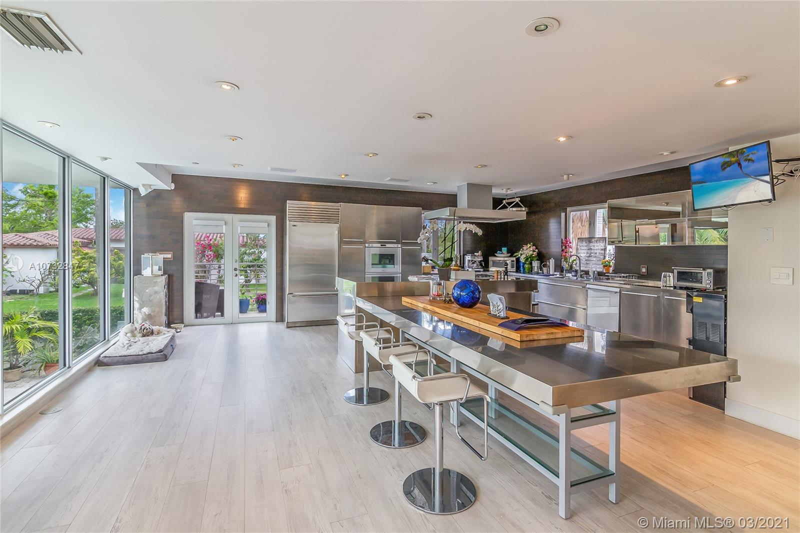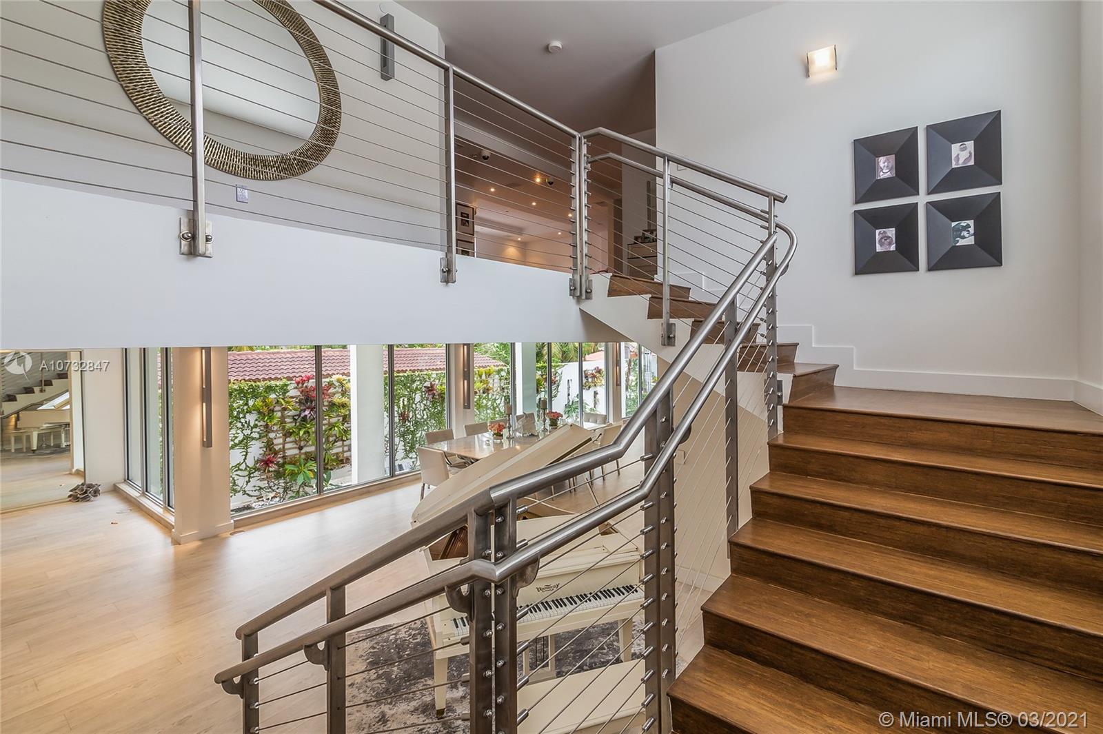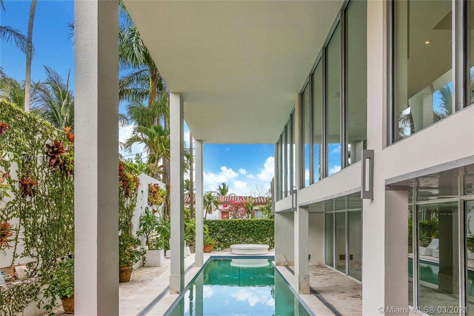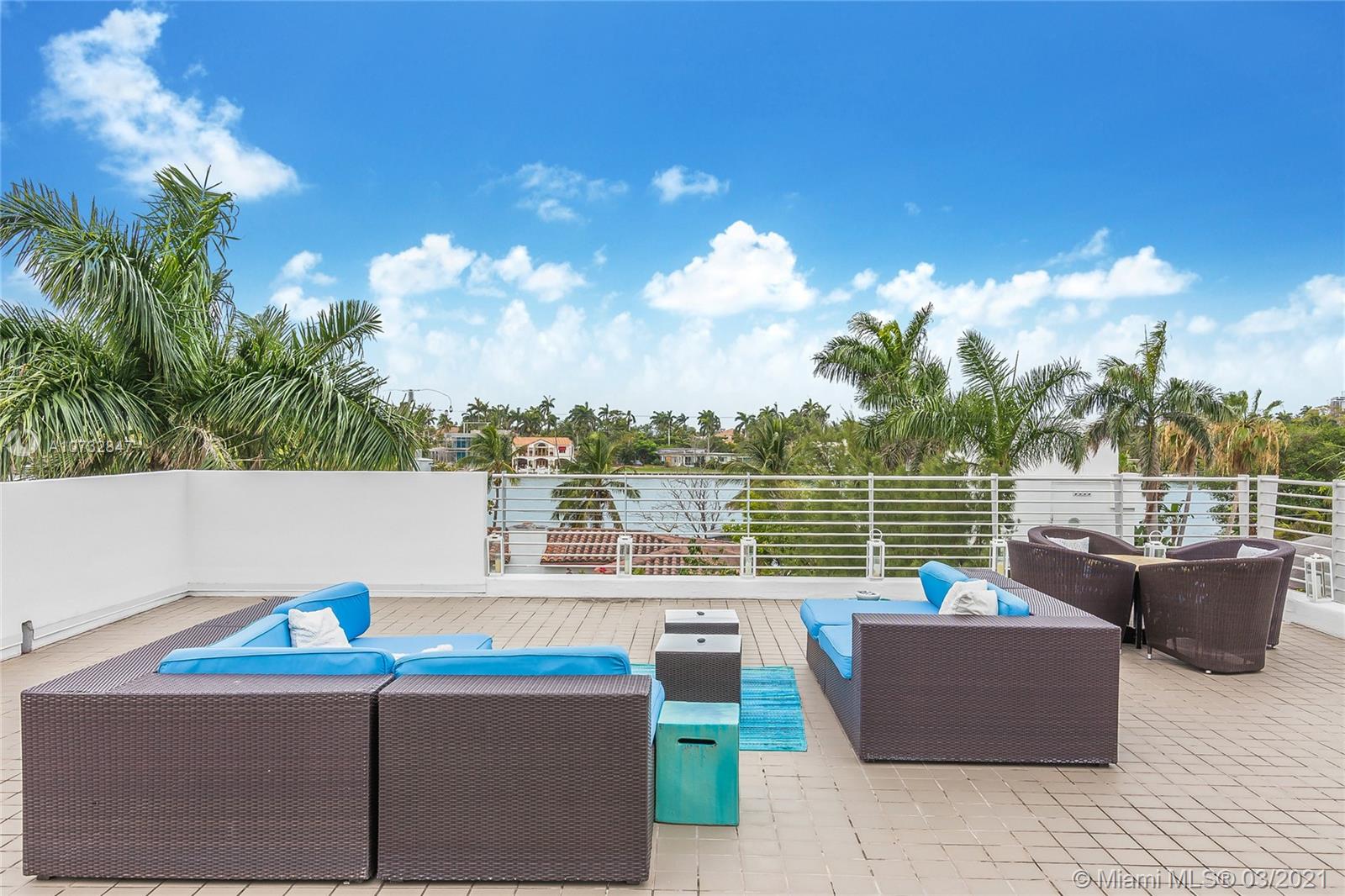 Modern, fully upgraded, three-story residence on prestigious Palm Island. In addition to the grand living and family room, open kitchen, two master suites, imported Italian finishes, this home has 2,500 SQ FT large sky terrace offering stunning water and sunset views. All impact glass windows, custom closets, cameras, security and sound system, are part of this rarely large home.