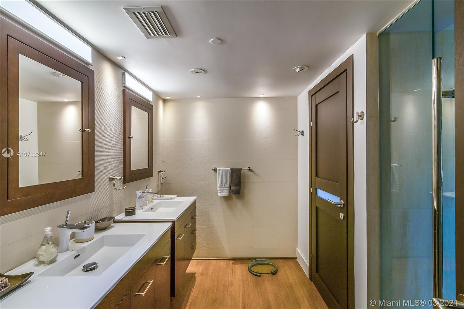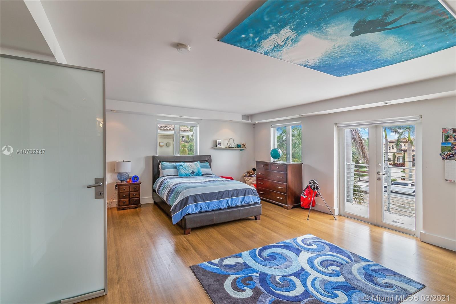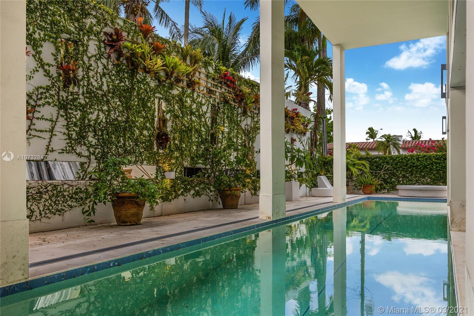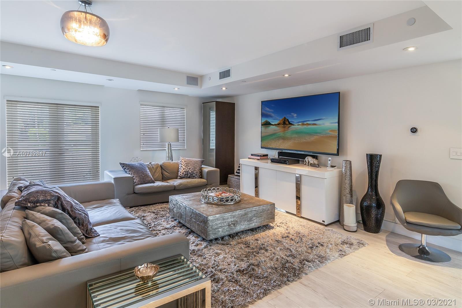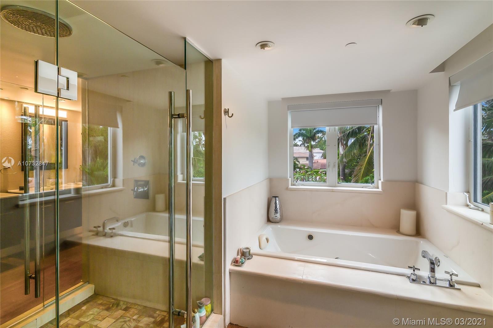 Modern, fully upgraded, three-story residence on prestigious Palm Island. In addition to the grand living and family room, open kitchen, two master suites, imported Italian finishes, this home has 2,500 SQ FT large sky terrace offering stunning water and sunset views. All impact glass windows, custom closets, cameras, security and sound system, are part of this rarely large home.