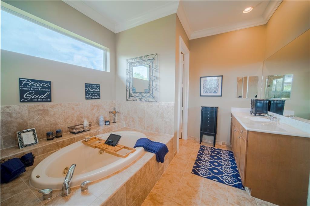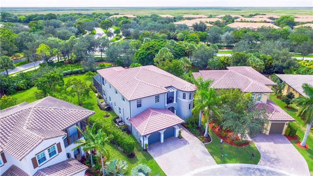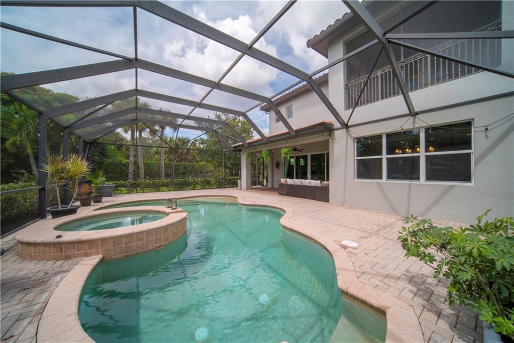 Contemporary & Turnkey Expanded St. John Model w/5 Beds + Loft, 4 Baths, Pool & Spa on a Large, Pie-Shaped Cul-de-Sac Lot. Freshly Painted Outside, Impact Windows/Doors, Hardwood Floors, Crown Molding & Upgraded Light Fixtures Throughout Living Areas. Upgraded Kitchen w/Granite Countertops, SS Appliances, Pantry, Off White Wood Cabinets & Contrasting Brown Center Island w/Barstool Seating. Open Family Room w/Sliding Glass Doors Opens Up Into Large Covered Patio Area & Screened-In Pool. Downstairs Has 1 Full Guest Bed & Bath. Upstairs Master Suite w/Tray Ceilings & Walk-In Closets Has A Screened-In Balcony Overlooking Pool & Backyard w/Upgraded Landscaping. Master Bath w/Glass Shower, Whirlpool Spa Tub, Dual Vanity Sinks. Enjoy Guard Gated Community, Resort Style Amenities, A-Schools!