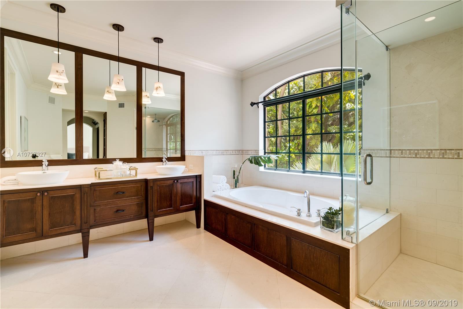 The finest street in North Coconut Grove is the backdrop for this beautiful home. Built in 2007, the architecture is timeless. A superb floor plan enhanced by volume ceilings & graceful windows allow abundant light throughout. Generous first floor living spaces include a cook’s kitchen opening to a large family room, formal living room with fireplace, dining room, office & one bedroom. The sweeping staircase leads to a stunning second floor. Upstairs bedrooms are all en suite for luxurious living. The master has a sitting area, balcony & his/her custom closets. Among the special features is a private second floor guest suite. Impact windows, generator, covered terrace overlooking the pool & waterfall, gated entry & century old oaks add together making this A Very Special Home.