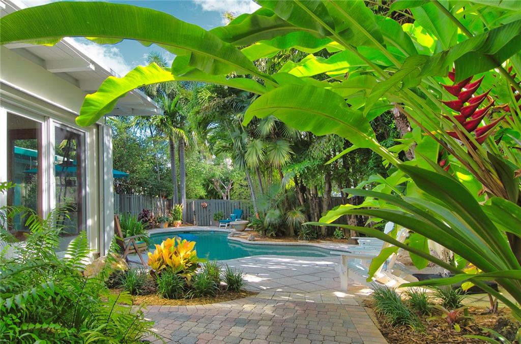 This classic Victoria Park home is located on a spacious corner lot a short walk to Las Olas. The split floor plan is centered by a lovely living room with gas fireplace, beautiful original hardwood floors and stunning garden views from the wrap around wall of windows and sliding glass doors. The centrally located kitchen opens to the dining and great rooms with a breakfast bar and features updated Kenmore stainless steel appliances including gas stove. The home is nestled in a park like setting that features mature trees, professionally landscaped gardens and truly custom designed pool. A newly renovated a/c double car garage with lots of storage, W/D and water filtration system make this a truly special find. Developers this RC 15 Med-Density Zoned lot is 9327 SQ FT per county records.