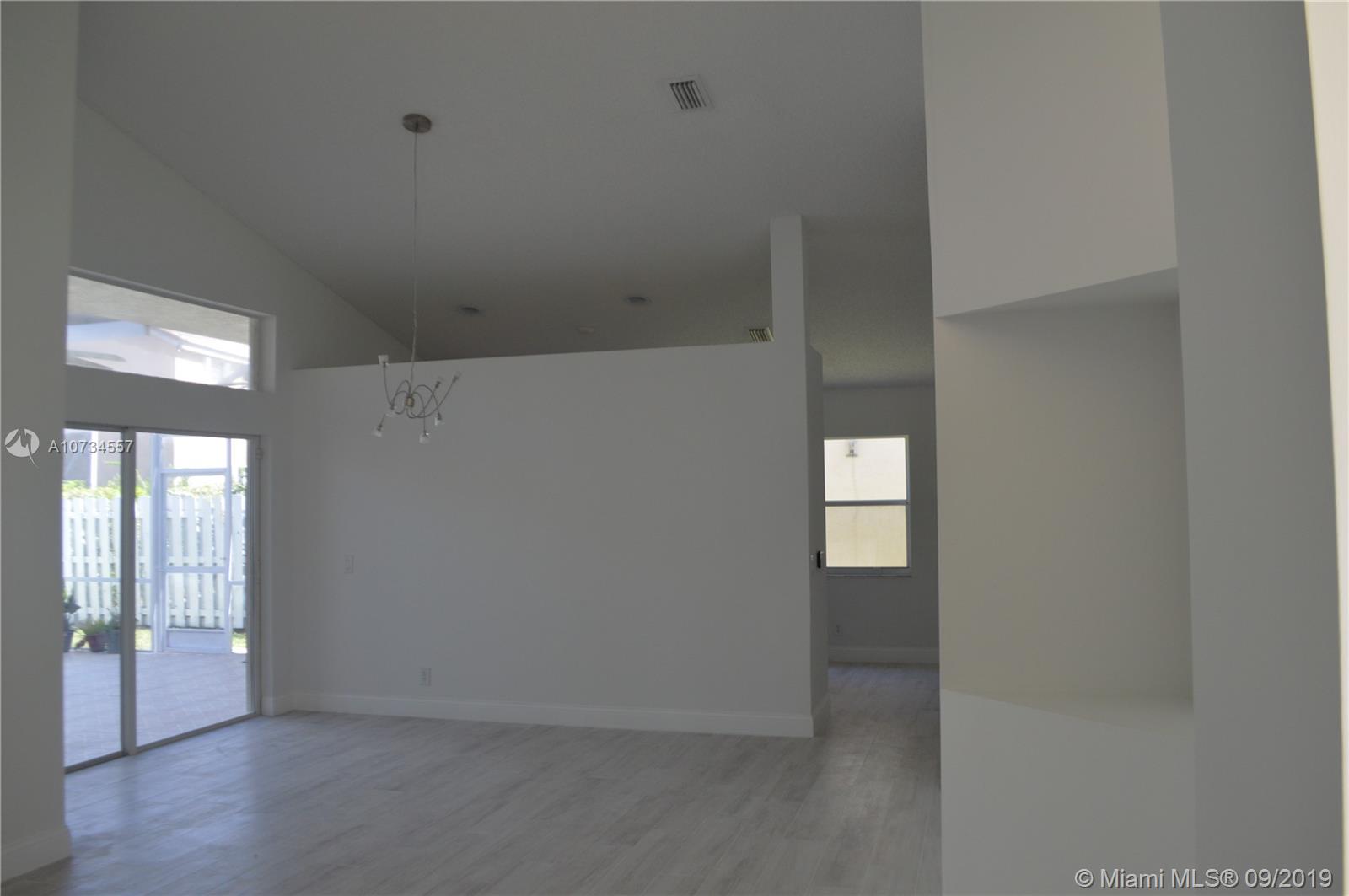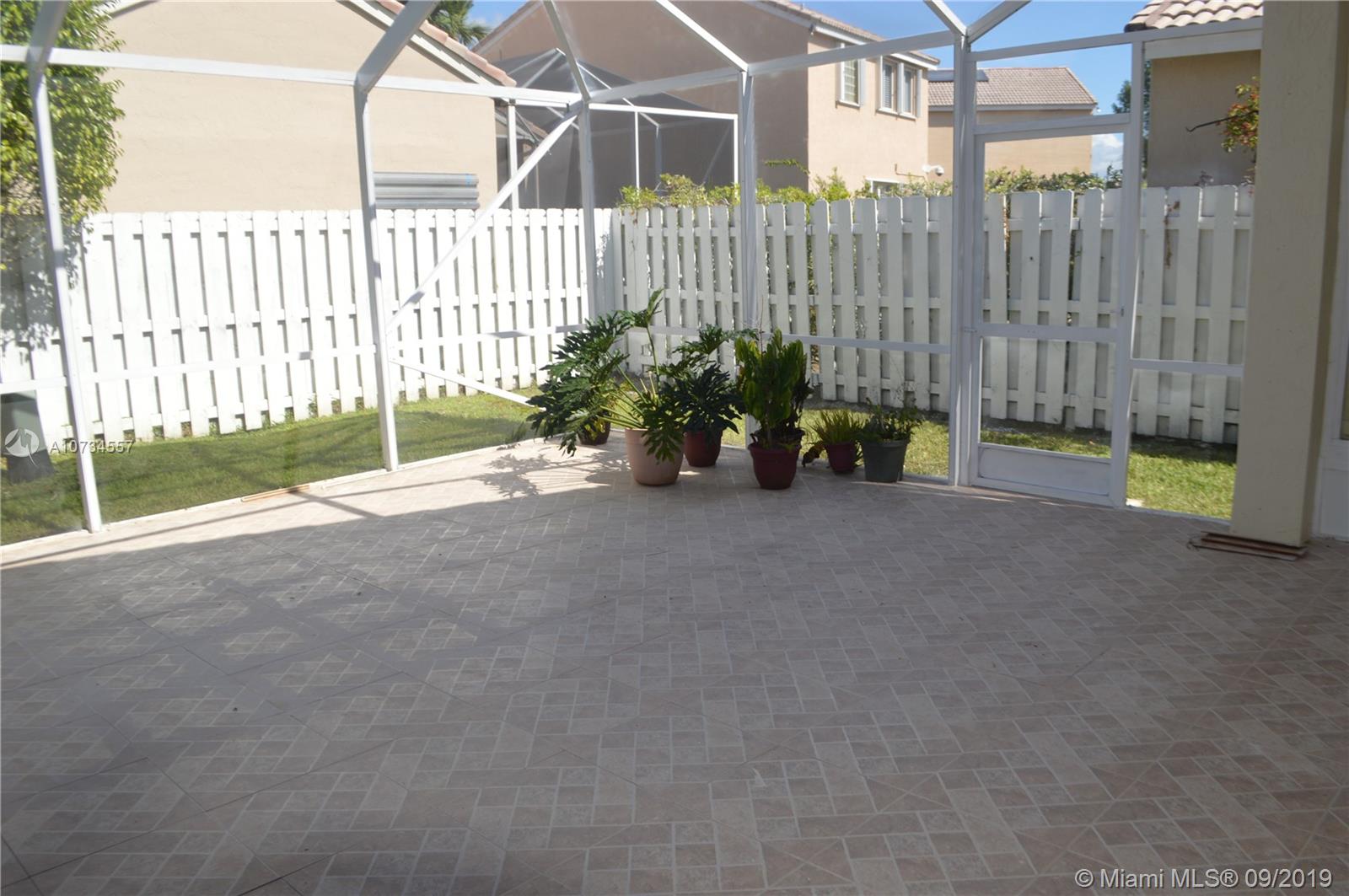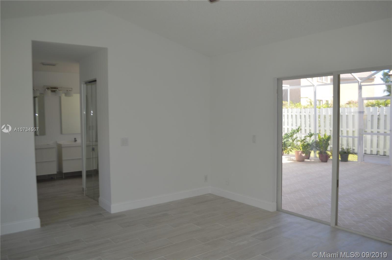 Beautiful house with spacious and bright living areas, 3 bedrooms, 2 baths. New modern floors, bathrooms and spectacular kitchen ready to be used for the first time. Private screened patio with new ceramic floors perfect for outdoor enjoyment. Hurricane shutters. Ample garage with 2 storage units. This pretty house is conveniently located very close to The Falls community area including pool, basketball court and play ground. A+ rated Schools and easy access to major highways.
