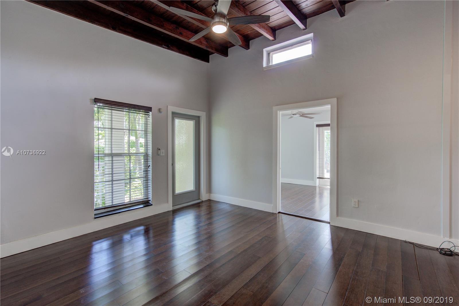 North Miami pool home. Nice privacy hedge and fencing surround this tropical paradise. Wood floors are complemented by vaulted wood beam ceilings, open kitchen to living and dining area. Three bedrooms, one with French doors leading to the pool. Large Contemporary bathroom with dual sinks and huge shower with rain head. Some of the windows are hurricane impact, giving additional security and energy efficiency. Very Private pool and patio features a large covered built in bar and BBQ area great for entertaining. Within walking distance to downtown North Miami, City Hall, MOCA, shops and restaurants.