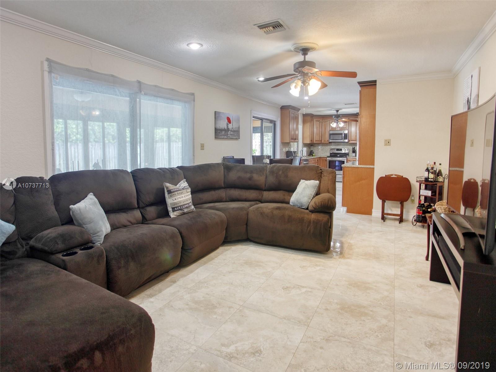 Beautifully Remodeled house in Plantation Hills. **This one story beauty consist of 3 bedrooms 2 bath 2 car garage with a pool**2594 sq ft. Fabulous kitchen with ample cabinets Thomasville** and granite counter tops * New 24" Porcelain tile floor throughout** laminated floor in all 3 bedrooms**formal living and dining rooms*Texture wall and crown molding. Spacious living room. Sliding impact glass doors lead out to a large enclosed patio with impact glass and into the pool area and yard.*all windows are hurricane impact glass **Wood private fence**walk-in closet in all bedrooms**This home is in great condition.! A Must see.! NO HOA