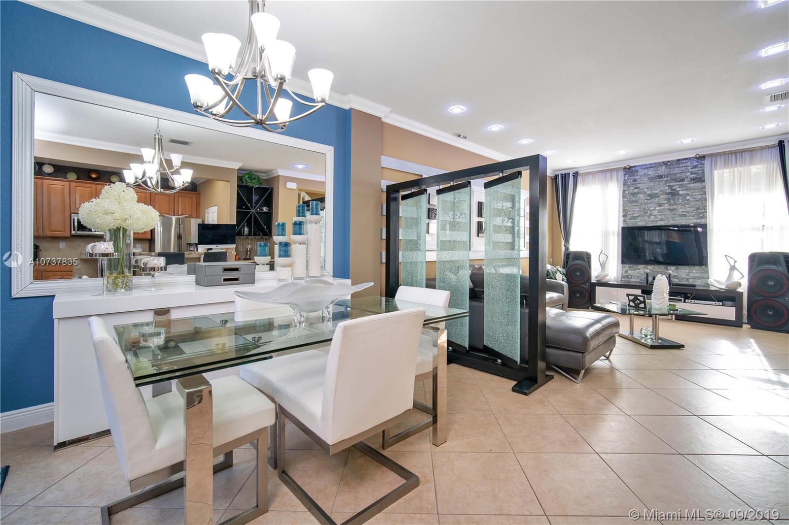 Beautifully upgraded property with 3 bed 3 full baths. Master bed w/ large walk-in closet, master bath w/dual sink vanity, shower & enclosed toilet room. Loft converted into a large 4th bedroom w/ access to the balcony. second floor upgraded with ceramic tiles, new contemporary style doors and custom made closet cabinetry. Elegant stairs upgraded in dark hardwood. Open living and dining area with 10 ft. ceilings and decorator touches throughout, Bar cabinetry and electric fireplace conveys with the property. Gourmet kitchen cabinetry and granite counter tops, New energy efficient SS appliances, impact windows, ceramic flooring on 1st floor. One bed & a full bath are located on the first floor. Additional storage added underneath the staircase. Patio w/rear entry. 2 car garage.