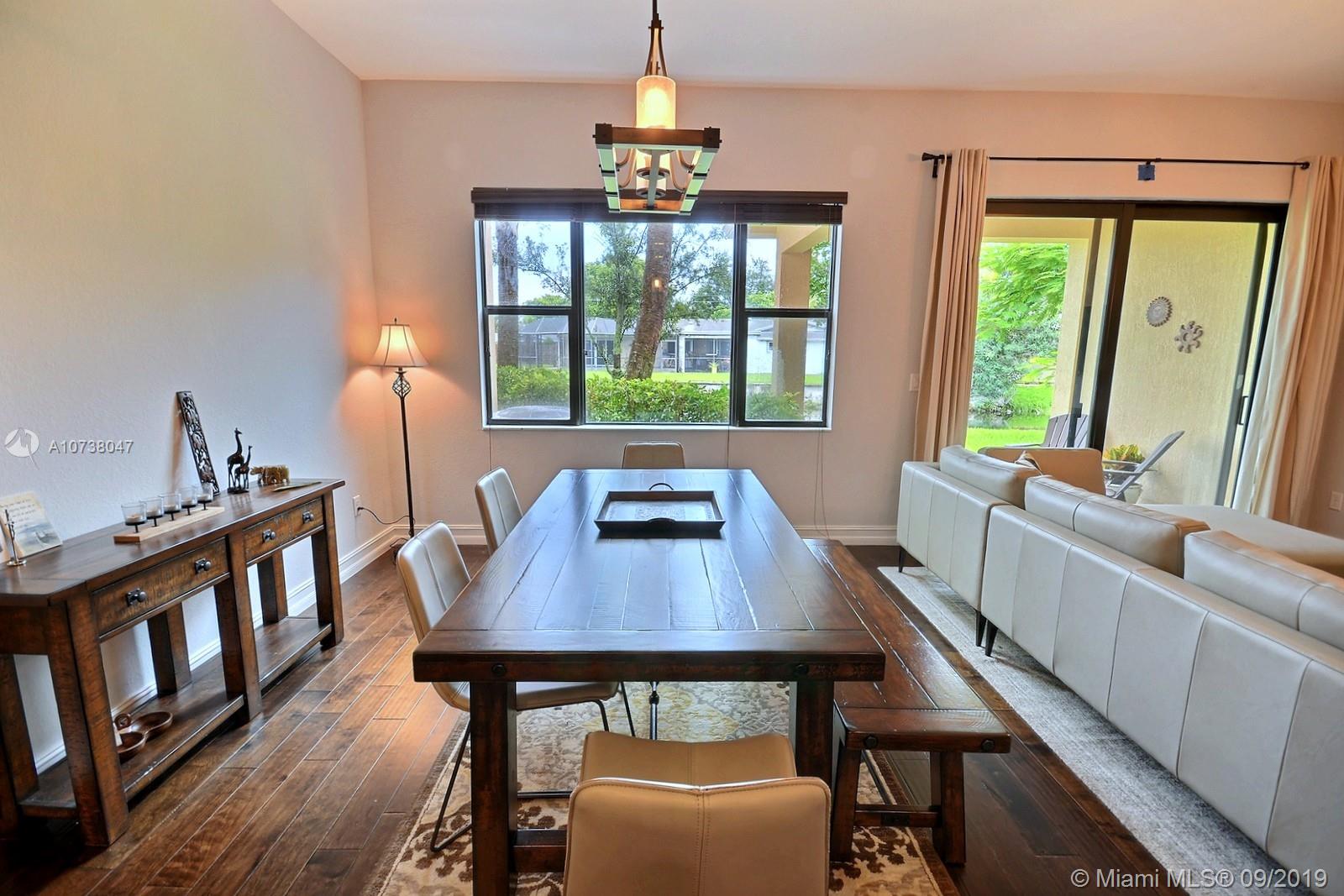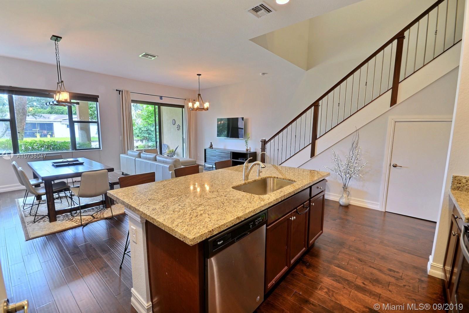 BEAUTIFUL WATERFRONT TOWNHOME AT THE COVE AT LAGO MAR FEATURES AN OPEN FLOOR PLAN, KITCHEN WITH ISLAND, GRANITE TOPS & STAINLESS STEEL APPLIANCES. ELEGANT HAND STAINED STAIRCASE RAILING, ABSOLUTELY GORGEOUS HARDWOOD FLOORS THROUGHOUT. 20' CEILINGS, HURRICANE IMPACT WINDOWS, RECESS LIGHTING, 2ND FLOOR LAUNDRY ROOM. SOFT WATER FILTRATION SYSTEM FOR THE ENTIRE HOME AS WELL AS SEPARATE REVERSE OSMOSIS FILTRATION SYSTEM FOR DRINKING WATER. SMALL SOUGHT AFTER GATED COMMUNITY WITH POOL NEAR TO AMERICAN HERITAGE, SAWGRASS MILLS AND CLOSE TO 595.