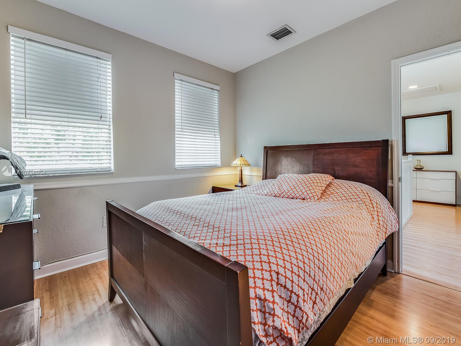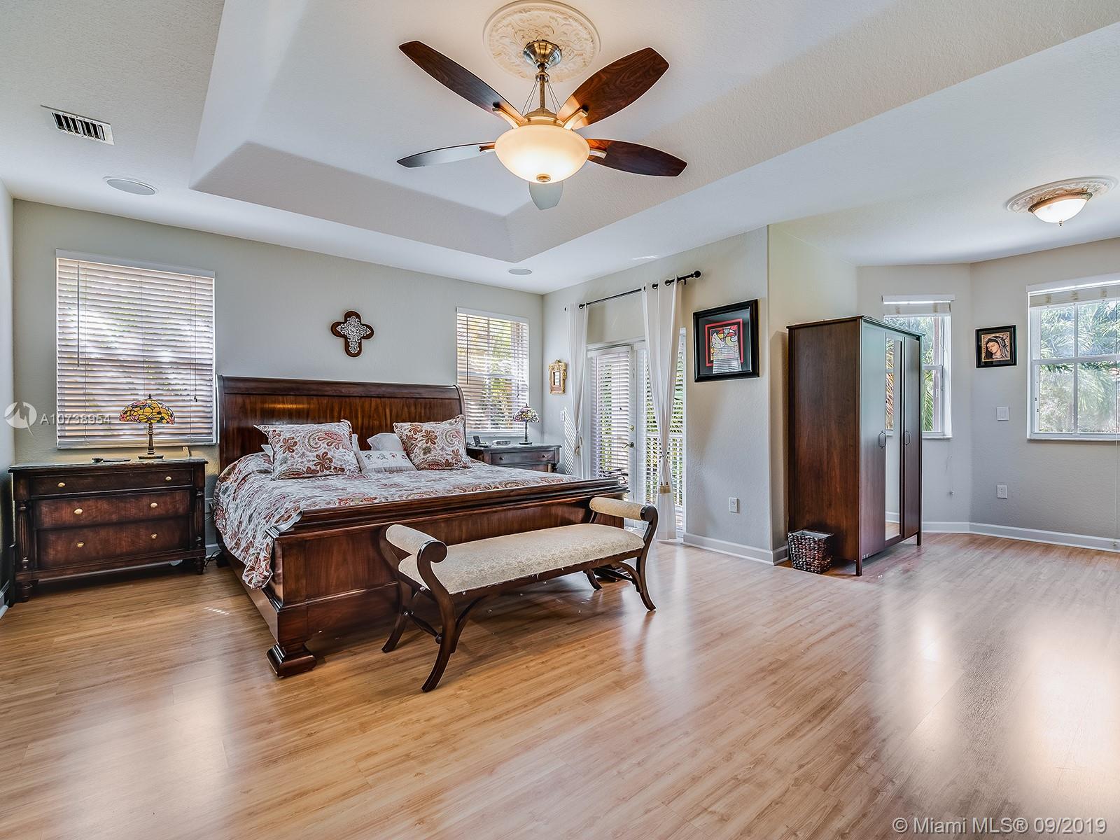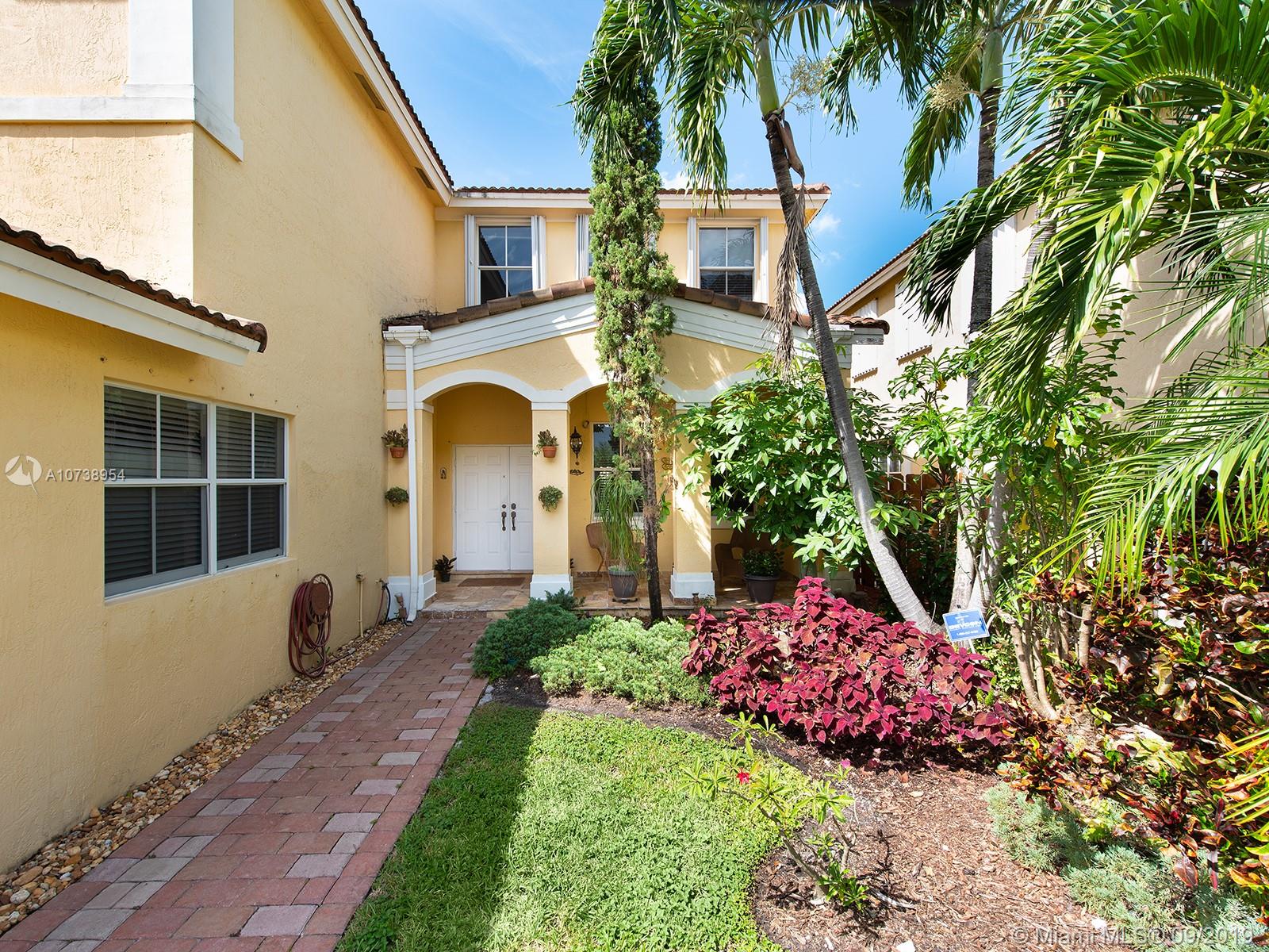Excellent location in the heart of Doral. Beautiful & spacious, move-in ready home in very well maintained Goldvue Estates. House is 4 Bed/3.5 Baths w/ 2,996 SF. Master Bedroom & Bedroom #2 each w/ ensuite bathrooms. Bedroom #3 & #4 share a Jack & Jill bathroom. Half Bath located on the 1st floor. Ample Family Room & Den w/ built-ins, great for a home office. Beautiful remodeled kitchen, w/ granite counter top & SS appliances, breakfast nook w/ bay window overlooking the backyard. Lot is 5,824 SF. Spacious paved backyard w/ room for a pool, BBQ, and a covered sitting area w/additional canopies. Accordion shutters on 2nd floor & panels on 1st floor. Chandelier & wall sconces in Dining Room, & chandelier in 4th bedroom are not included in the sale. HOA includes: cable, internet & alarm.