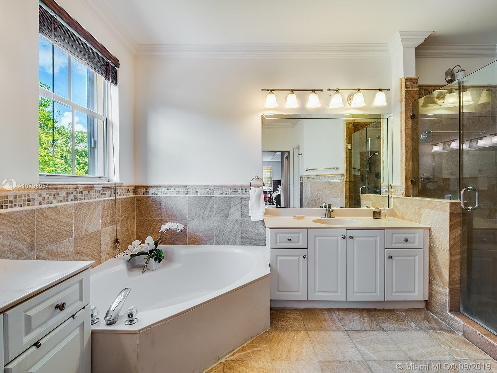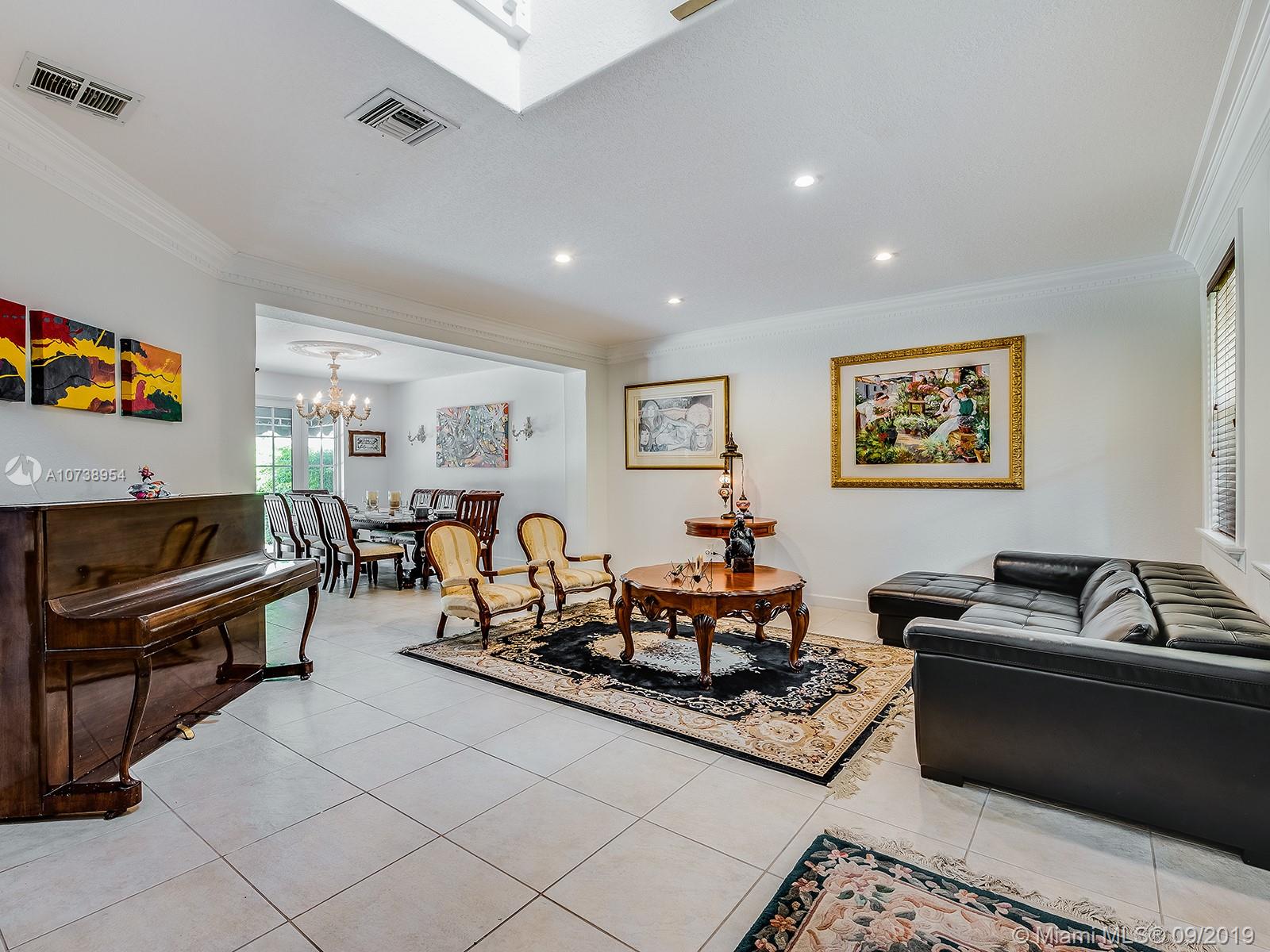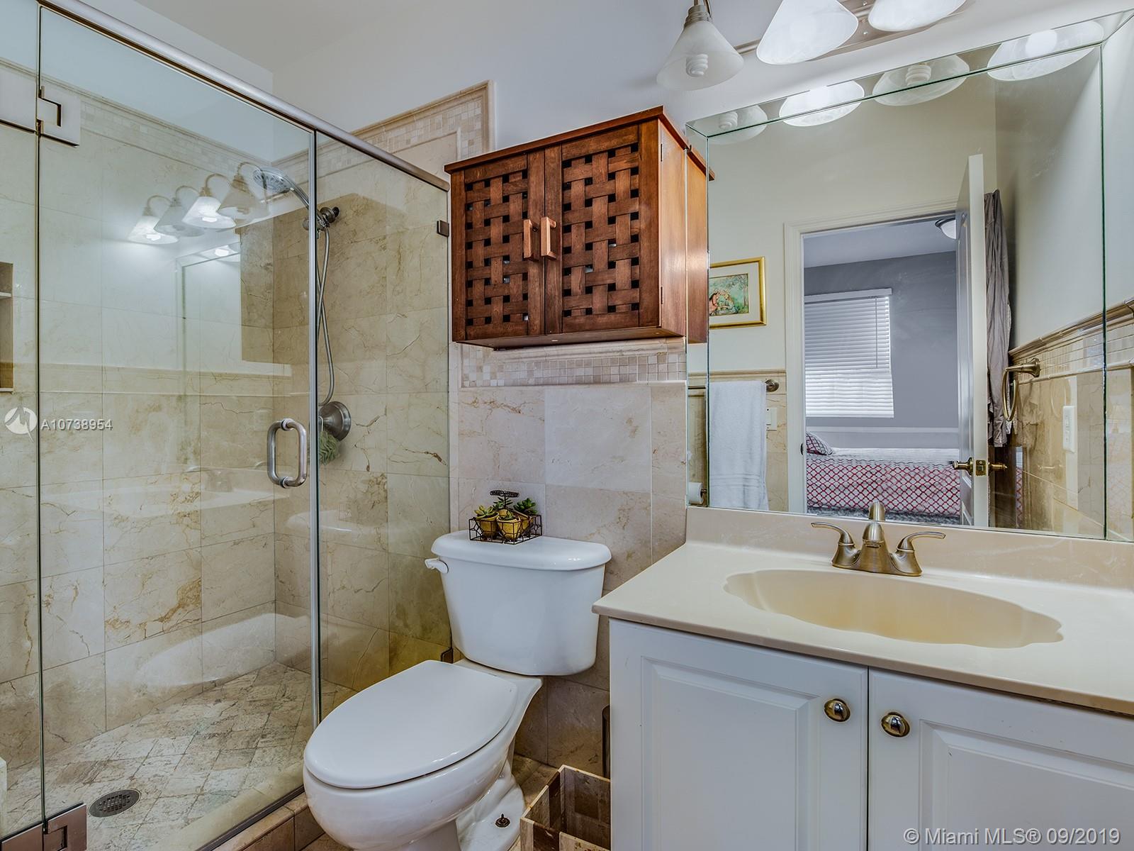 Excellent location in the heart of Doral. Beautiful & spacious, move-in ready home in very well maintained Goldvue Estates. House is 4 Bed/3.5 Baths w/ 2,996 SF. Master Bedroom & Bedroom #2 each w/ ensuite bathrooms. Bedroom #3 & #4 share a Jack & Jill bathroom. Half Bath located on the 1st floor. Ample Family Room & Den w/ built-ins, great for a home office. Beautiful remodeled kitchen, w/ granite counter top & SS appliances, breakfast nook w/ bay window overlooking the backyard. Lot is 5,824 SF. Spacious paved backyard w/ room for a pool, BBQ, and a covered sitting area w/additional canopies. Accordion shutters on 2nd floor & panels on 1st floor. Chandelier & wall sconces in Dining Room, & chandelier in 4th bedroom are not included in the sale. HOA includes: cable, internet & alarm.
