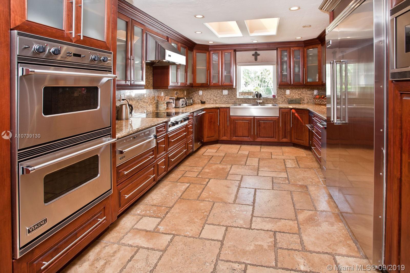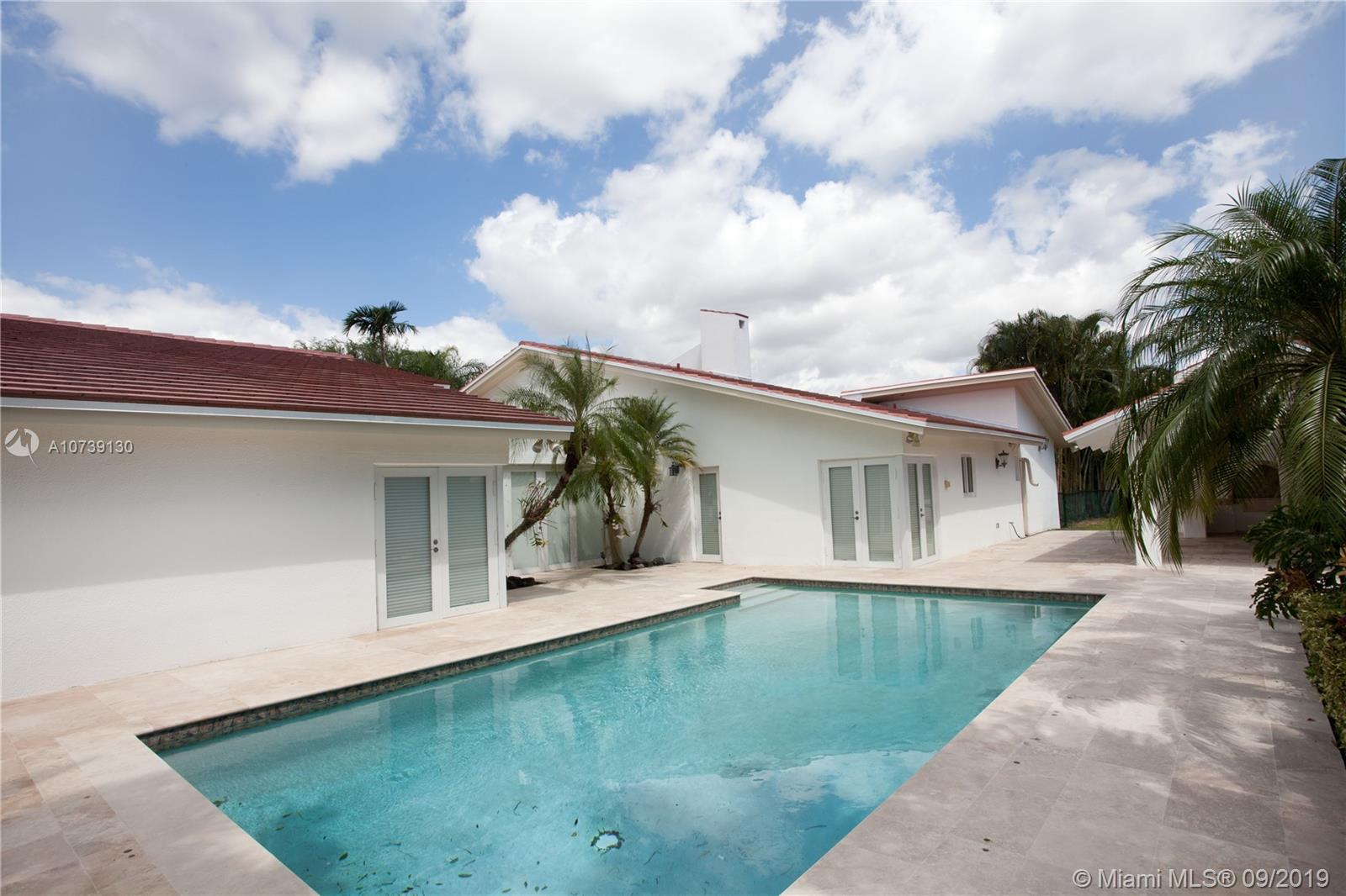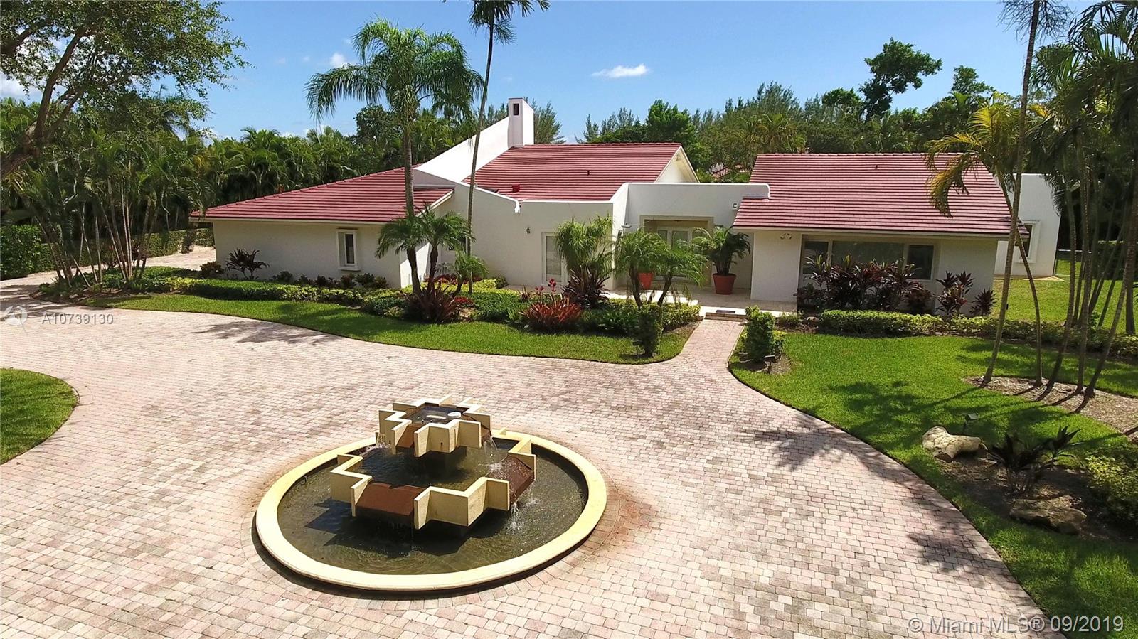 Updated one story home with great split floor plan in sought-after neighborhood. Brand new roof and gutters, impact doors and windows throughout. Gated for privacy, this home sits on a 39,493 sq ft lot with huge driveway and beautiful green areas surrounding the house. The foyer, overlooking the pool and patio, opens to the formal living room, dining room and family room. The gourmet eat-in kitchen has Viking appliances and granite counter tops. Adjacent to the kitchen are the maid's quarters and laundry room. The spacious master suite has a beautiful view of the pool and patio and features a great bathroom and walk-in closet. There are other 3 bedrooms, 2 full bathrooms and a powder room. The pool and patio area feature a gazebo and huge green areas. Also for rent at $12,900.