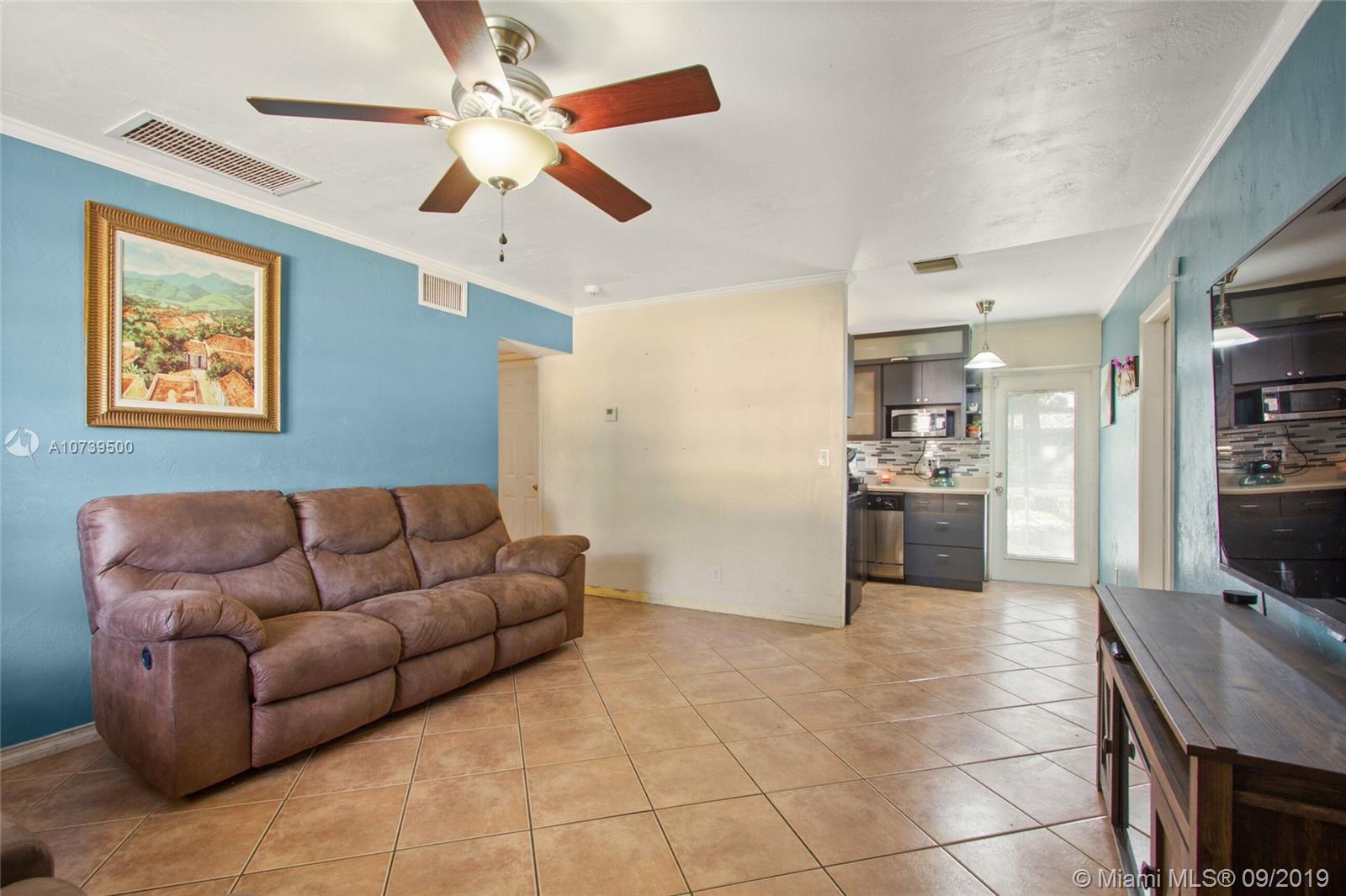 Move in ready. Interior square footage may be larger than county records. Kitchen & baths updated, newer stainless steel appliances glass tile back splash, same nice tile throughout the home. HUGE 29X10 garage could be converted to 3rd bedroom and also add a second bath. Double wide driveway can accommodate 4 vehicles. Bring your RV, Boat, Personal watercraft. Big shady back yard has a nice shed and room for a pool, swing set, etc. East facing Front porch is shaded in the afternoon. Quiet established neighborhood. Elementary, middle and high schools all less than 1 mile away. Close to Hard Rock, shopping, parks, grocery stores, Fort Lauderdale airport. No rental or pet restrictions, no HOA fees. Buyer will have a brand new roof at closing!