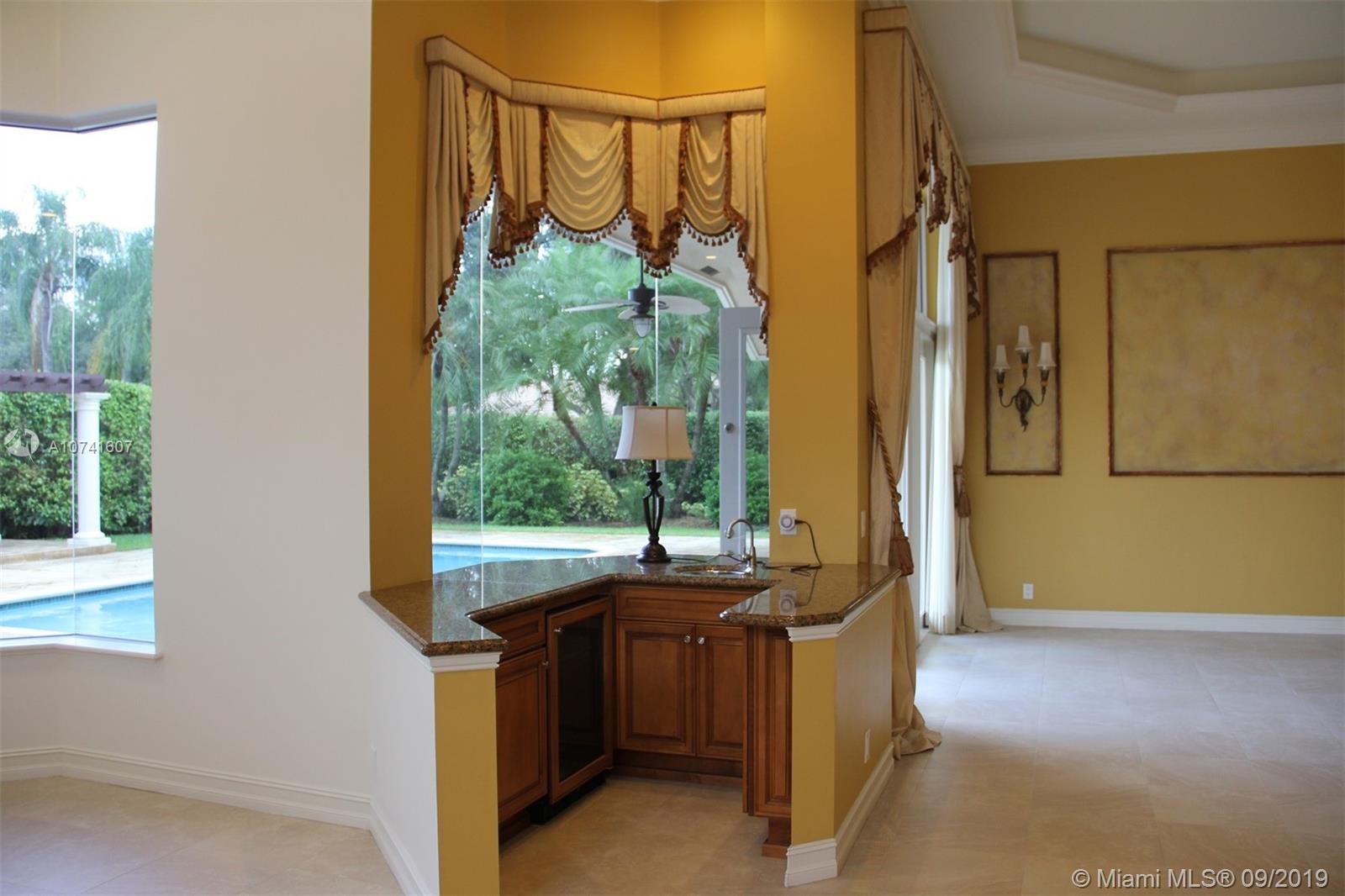 Beautiful Home a Must See!! 4 bedrooms, 4 bathrooms & Den/office. This home have all the imaginable upgrades including crown molding, tray ceiling in master, real wood floor in bedrooms, high quality built in entertainment unit & office furniture, wet bar w/ wine refrigerator, gorgeous floors, full guest/pool bathroom, all recessed lighting, Large Master, beautiful gourmet kitchen w/ high end cabinetry, SS appliances & much more. 5th bedroom can be used as a den/office. 3 a/c units, home is protected with accordion shutters. Open concept floor plan with soaring ceilings and some windows with custom designed windows treatments provide abundant natural lighting throughout. A tropical landscaped large patio w/ pool & outdoor built in Grill & Pergola perfect for entertaining family & friends.