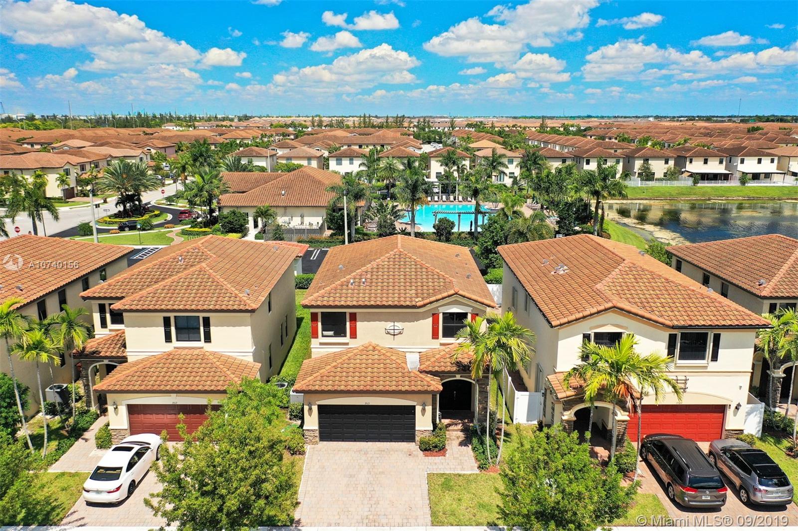 Stunning Lake View home in Bellagio! This newer construction home has it all plus many owner upgrades! Step into the perfect entertaining space with high ceilings, chefs kitchen, and living room with custom home entertainment center just for you! Convenient 1/1 on first floor- perfect for guests and in-laws. Serene lake views from the master, and the closet of your dreams! This community features 24-hour security, resort style pool, clubhouse, and fitness center all for a low HOA fee! Don't miss out on this gem!