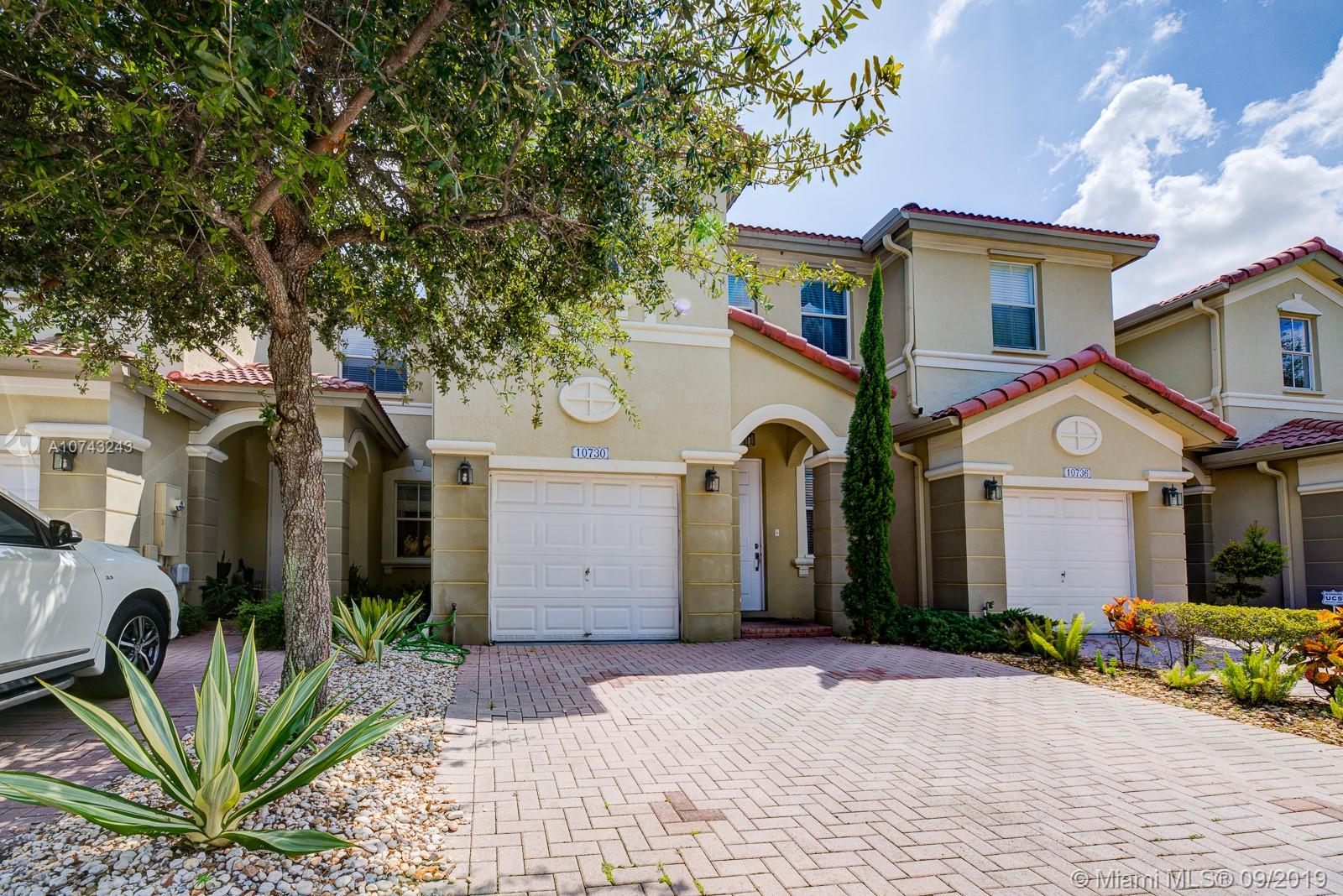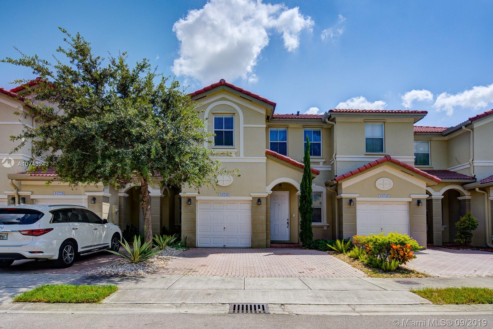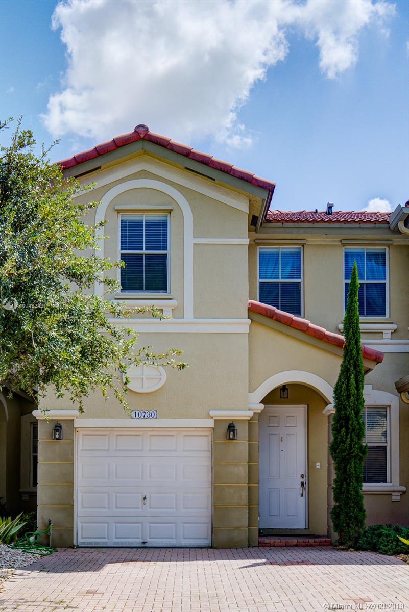 This modern 2006 two story Mediterranean style town home with garage in the heart of Doral has everything you're looking for. Sparkling white porcelain floors throughout the living area give the home its wide open airy feel and the exquisite cafe colored wood floors in the bedrooms make a beautifully stunning contrast. Modern accents and fixtures decorate the entire interior of the home giving it a unique look along with its classic Spanish/Mediterranean exterior. Great for entertaining you'll enjoy its formal living room with adjacent Florida room making it great for receiving guests. Its nearly 1900sf of living space encompasses 4 bedrooms and 2.5 baths all updated with pristine light fixtures, sinks and cabinetry. A large open kitchen overlooking the dining area.