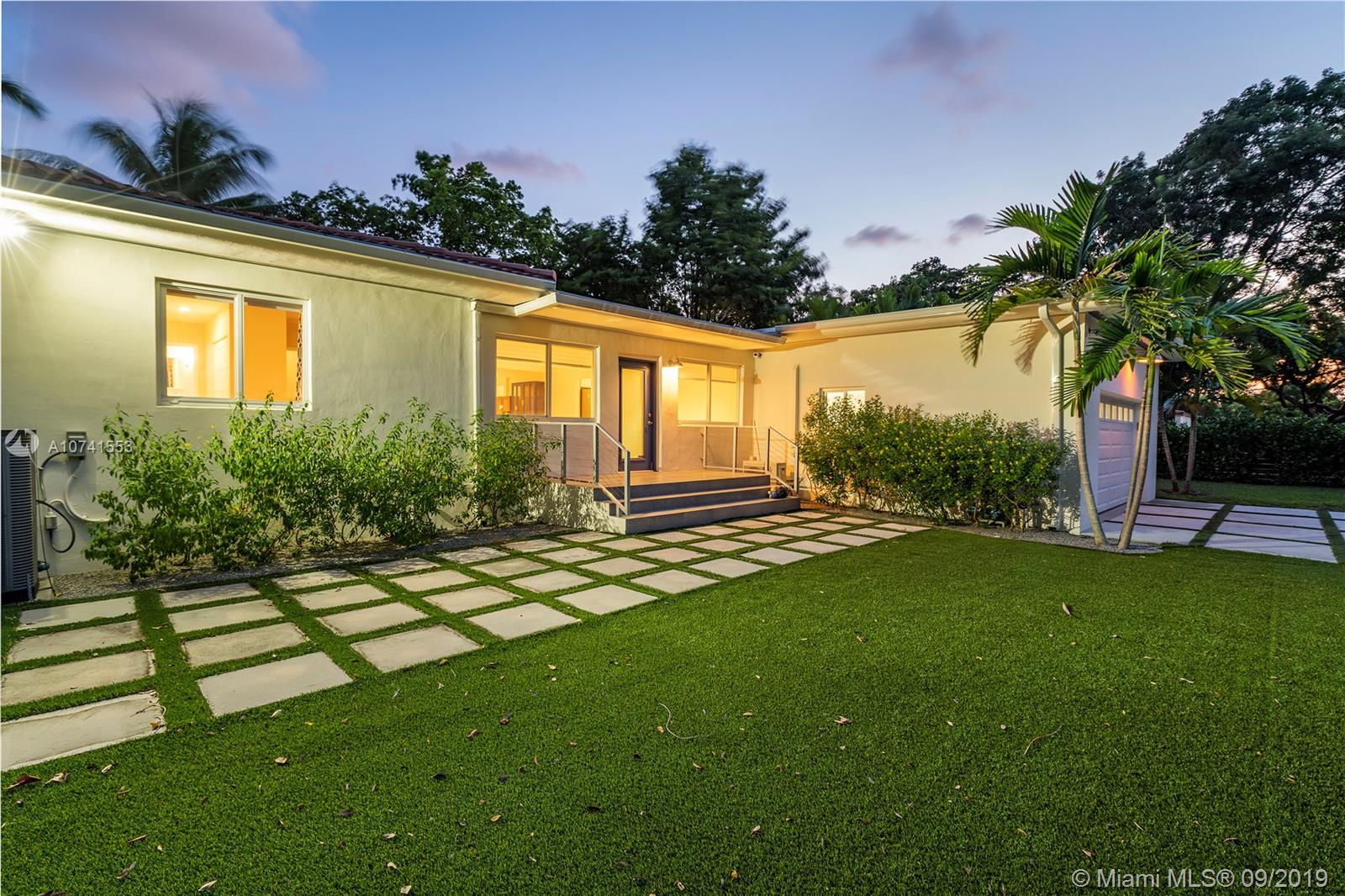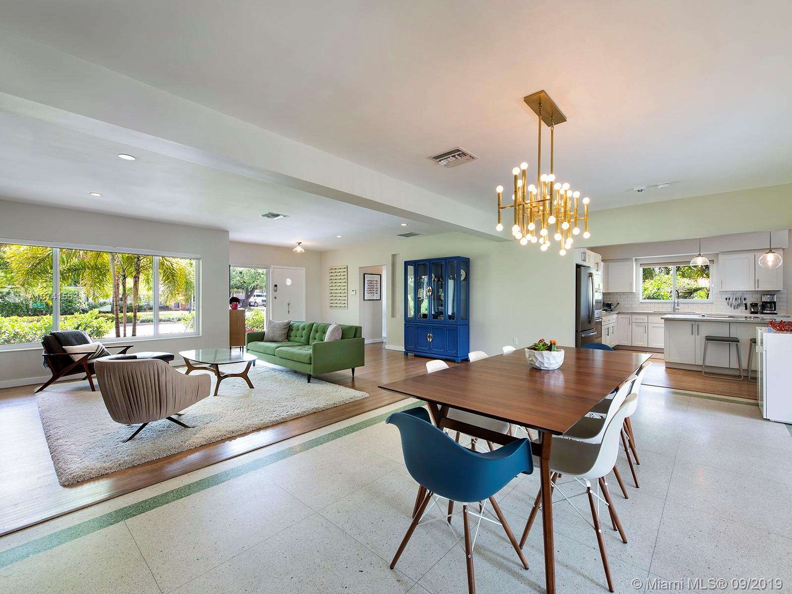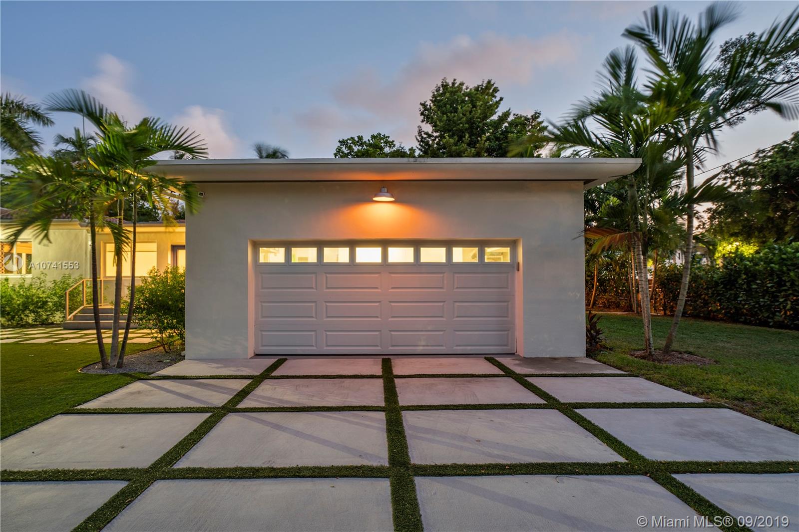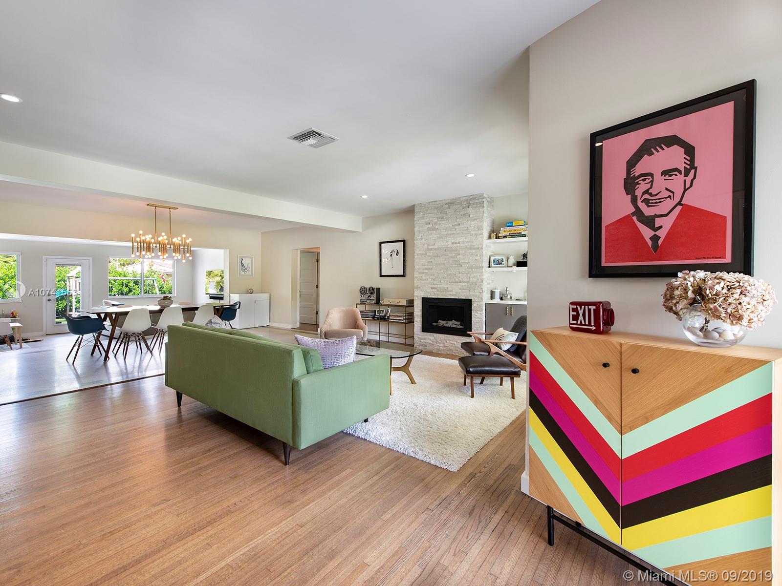 Actual SF is 2435/Appraisal. Don't let the street prevent you from seen this amazing home! Completely renovated Mid-Century modern stunner on an over-sized corner lot in Miami Shores. Close to all the Shores has to offer - community center, sports fields, tot lot, houses of worship & downtown area. Gorgeous original terrazzo floors in dining & family rooms w/wood floors throughout bedrooms, kitchen & living room. Large kitchen w/breakfast nook & island for entertaining. Spacious master-bed w/walk in closest. 2-car garage w/bathroom, loft storage & laundry w/more cabinet storage. Upgrades include custom smokeless HearthCabinet fireplace with bar, new driveway and motorized gate, low maintenance lush landscaping and new plumbing, impact windows/doors, septic tank and drain field.