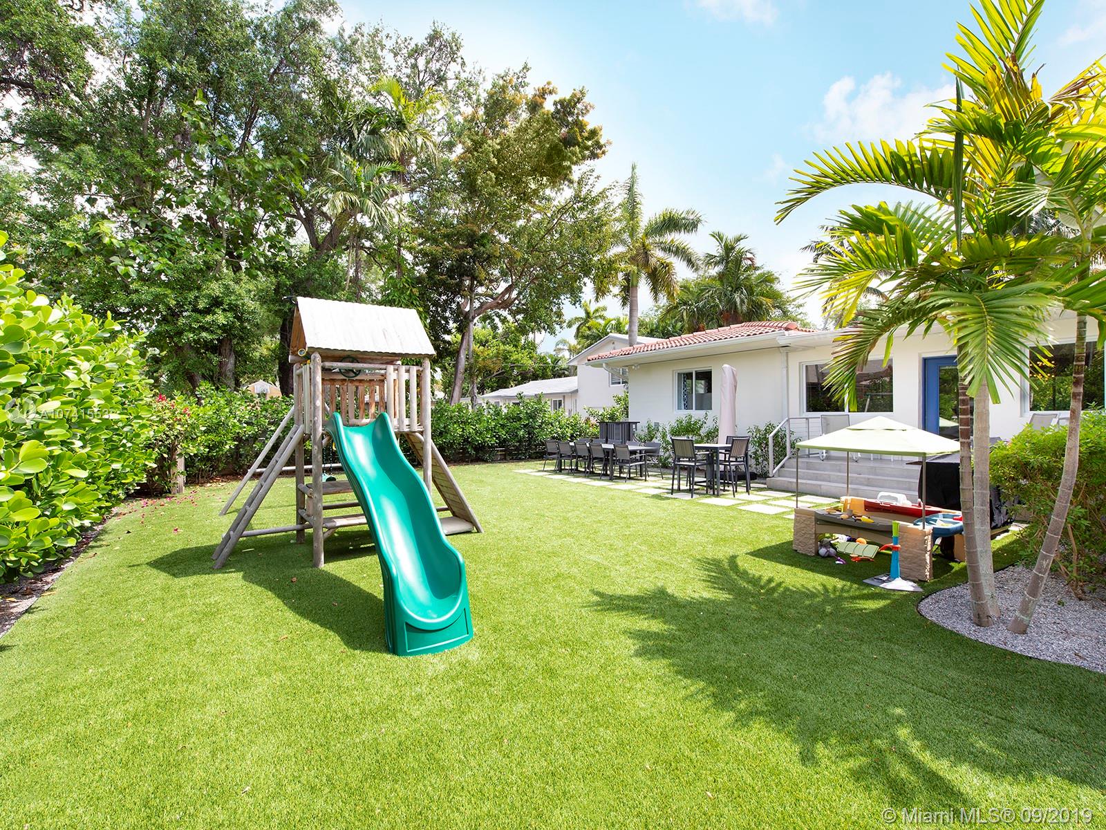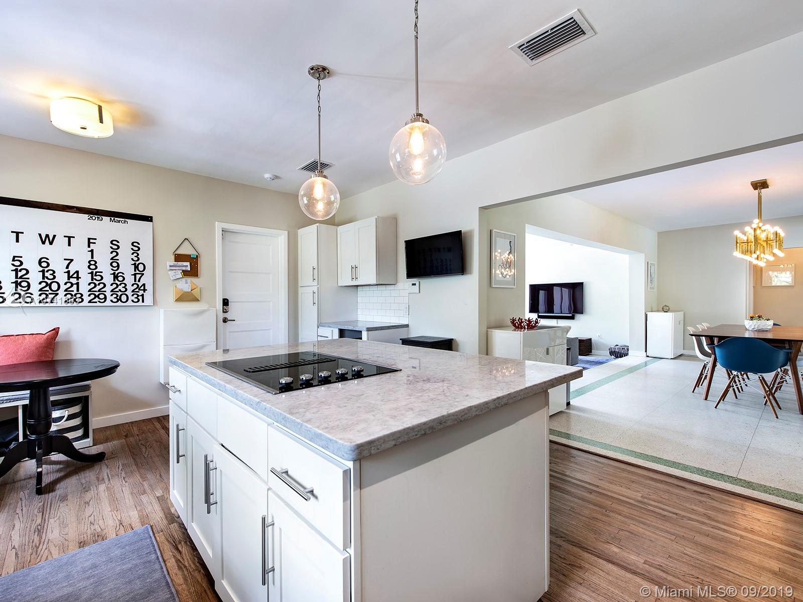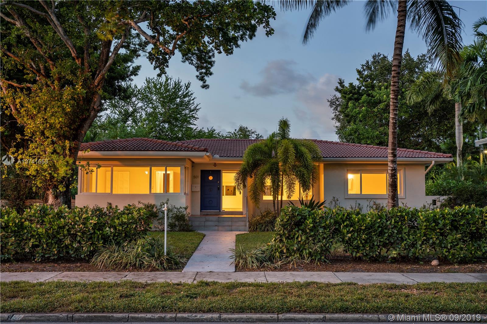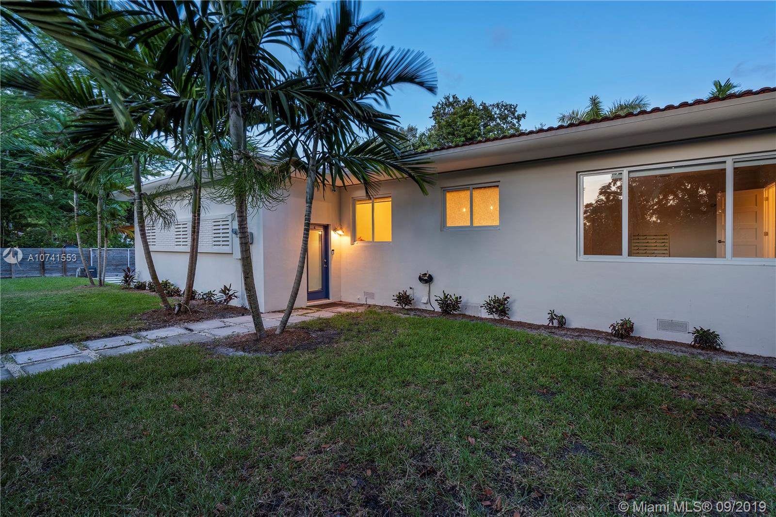 Actual SF is 2435/Appraisal. Don't let the street prevent you from seen this amazing home! Completely renovated Mid-Century modern stunner on an over-sized corner lot in Miami Shores. Close to all the Shores has to offer - community center, sports fields, tot lot, houses of worship & downtown area. Gorgeous original terrazzo floors in dining & family rooms w/wood floors throughout bedrooms, kitchen & living room. Large kitchen w/breakfast nook & island for entertaining. Spacious master-bed w/walk in closest. 2-car garage w/bathroom, loft storage & laundry w/more cabinet storage. Upgrades include custom smokeless HearthCabinet fireplace with bar, new driveway and motorized gate, low maintenance lush landscaping and new plumbing, impact windows/doors, septic tank and drain field.