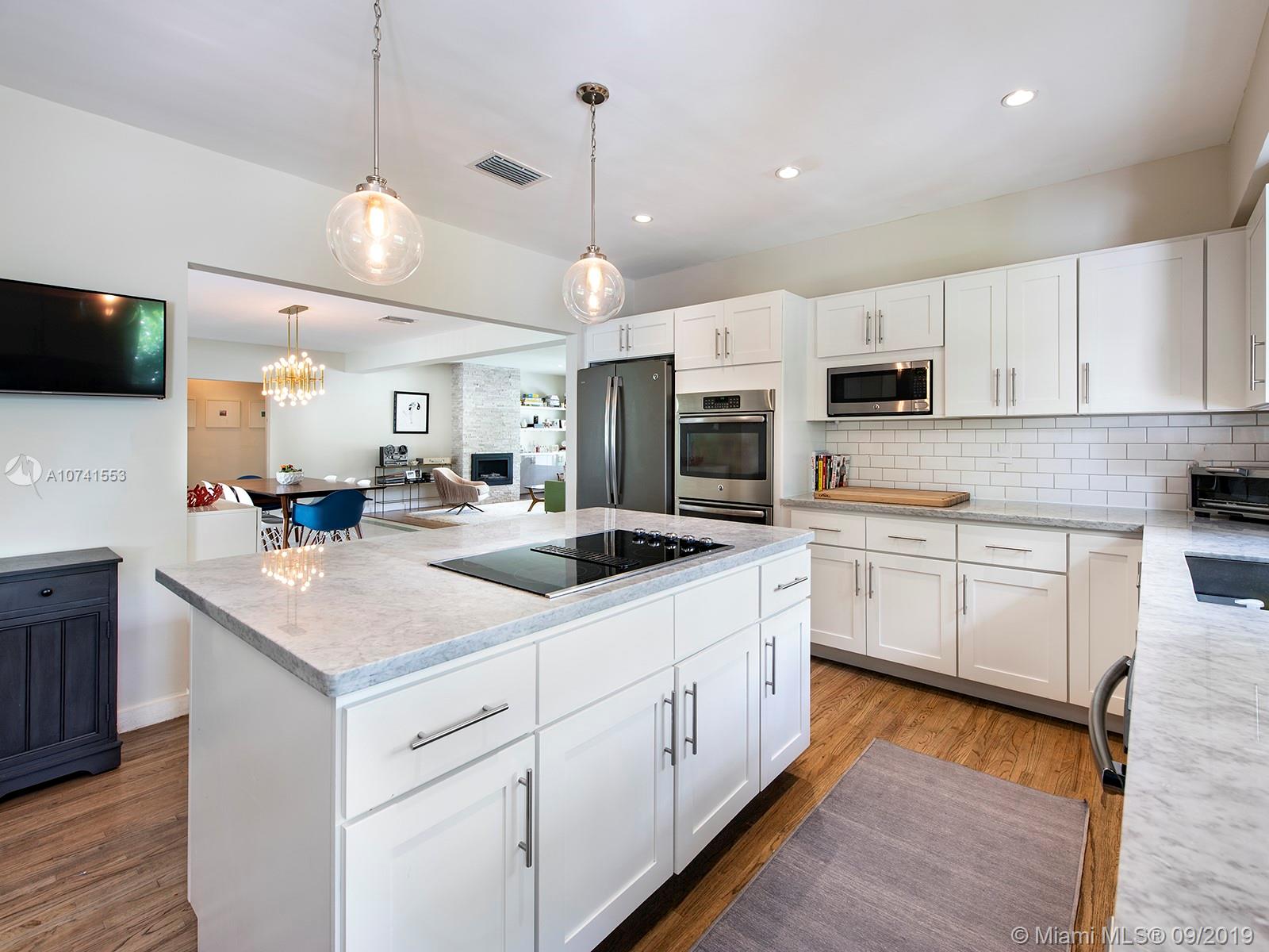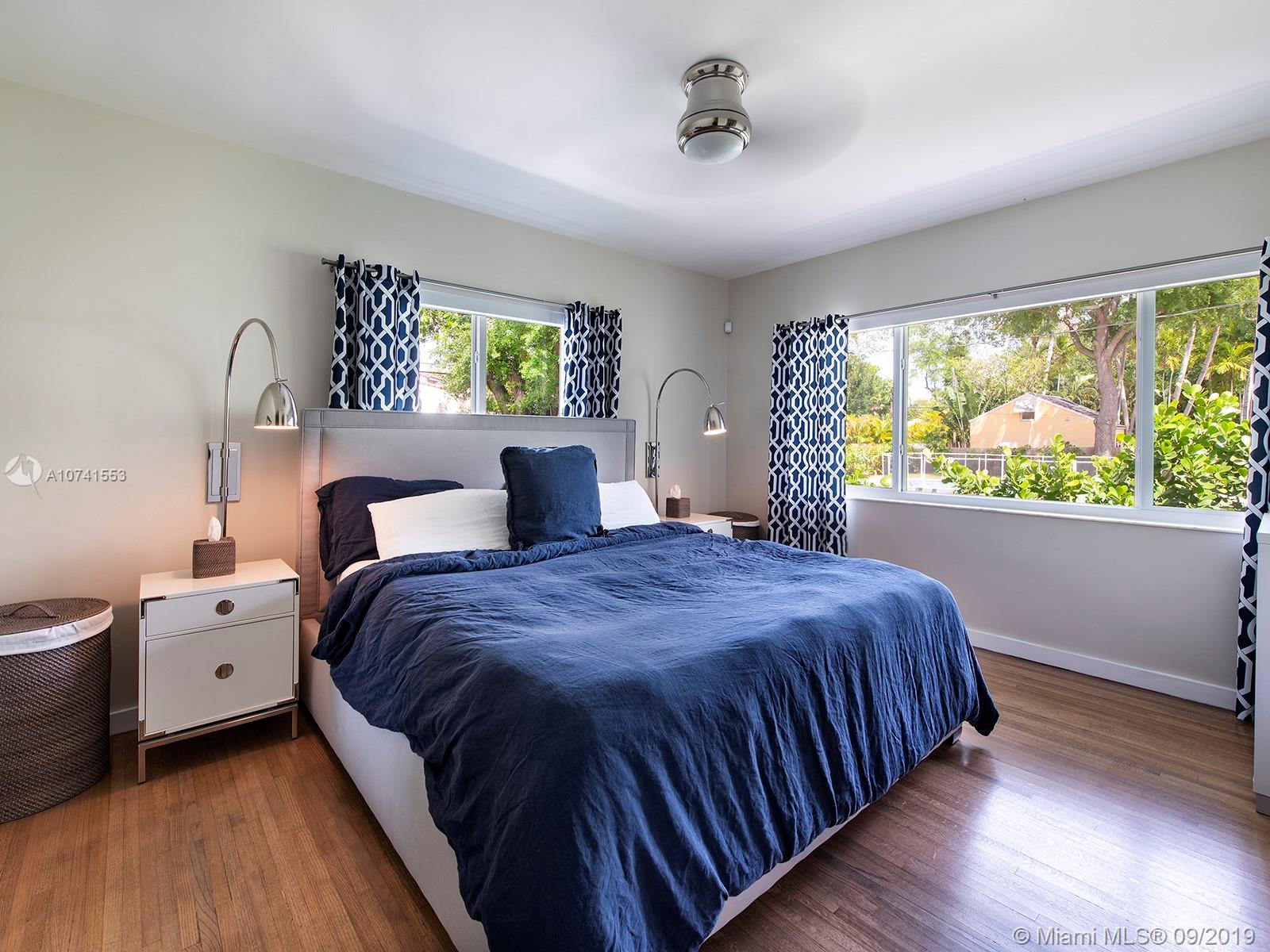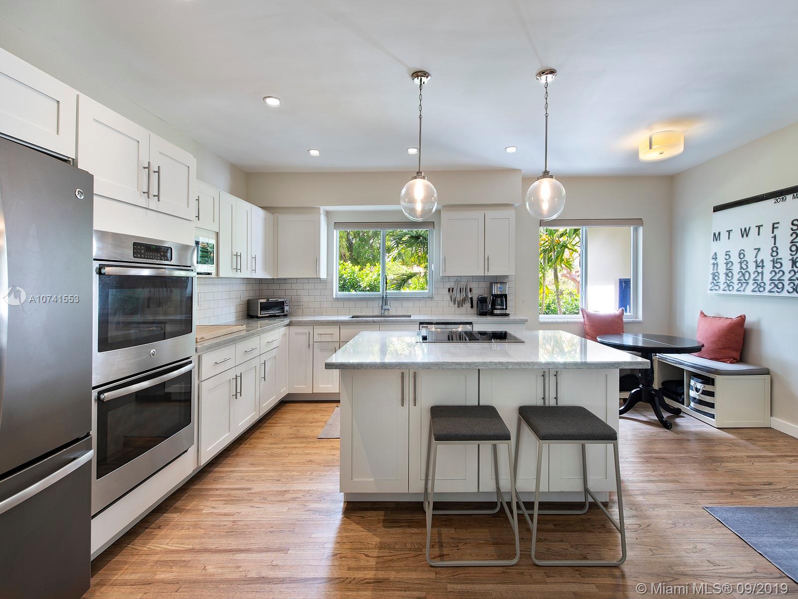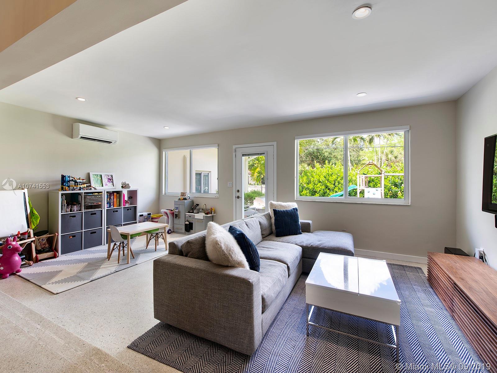 Actual SF is 2435/Appraisal. Don't let the street prevent you from seen this amazing home! Completely renovated Mid-Century modern stunner on an over-sized corner lot in Miami Shores. Close to all the Shores has to offer - community center, sports fields, tot lot, houses of worship & downtown area. Gorgeous original terrazzo floors in dining & family rooms w/wood floors throughout bedrooms, kitchen & living room. Large kitchen w/breakfast nook & island for entertaining. Spacious master-bed w/walk in closest. 2-car garage w/bathroom, loft storage & laundry w/more cabinet storage. Upgrades include custom smokeless HearthCabinet fireplace with bar, new driveway and motorized gate, low maintenance lush landscaping and new plumbing, impact windows/doors, septic tank and drain field.
