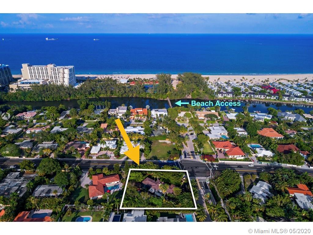Own a piece of paradise at a fantastic price with this wonderful mid-century home perfectly situated between the white sand beaches of Fort Lauderdale & a highly regarded marina in the Harbor Beach community. Occupying a 21,000sf double lot and nestled among mature landscaping sits this 4 Bed/3 Bath estate waiting for you to move in or customize. Behind the private gate lies a path through a lush tropical garden to the front door. Come inside you will find the open living room and dining room with sightlines through to the back yard which features a large custom pool and dozens of tropical plants and exotic fruit trees. There is even a triple split bedroom plan for privacy when guests come to town. Amenities of the community include a private beach club, marina & on-site security.