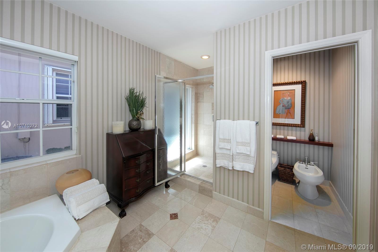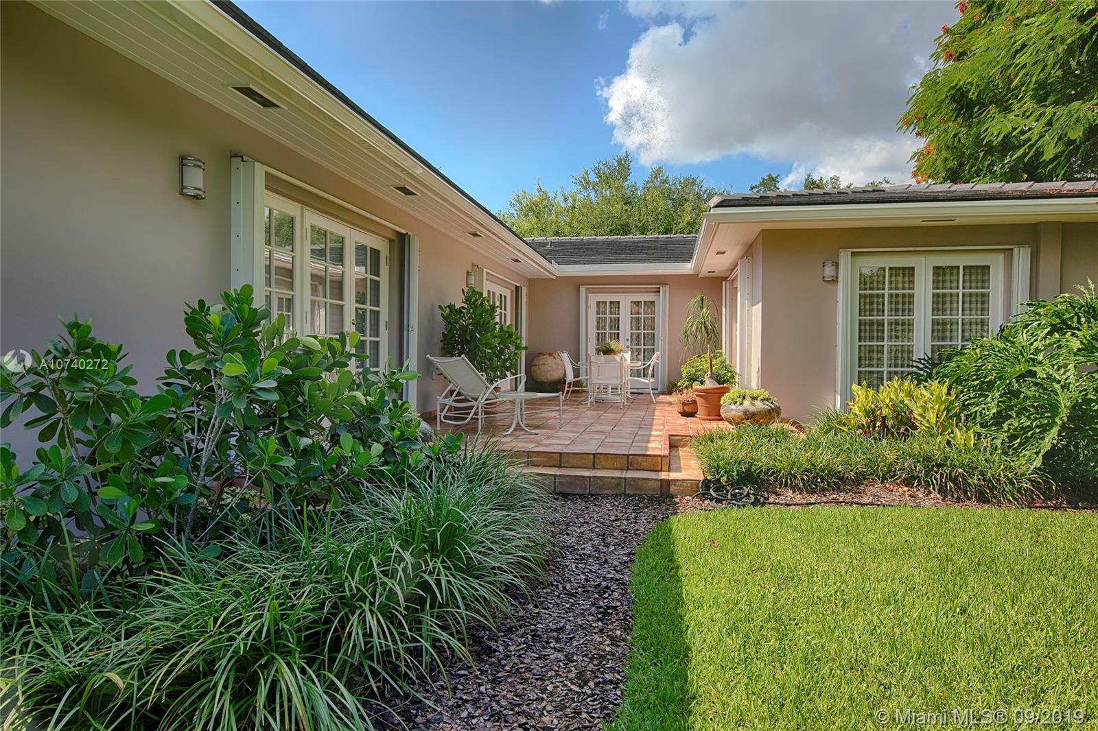 Home Sweet Home! Mid-century South Gables home has incredible charm w/natural light, crown molding, wood floors and French terracotta. Sits on 8,750 SF lot in a quiet tree-lined street w/2,669 adj sf containing a split floor plan of 3 beds/3 baths. Kitchen w/gas range & SS appliances. Step out through French doors to patio. Spacious master wing addition w/marble flrs overlooks the patio. Master bath boasts walk-in his/her closets, dual vanities, shower and separate tub. Brick driveway leads to 2 car garage. Electrical has been updated w/LED lights in most rooms. 2 bathrooms were tastefully renovated w/ modern design in 2016. Custom built-ins & good storage space. Shutters. Central location close to UM & Sunset Place. New roof. New septic tank and drain.