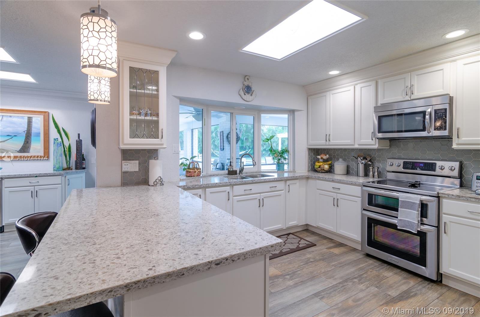 Enjoy sunsets on your own boat dock with WATER VIEWS in this fabulous fully renovated 6 Bedroom 3 Bath Ocean Access residence. Beautifully tiled throughout the home. It has a expansive pool, an indoor SWEDISH STYLE SAUNA and enclosed OUTDOOR SHOWER. Hurricane rated windows and doors. Large Living room and Family room. Formal Dining area has travertine tile. Large Master Bedroom with custom walk in closet and large remodeled on suite bathroom. Brand new white kitchen with quartz countertop and KitchenAid Stainless steel appliances $45K metal roof in 2007, 2 new A/C units & pool pump. Large 2 car Garage. Close to major freeways, shopping and schools. Spectacular corner lot. Parking speaking for its self room for a boat or RV. Easy to show. Act Fast as this one will not last long.