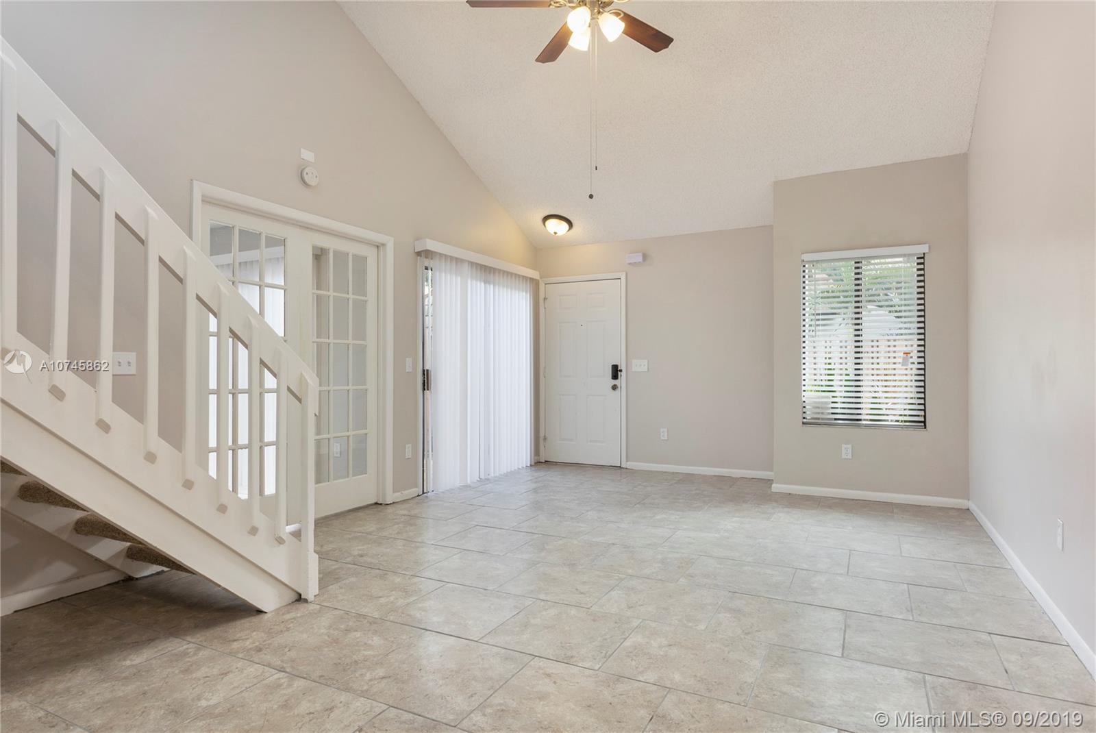 Spacious and open town home with vaulted ceilings in living area, fresh tile flooring, and natural light. Kitchen features many cabinets for storage and breakfast bar. Appliances package available at closing. Master bedroom has outdoor access and large walk in closet. Home provides additional 2 bedrooms plus two spacious baths. Private patio with fence is a perfect spot to relax.
