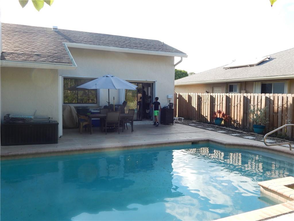 This remodeled house will be your clients quiet paradise. The roof, kitchen, flooring, fireplace, paint inside and out, and fence were all redone about a year ago. The large pool and back yard make this house great for entertaining. The house is protected from hurricanes by accordion shutters on all windows. Low homeowners association payment ($13 per month paid quarterly). The house sits on a cul de sac which limits traffic flow. The garage is converted into an office but there is still room for tools and other items. Easy to show, just text agent.