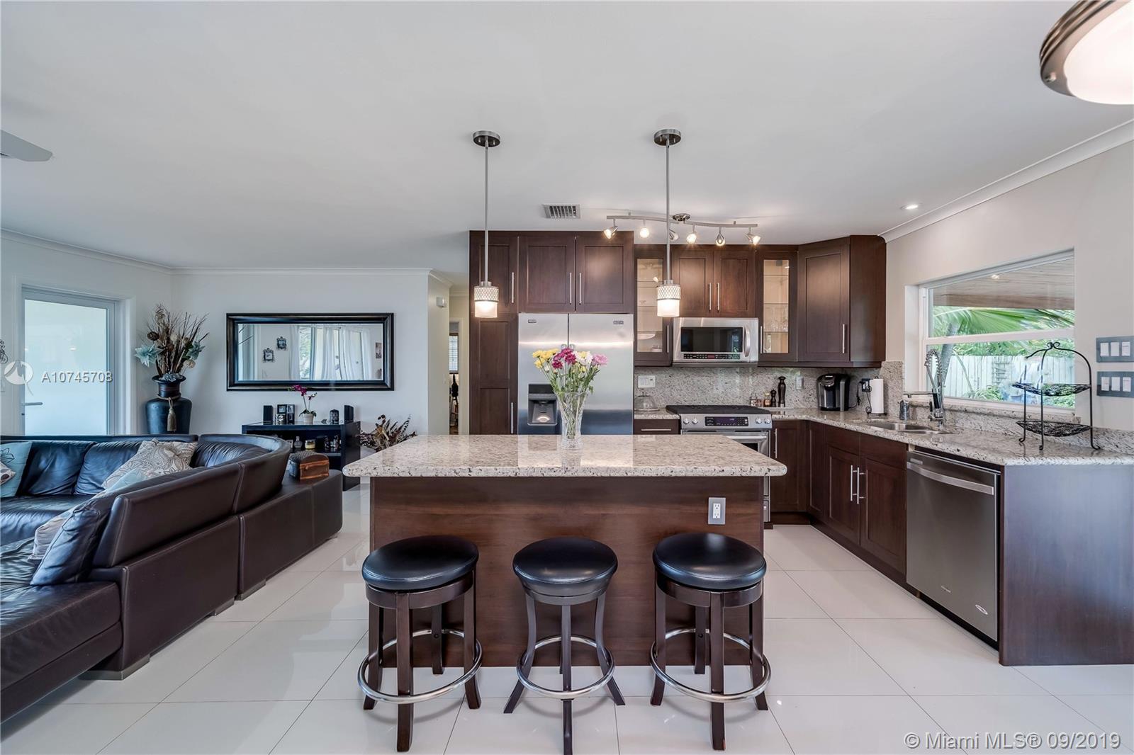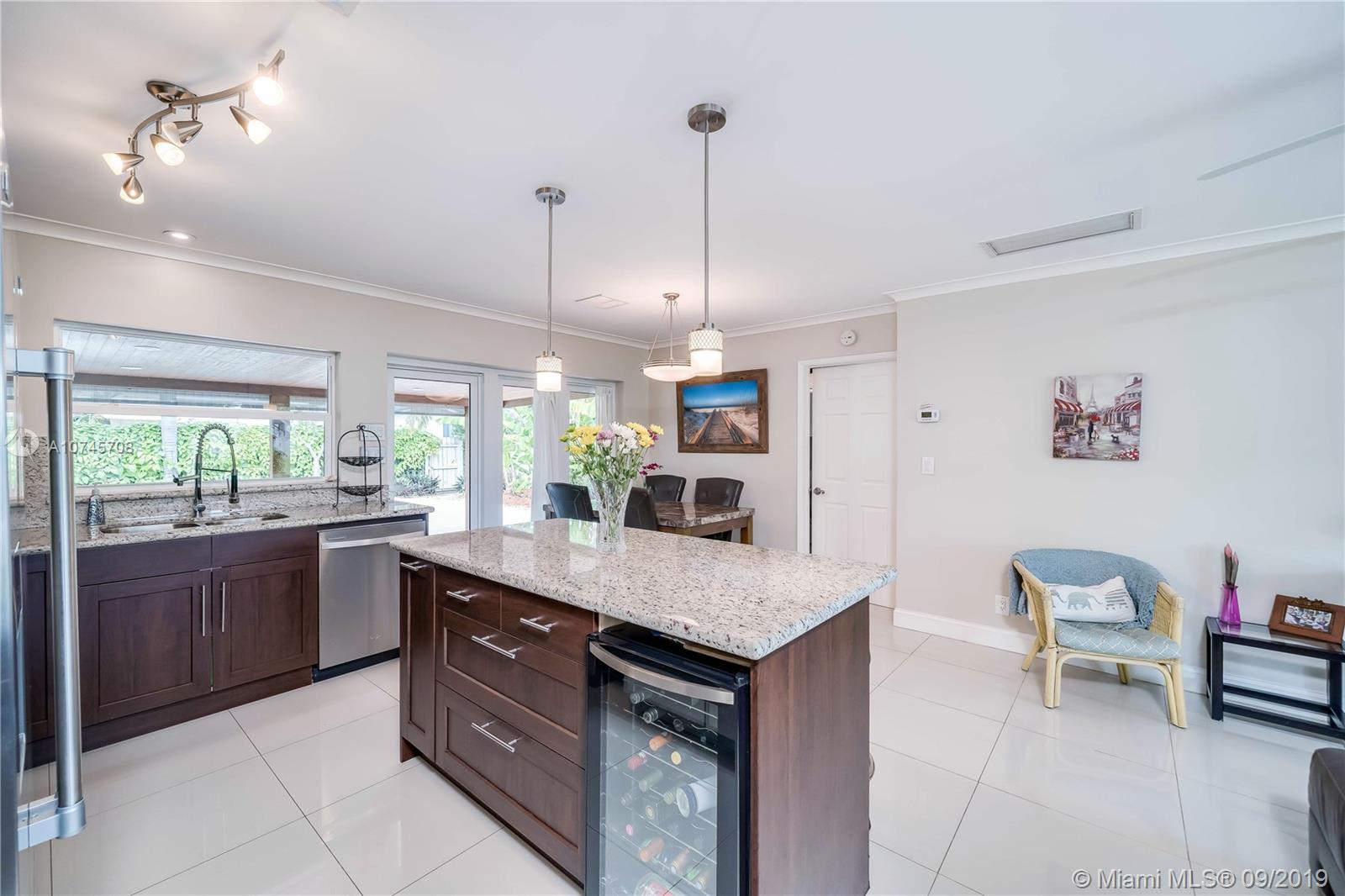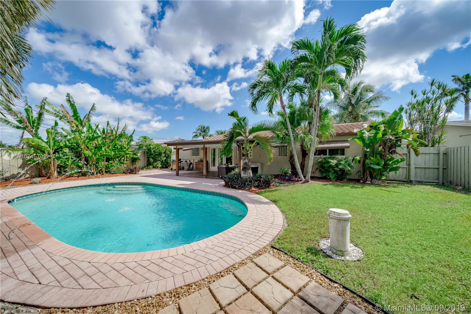 This house is absolutely incredible! All impact windows and doors throughout, Fabulous open kitchen with granite countertops and stainless steel appliances. Exquisite tile flooring in the kitchen and living room. Bathrooms have been remodeled to perfection. The pool area and backyard will take your breath away. Exquisite open back porch overlooking heated saltwater pool with fountains. Fenced in backyard with stunning luxurious landscaping that is indigenous to Florida. Natural Gas kitchen stove, water heater, dryer and outdoor patio grill hook up. This location is the best, easy access to I 95, close to Ft Lauderdale Airport and Hollywood Beach.