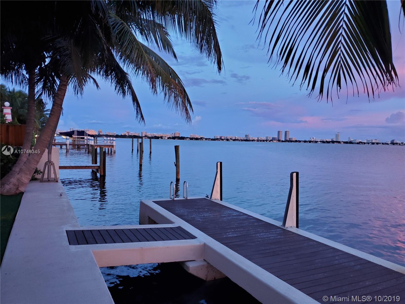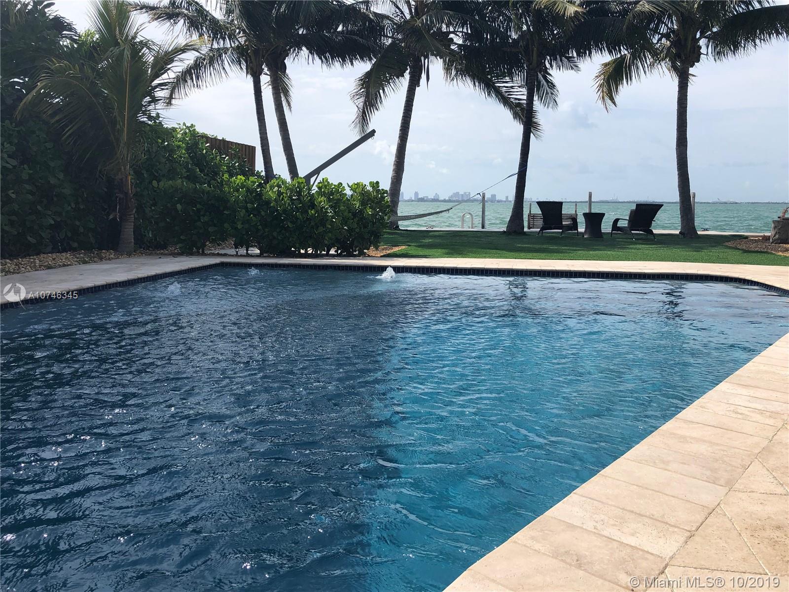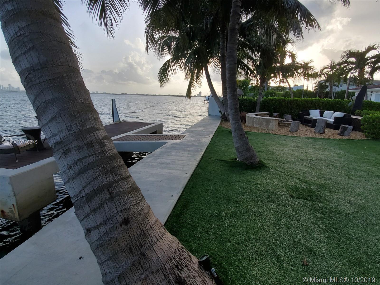 BEST PRICED UPDATED WATERFRONT HOME! Tropical paradise on the open bay with unobstructed views of the Miami skyline and South Beach. This beautiful property offers 60-ft of bayfront, oversized heated pool with beach, and a huge backyard with fire pit! Situated on a 9,000 sqft lot, this stunning 4-bed plus den / 3 bath home has been renovated in 2012 and is move-in ready. The open concept floor plan and wall-to-wall glass allow for the maximum exposure of magnificent water views. Some of the features include marble and wood floors, high-end kitchen appliances, spa shower with steam, giant master suite with sitting area/den, hurricane impact windows and doors, new seawall and boat dock, and one car garage. Amazing location just minutes from South Beach, Bal Harbor, and downtown.