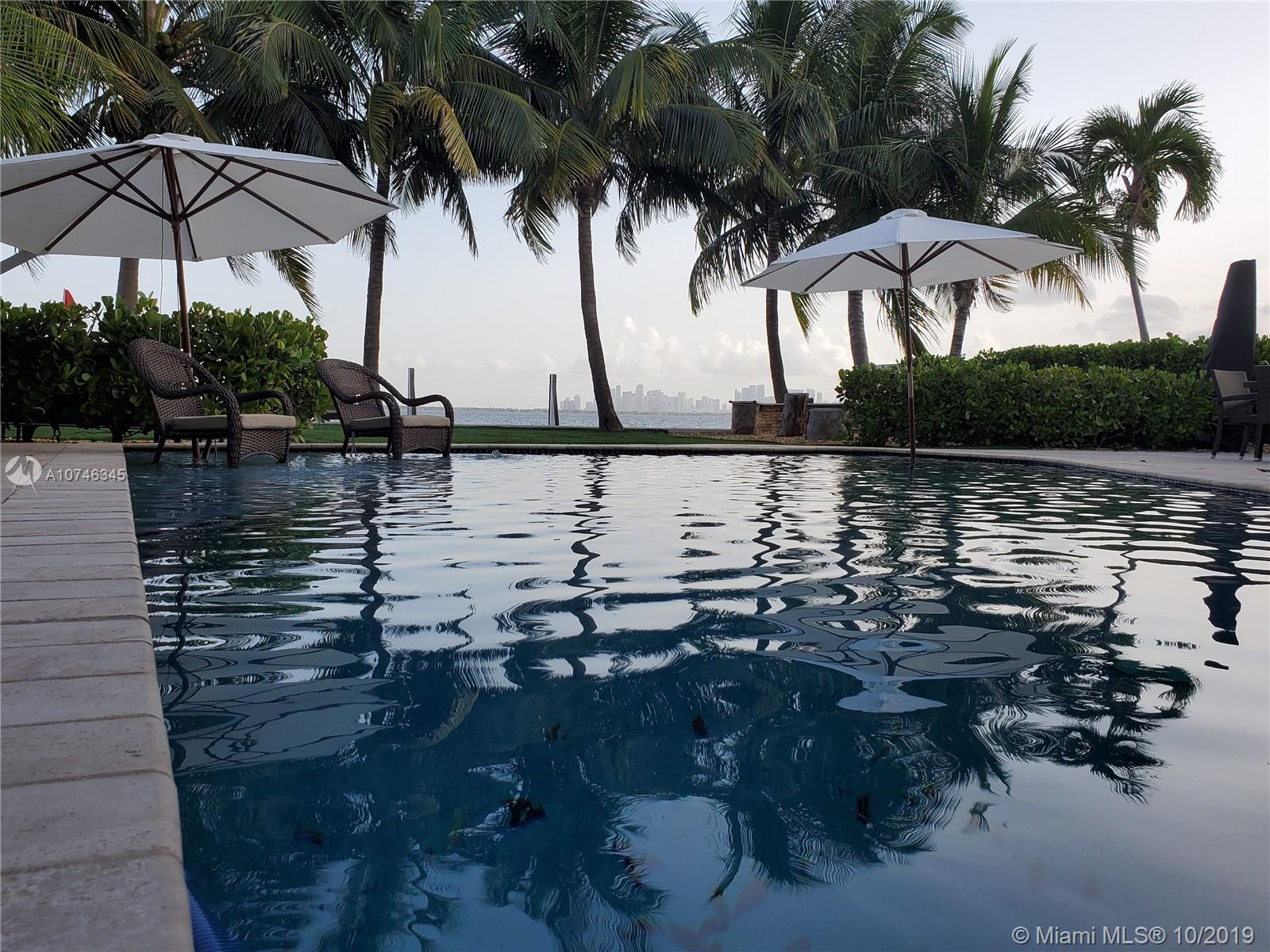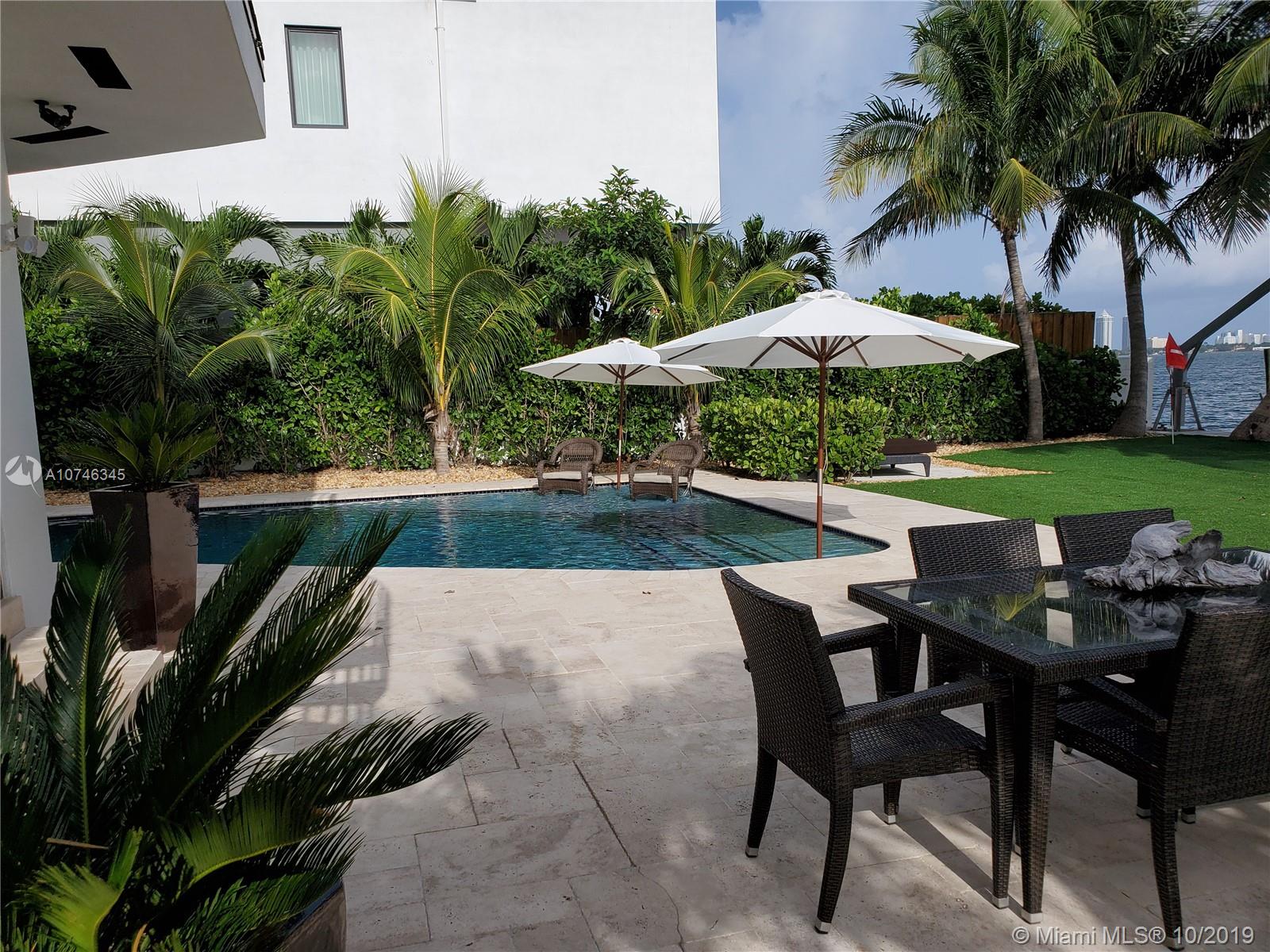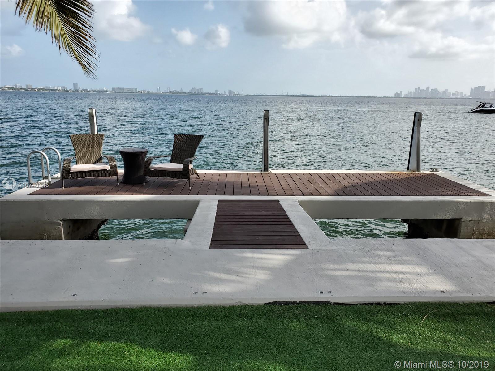 BEST PRICED UPDATED WATERFRONT HOME! Tropical paradise on the open bay with unobstructed views of the Miami skyline and South Beach. This beautiful property offers 60-ft of bayfront, oversized heated pool with beach, and a huge backyard with fire pit! Situated on a 9,000 sqft lot, this stunning 4-bed plus den / 3 bath home has been renovated in 2012 and is move-in ready. The open concept floor plan and wall-to-wall glass allow for the maximum exposure of magnificent water views. Some of the features include marble and wood floors, high-end kitchen appliances, spa shower with steam, giant master suite with sitting area/den, hurricane impact windows and doors, new seawall and boat dock, and one car garage. Amazing location just minutes from South Beach, Bal Harbor, and downtown.