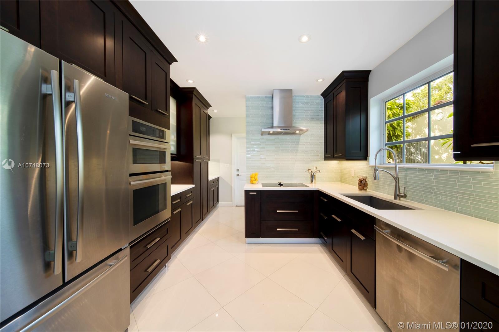Welcome to East Shores Mid-Century Oasis, a most unique modern ranch home just steps from the bay in one of Miami Shores’ most desirable locations. This may be one of the largest two bedroom homes around, with great flow and wide open living-dining, bespoke office space and a Jenn-Air stainless steel gourmet kitchen perfect for entertaining- all overlooking manicured gardens and custom salt-water pool with entertainment patios. The oversized master suite has large double closets and a bright bathroom with separate tub and shower. All with mid-mod character galore: sleek architectural lines, modern brick details and an inviting entry courtyard, plus updates you’ll appreciate: new roof, AC, water heater, and sprinkler system. Come feel the breeze in your own private MiSho retreat!