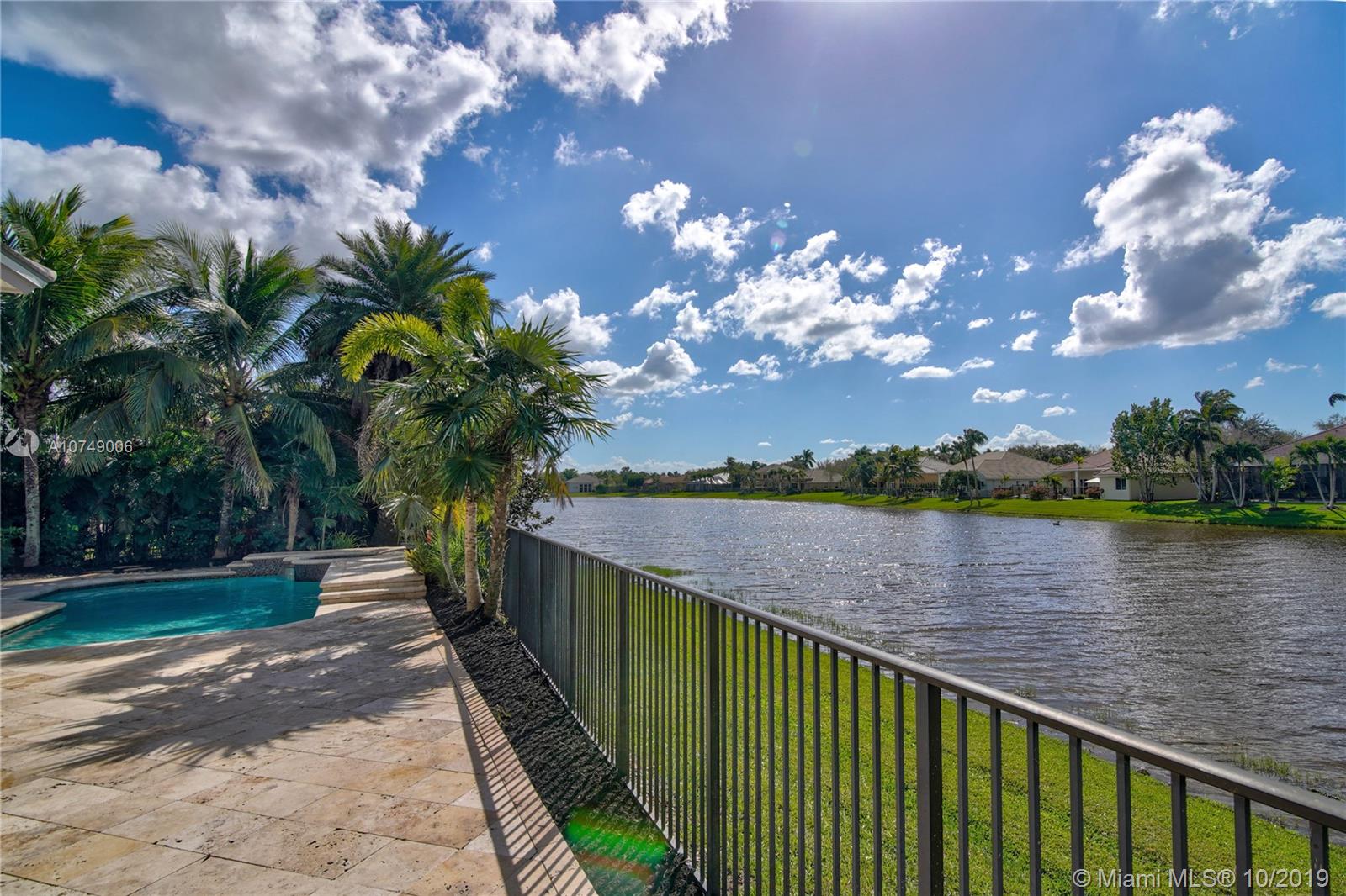 Beautiful upgraded one story home with a Contemporary Flair and high ceilings in the desirable neighborhood of Cypress in the Weston Hills Country Club. Featuring a Spacious Master Bedroom Suite with Sitting Area and Updated Master Bath. Split floor plan with 3 additional Bedrooms with in-suite bathrooms PLUS Den/Office and Billiard/Playroom, and Gym. Gourmet Kitchen with Center Island and Butlers Pantry. Outdoor Summer Kitchen overlooking extended Lanai, Pool and Tranquil LAKE VIEWS. "A" rated schools and easy access to the highway. Designer finishes throughout, Updated Bathrooms, NEW ROOF, 500 Gallon Propane Tank and Much More! Don't miss the opportunity to see this gorgeous home that is perfect for entertaining.