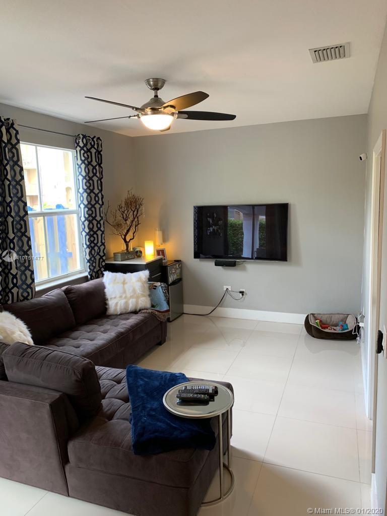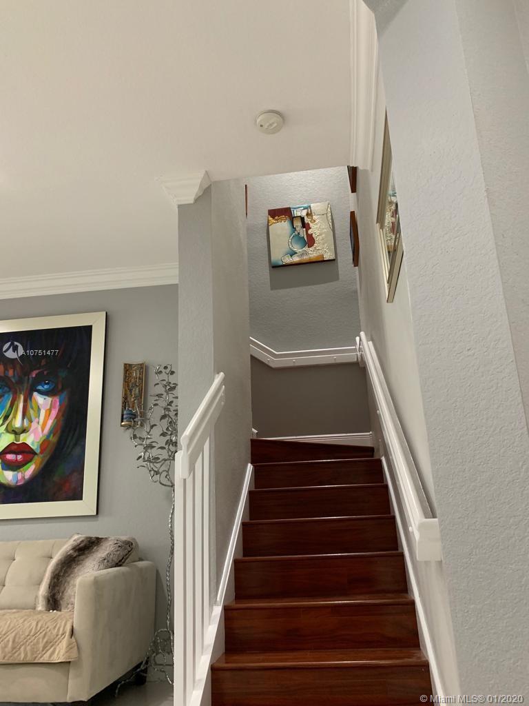 A spectacular completely remodeled townhouse with 3/2.5. A must see. Located in a gated community with 24 hr security. Smart house ready with ring doorbell and smart thermostat. Features dimable recessed lighting in the living room, large white porcelain tile throughout and a new kitchen equipped with lazy susan shelves, trendy quartz counter tops and stainless steel appliances. All bedrooms are upstairs master bedroom with built in closet , along with two bathrooms and the laundry room which has an efficient tank less water heater and extra large w/d. Durable laminate wood flooring and ceiling fans in all the bedrooms. Large wrap around patio with perfect for entertaining or just sitting to relax. 2 assigned parking spaces. Amenities include Clubhouse, gym, and pool, and kids playground.