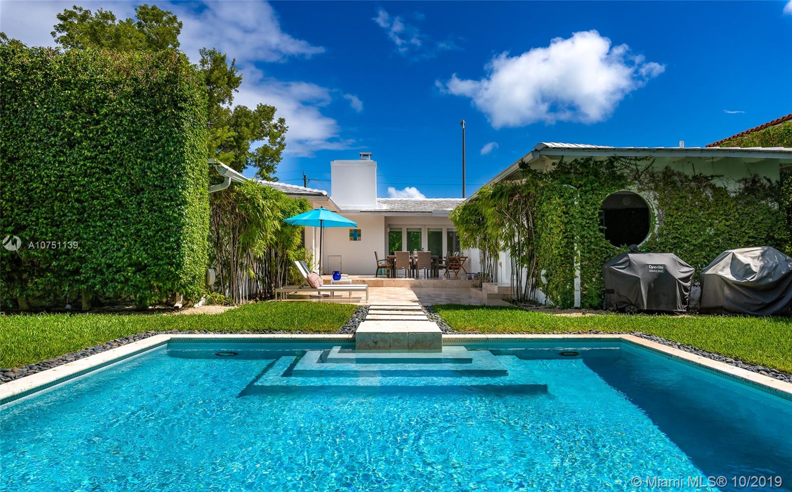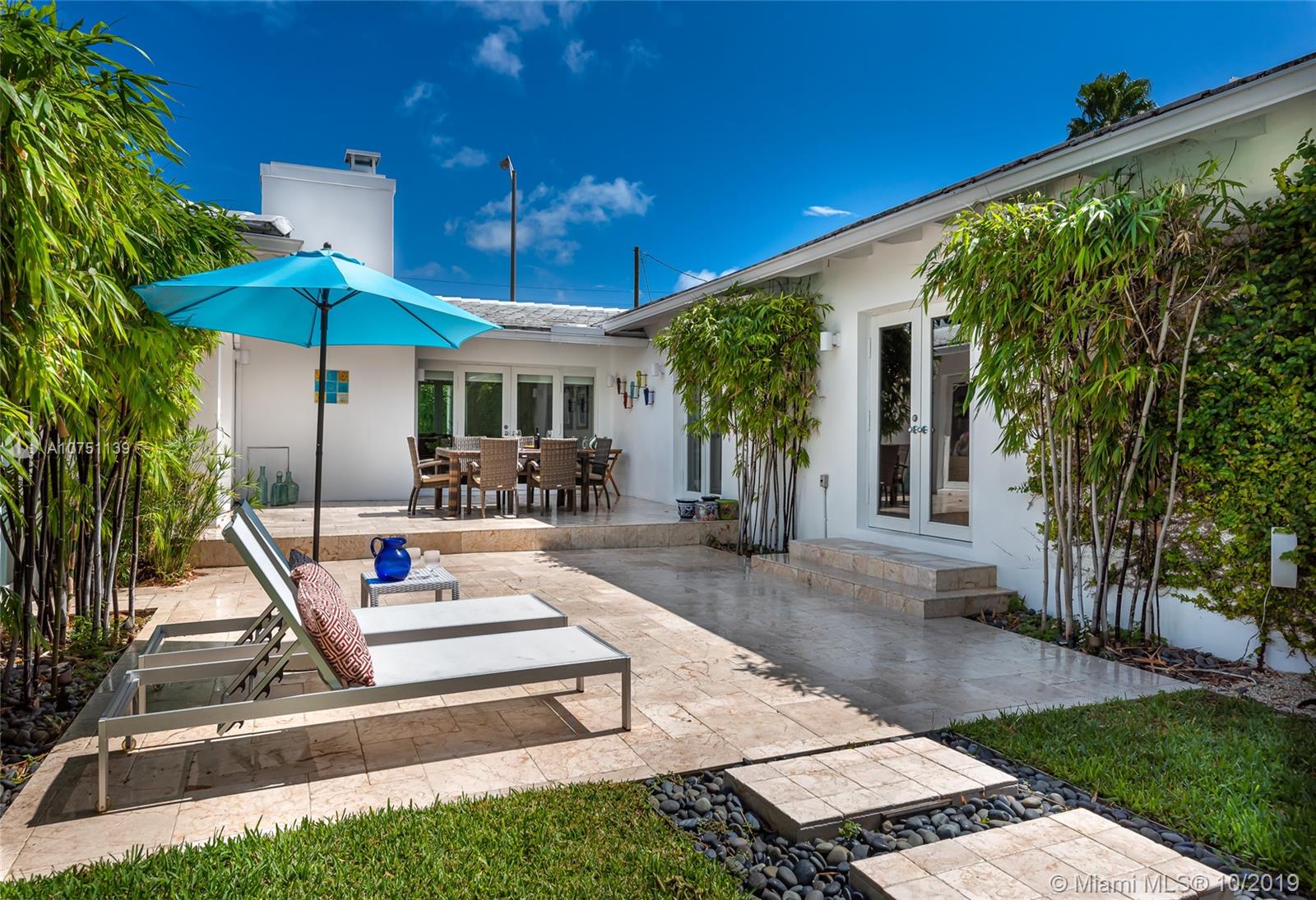 Striking move-in ready MIMO in coveted sought after Mid Beach! This chic designer remodeled gem features roomy 2,311 SF of ample open sunny living spaces. Meticulously finished residence featuring 2 beds, 2.5 baths plus roomy den. Chef’s gas open kitchen with eat-in bar seating, recessed lighting, surround audio system, terrazzo floors, & impact windows/doors. Fall in love with the resort style pool surrounded by manicured landscaping, professional lighting, & 20 ft hedges for the upmost privacy. Gated 8,628 SF oversized corner lot with 2 car garage on 56th street for easy in and out entering and exiting.