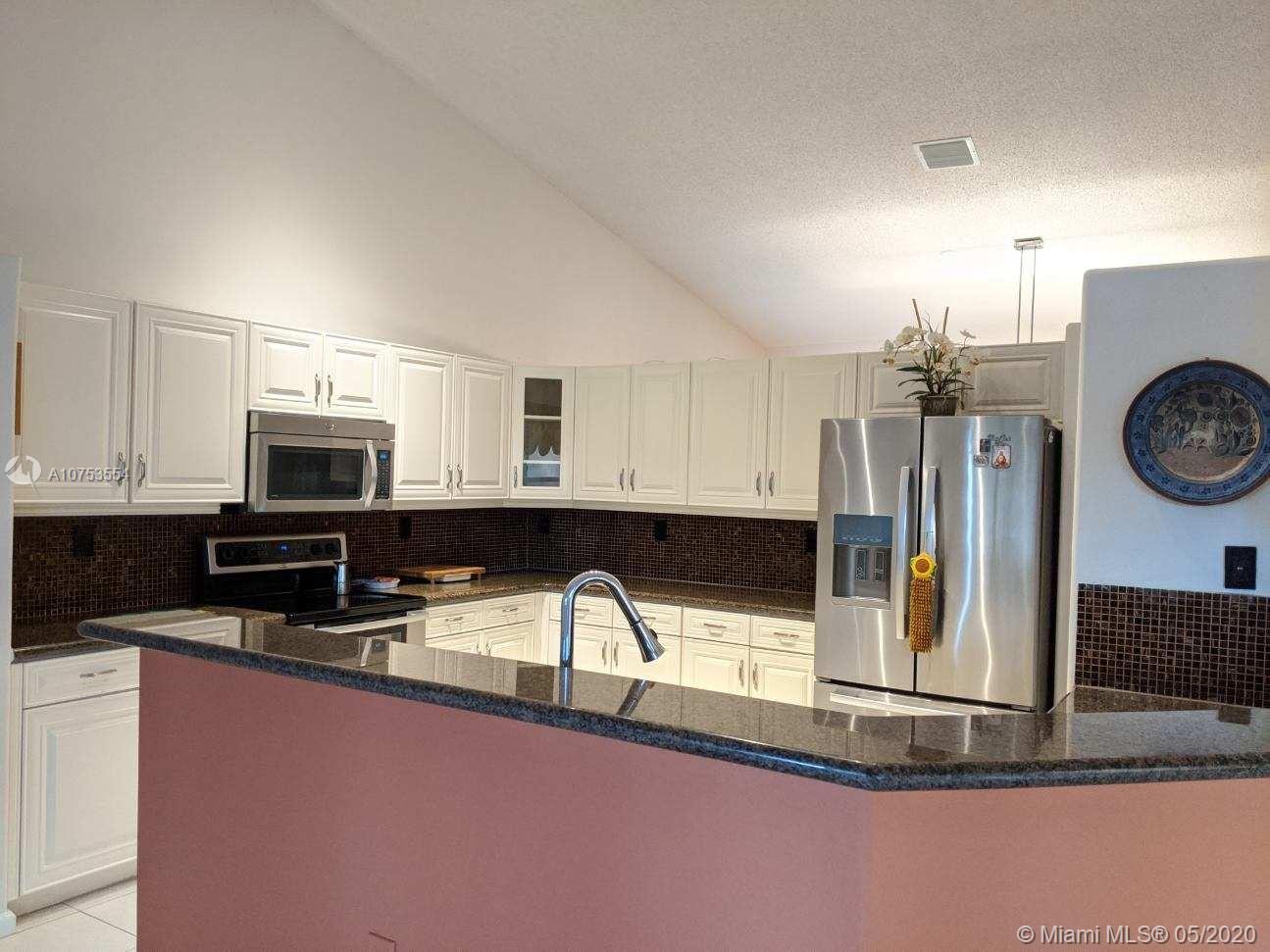 ***MOTIVATED SELLER***Alhambra gated community!!!...This One story 3bed/2bath well kept house sits on a natural preserve with no rear neighbors for maximum privacy. Gorgeous landscaping. Great school zone. Wood and tile floors, updated kitchen with double Oven,stainless steel appliances, Granite Countertops. Tile backsplash. Breakfast area. Vaulted ceilings. Large Master Bedroom and master closet. New A/C...Accordion hurricane shutters. Vacant Property. Quiet gated community with low HOA. Easy to show. Virtual Tour available at https://youtu.be/Ql1M8cMnQ6w