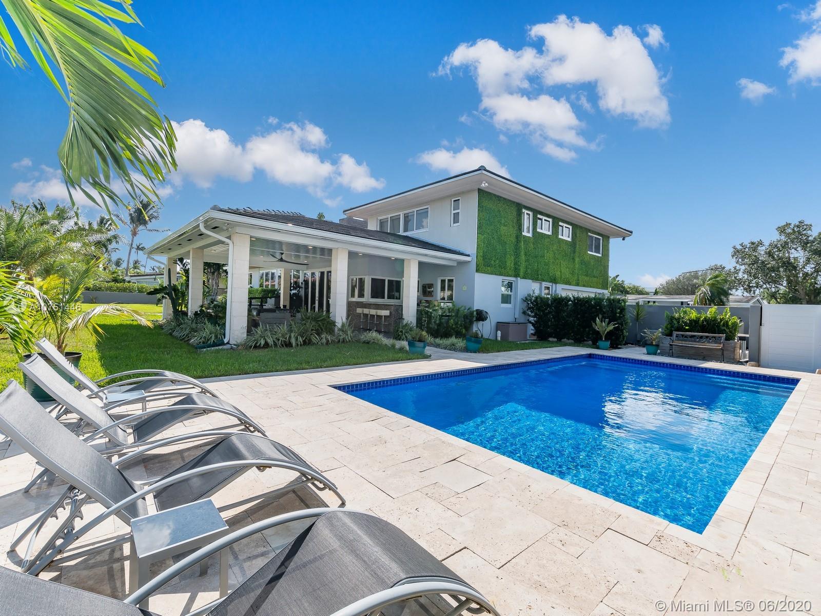 Exceptional waterfront residence in exclusive Miami Shores area, on sprawling 17,850 SF DOUBLE LOT, 150’ new seawall, 100’ linear dock, boat lift w 20,000lbs capacity & no bridges to bay.This tastefully updated 4BR/3.5BA home features high design elements throughout. Open floor plan offers direct views of the waterway. Enjoy renovated kitchen with high-end cabinetry & GE stainless steel appliances including large double door fridge and pantry.Elegant free flowing living area includes open dining room, spectacular fireplace, den, office & guest bath. 2nd story includes master bedroom w updated en-suite bathroom w luxurious shower, double sink & his/hers closets. Designed for indoor/outdoor living w large covered terrace, marble full bar, gas grill & saltwater pool- perfect for entertaining.