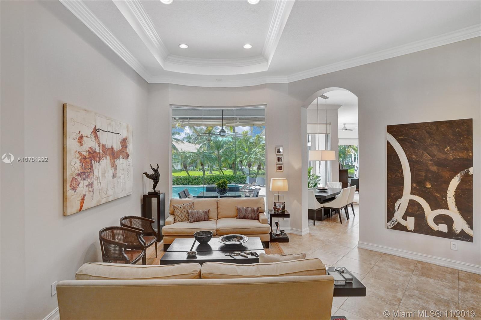 DO NOT MISS THIS GREAT OPPORTUNITY TO LIVE IN THIS RESORT LIFESTYLE COMMUNITY! THIS HOUSE HAS A BREATHTAKING VIEW! This beautiful one-story home sited upon a cul-de-sac waterfront lot with fountain view. The extra-large fenced lot is perfect for entertaining. Impact windows, accordion shutters, motorized awnings, vaulted ceilings, SS appliances, crown moulding, contemporary lighting, all the bedrooms have solid surface though-out floors, custom made finished closets, wood doors, custom shades and much more. HOME PROTECTION PLAN included. Three car garage with epoxy flooring and storage cabinets. This gated community offers a clubhouse, tennis course, playground, gym, basketball court and a resort-style pool. Located close to shopping and walking distance to worship. A must see!