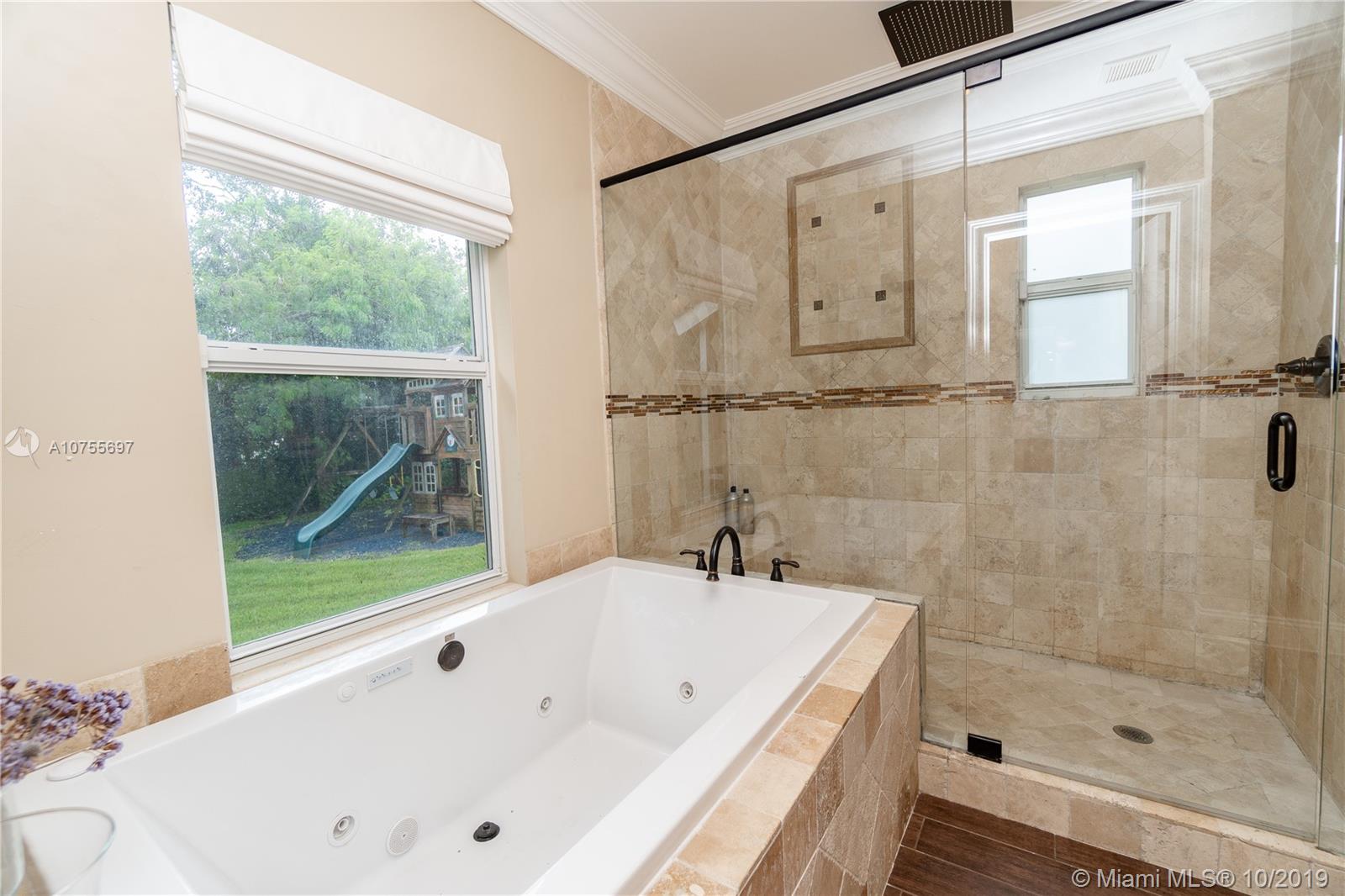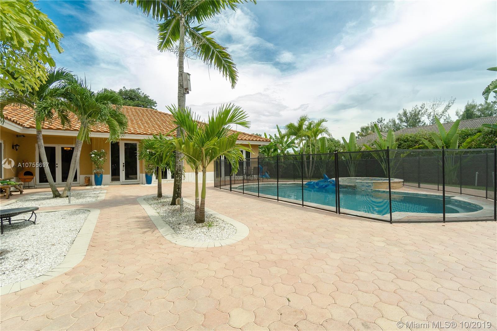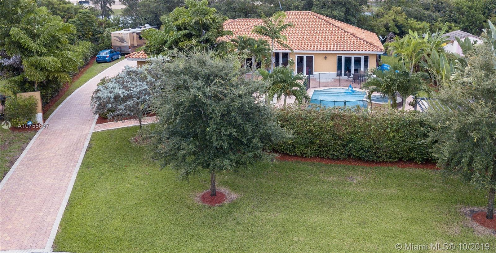 Beautiful custom built home on a half an acre lot in Plantation Harbor. Privacy wall along the front of the property with a motorized vehicle gate. This hacienda-style home offers lots of privacy with a pool and heated jacuzzi waterfall. Home features four large bedrooms with three and a half bathrooms, separate den/office, three-car garage, open floor plan with travertine marble flooring. Kitchen and bathrooms feature granite counter tops. Hurricane high impact windows and doors are installed for security and safety. This home also has a split bedroom plan. The fourth bedroom can be used as a second master/in-law suite with a bathroom and a separate entrance.