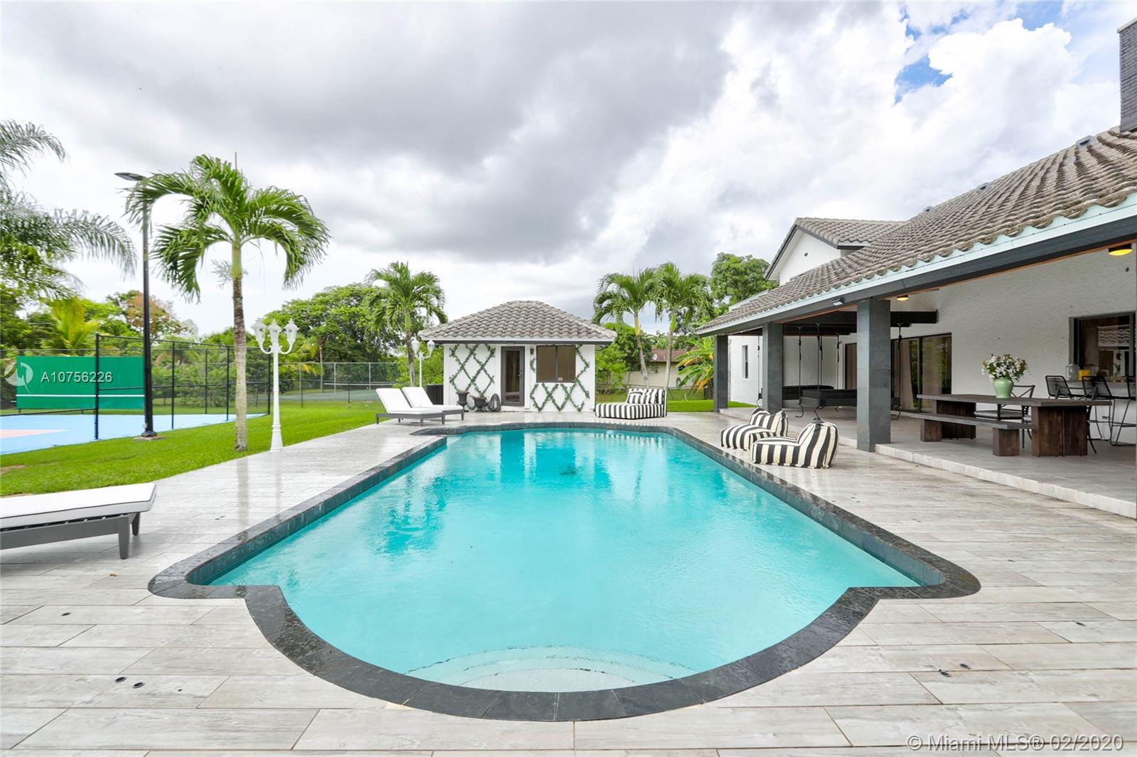 Do not miss out on this one of a kind estate in Majestic Groves in Davie. This 5/5.5 with over 5,000 square feet has been completely renovated! A brand new custom kitchen was put in with top of the line appliances, countertops, and cabinets. All of the flooring was re-done and every single one of the bathrooms as well. The backyard was totally redone and the tennis court was redone with a fast-dry court, ball machine, and new hitting wall. The pool house out back was redone is a full 1/1 that can be used as a guest house. Roof and A/C's were just replaced and the entire home is staged with over $200k worth of custom furniture. This is a truly incredible home!