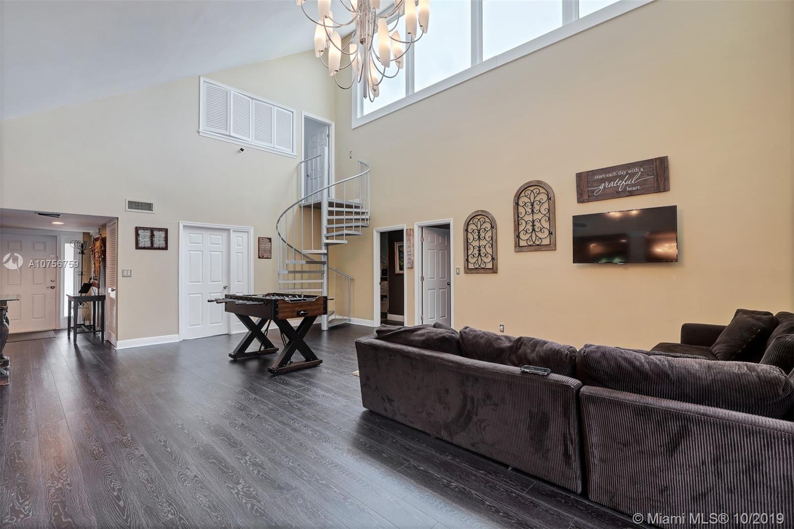 Look no further! Completely remodeled home throughout. New roof, new impact windows & doors, new AC, remodeled open kitchen with gorgeous cabinets, Granite tops & Stainless Steel appliances, lots of counter space. Open floor plan concept, soaring ceilings & lots of windows bringing in natural light. High-end laminate floors throughout. A gorgeous Master bedroom with a remodeled bath and 2 walk-in closets., 2 other bedrooms on the 1st floor , a cool spiral staircase leading to the 4th bedroom upstairs with vaulted ceilings and a walk-in closet , perfect for an office or a teenager. A great size backyard with a large pool & a concrete wall for full privacy. Garage used as storage and can easily be converted. All this on a cul de sac location in sought after Canterbury! LOW HOA!