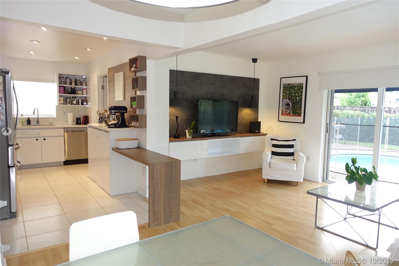 This wonderful property has so much to offer, including an amazing floor plan with 3 bedrooms plus studio and 2 full bathrooms. It is impeccably remodeled with a NEW ROOF 2019, new kitchen, new floors, new A/C , and a fantastic yard with a nice pool... it is ready to receive a new family. The owner is willing to include the furniture. It is in a quiet and nice neighborhood, no association cost and being centrally located, it has Everything you need!