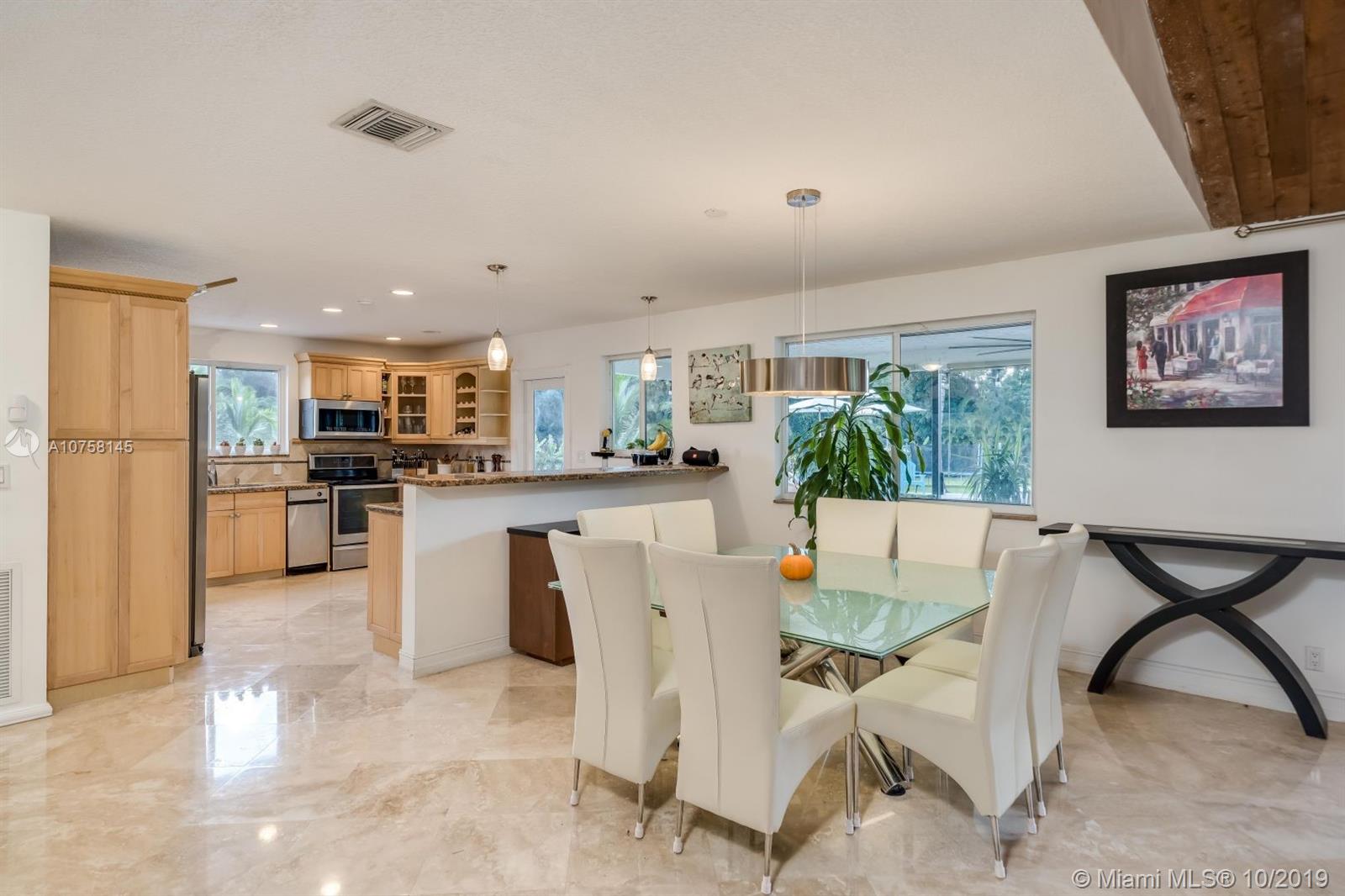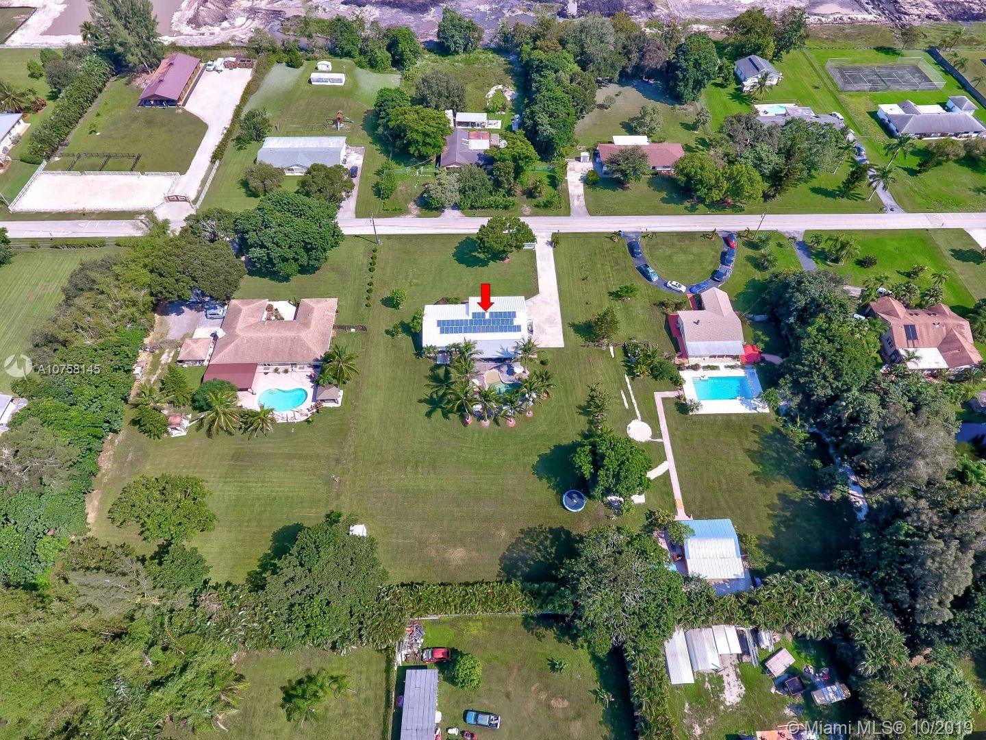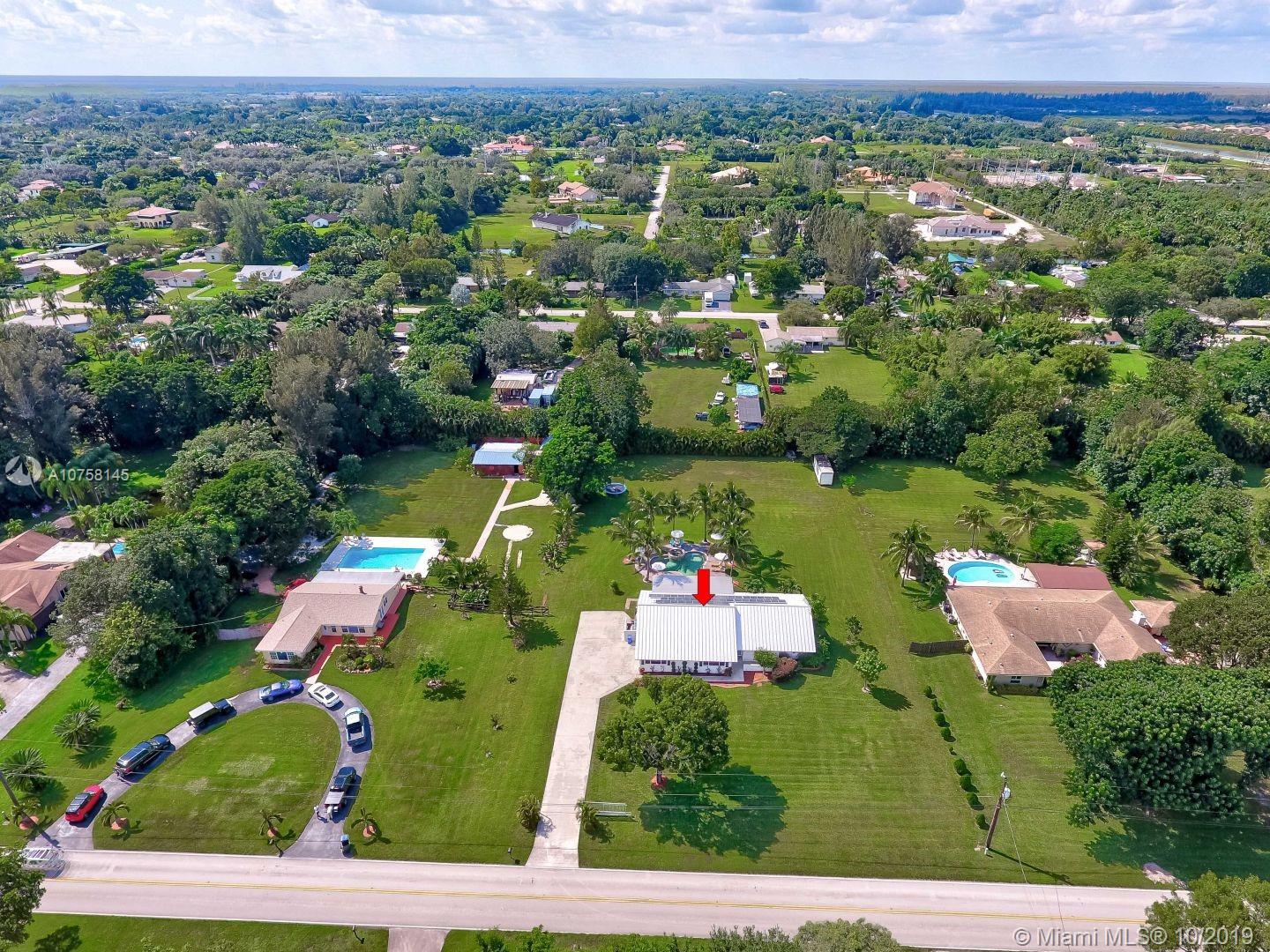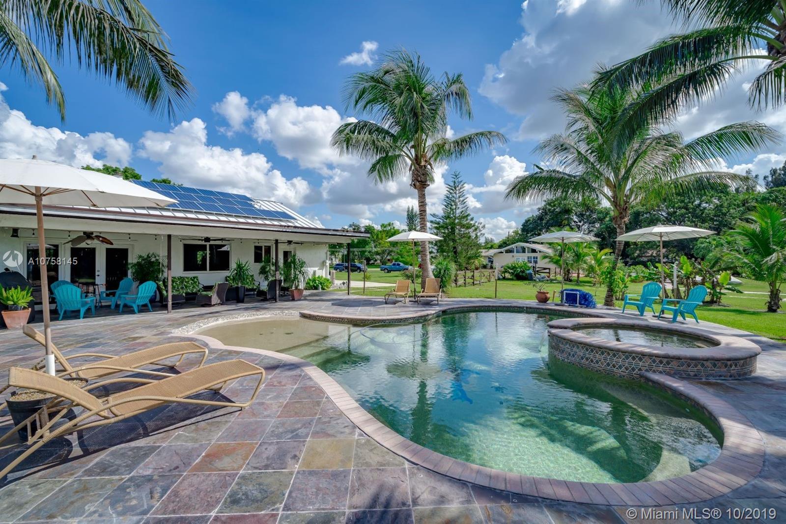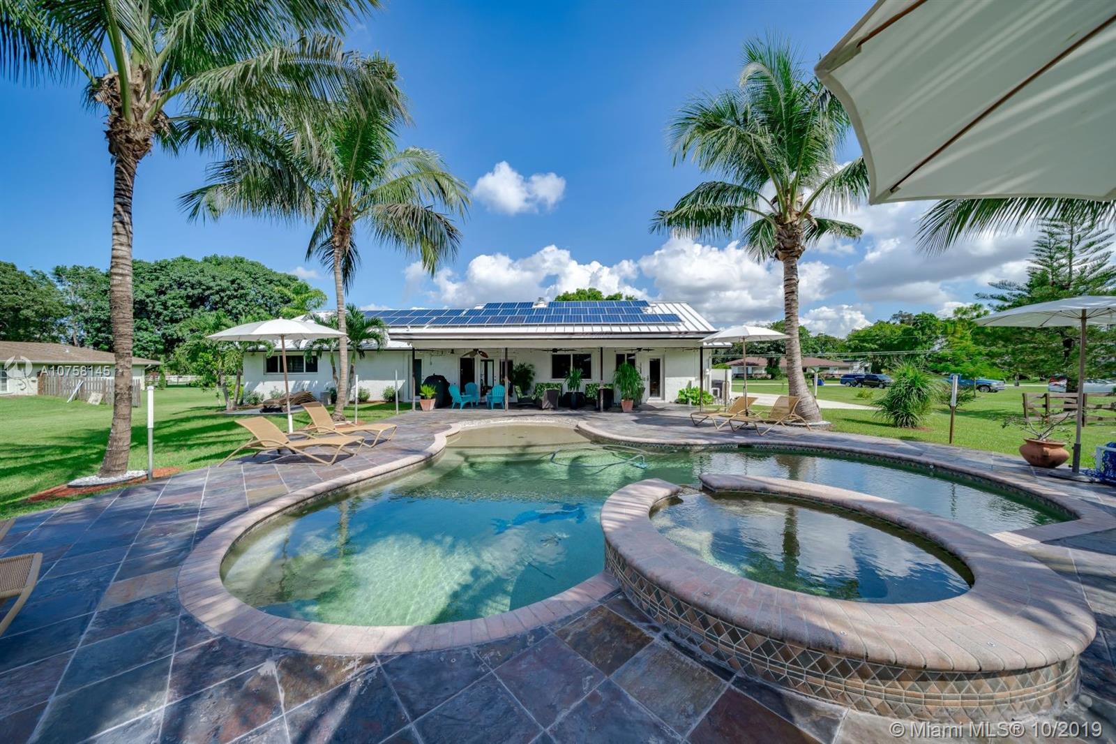 Amazing 1.19 acre 3 bedroom 2 bath home in Southwest Ranches! Completely upgraded, entertain friends and family with custom designed heated pool with salt chlorinator, new 80 year plus Metal roof, new completely renovated master bathroom, home theatre room, impact windows and doors for hurricane protection, Travertine marble floors. If you like working out, this home features a complete commercial grade gym with all the equipment (not included but negotiable). Tons of storage space including storage in attic with subflooring, and 12x24 container/shed. All furniture is negotiable. Don't pay for water, this home includes deep well water pump with water softener, also a shallow well for possible irrigation system. Save electricity with 44 solar panels, and much more, come see it now!