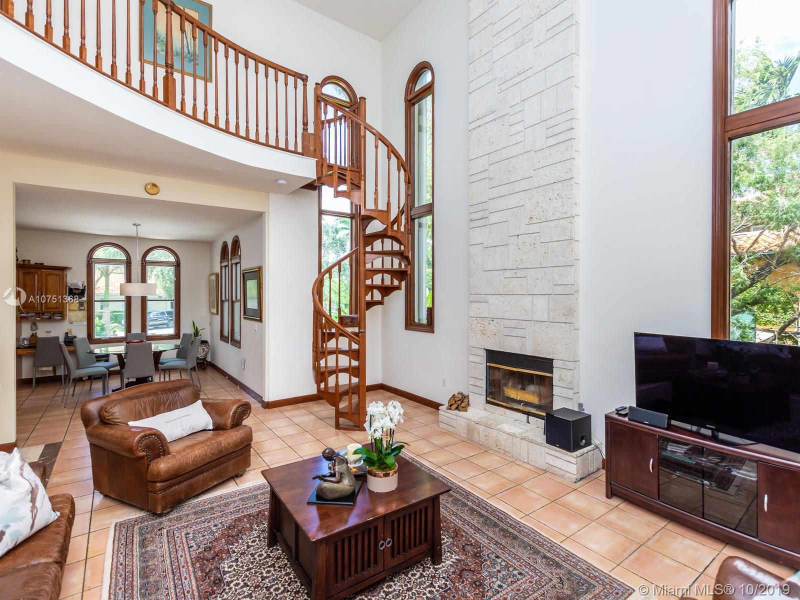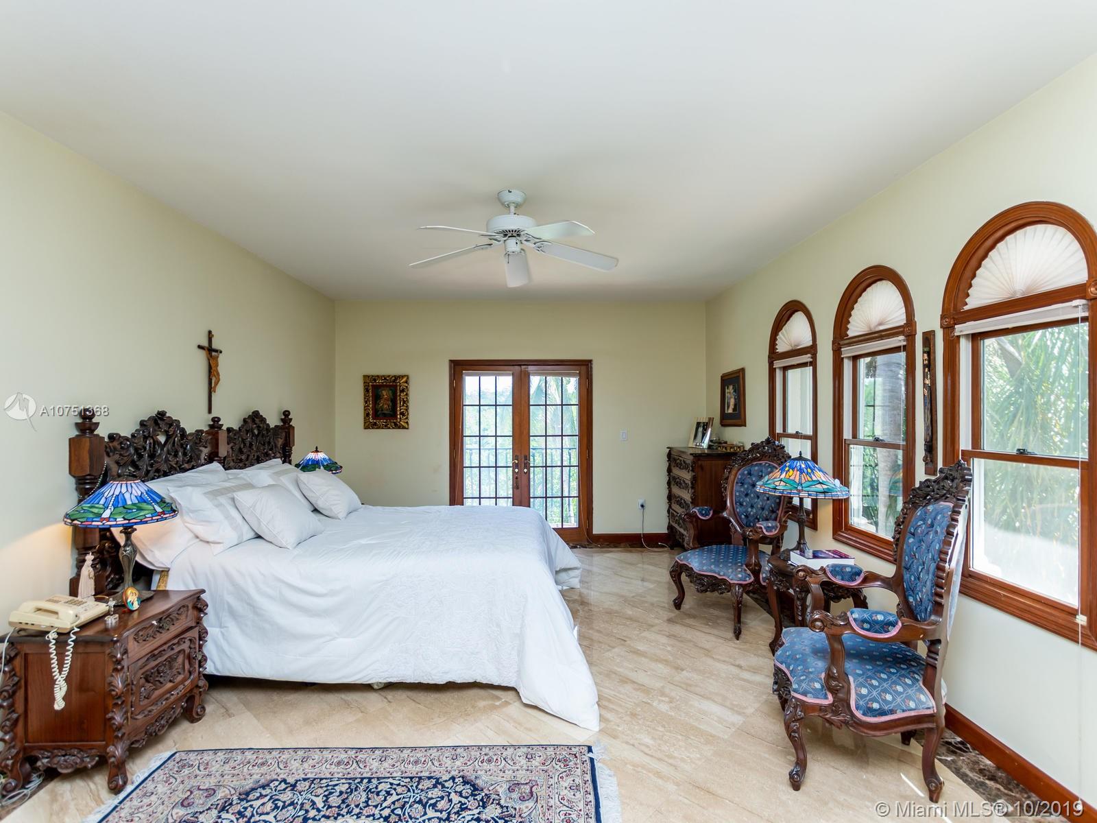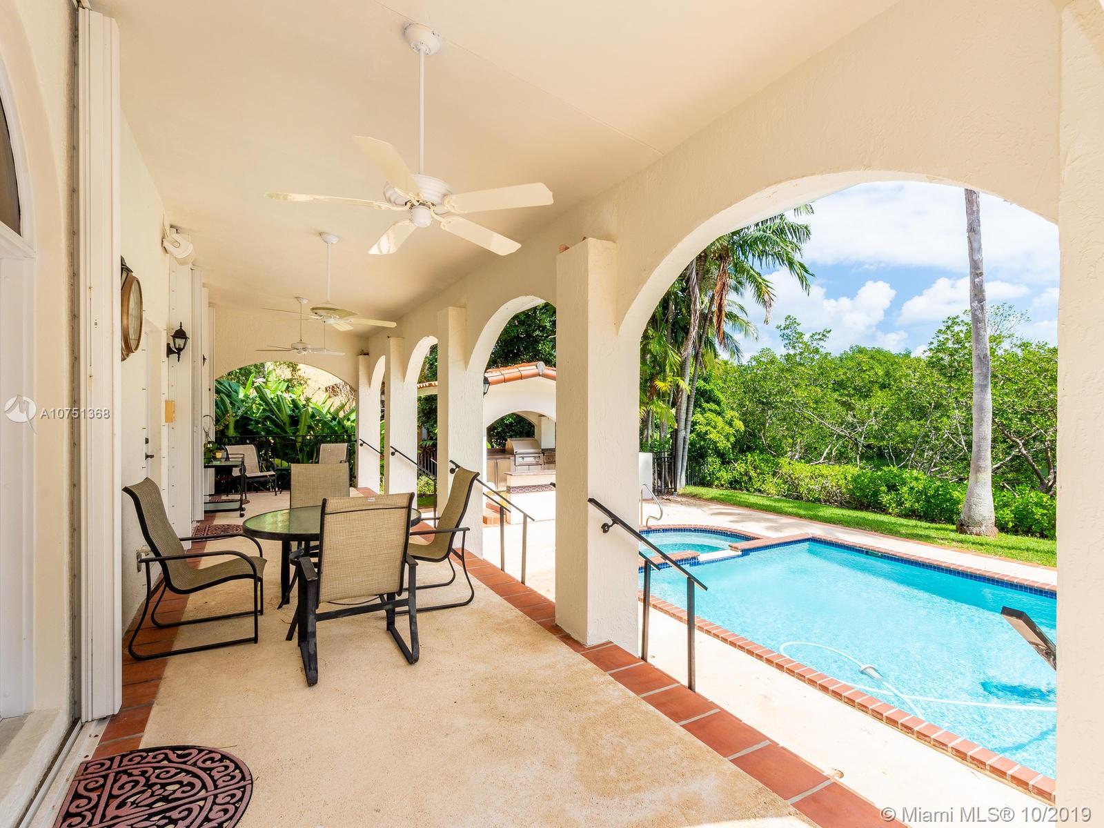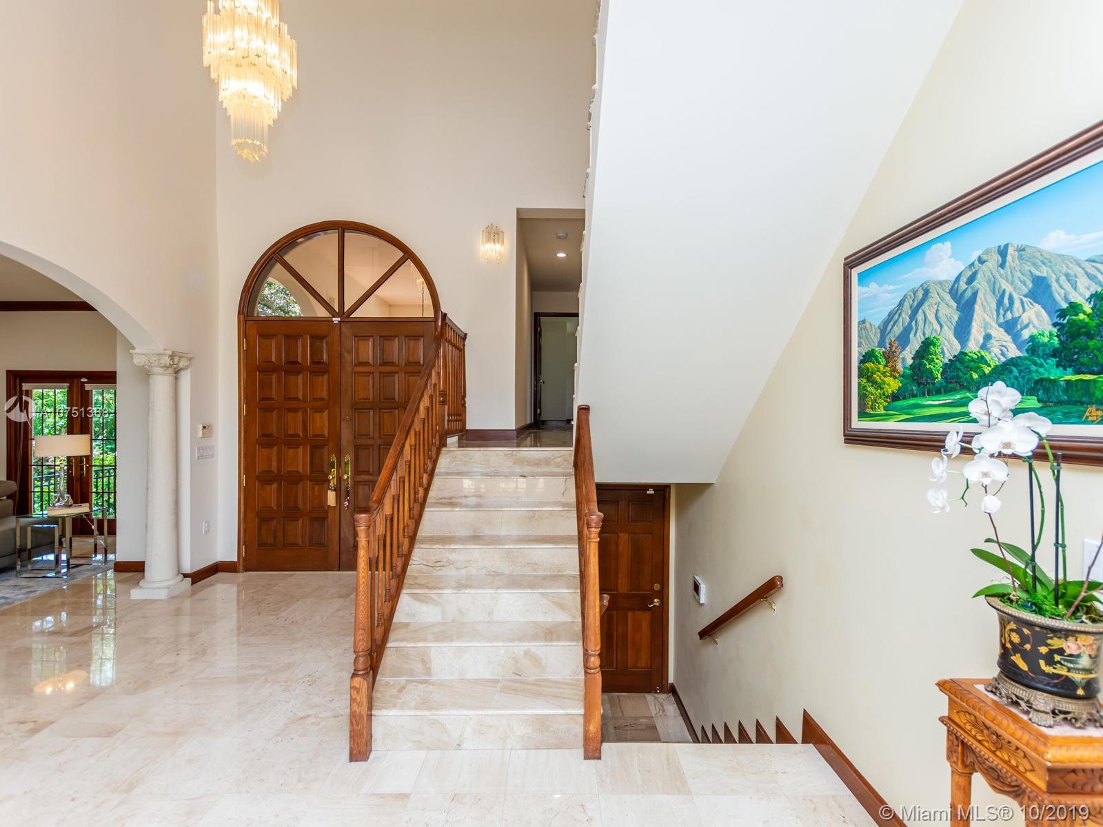 Poised in a well guarded community, this elegant tri-level Mediterranean residence possesses great style and warmth, achieved through exceptional design and superior grade construction. A six bedroom and six and one half bath with serene views of the lush patio and pool area, private water views and majestic mangrove preserve. Finely crafted custom woodworks with gleaming beige marble floors. Entry foyer, formal living room, formal dining room and large traditional library. Two story keystone fireplace in spacious and inviting family room. Newly renovated dock.