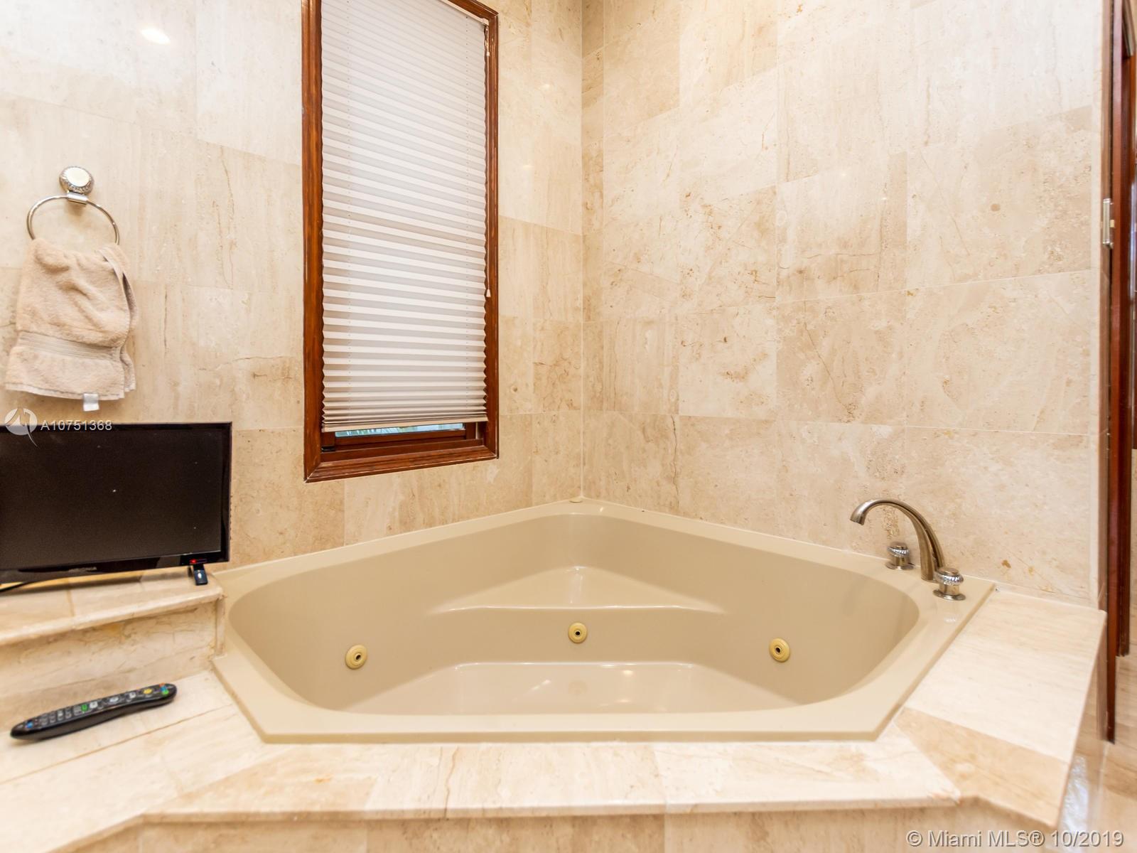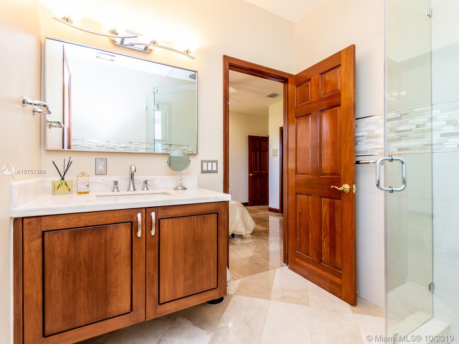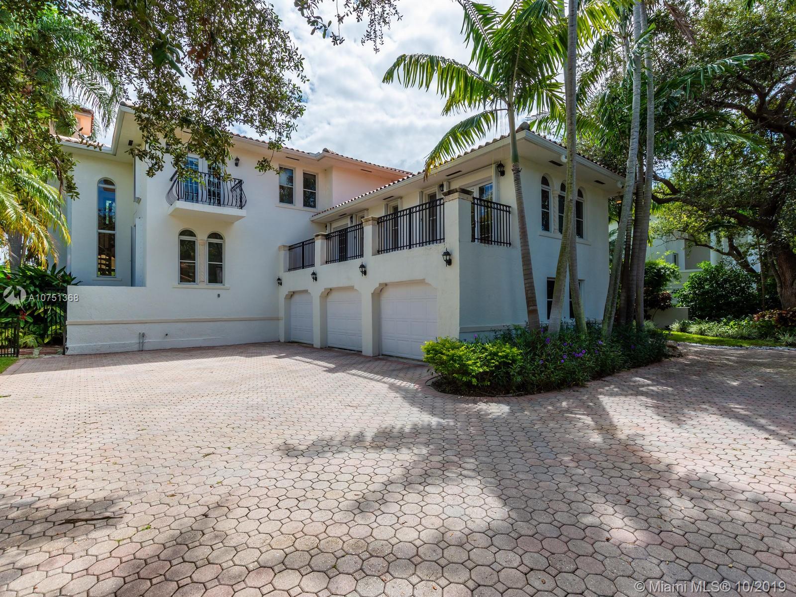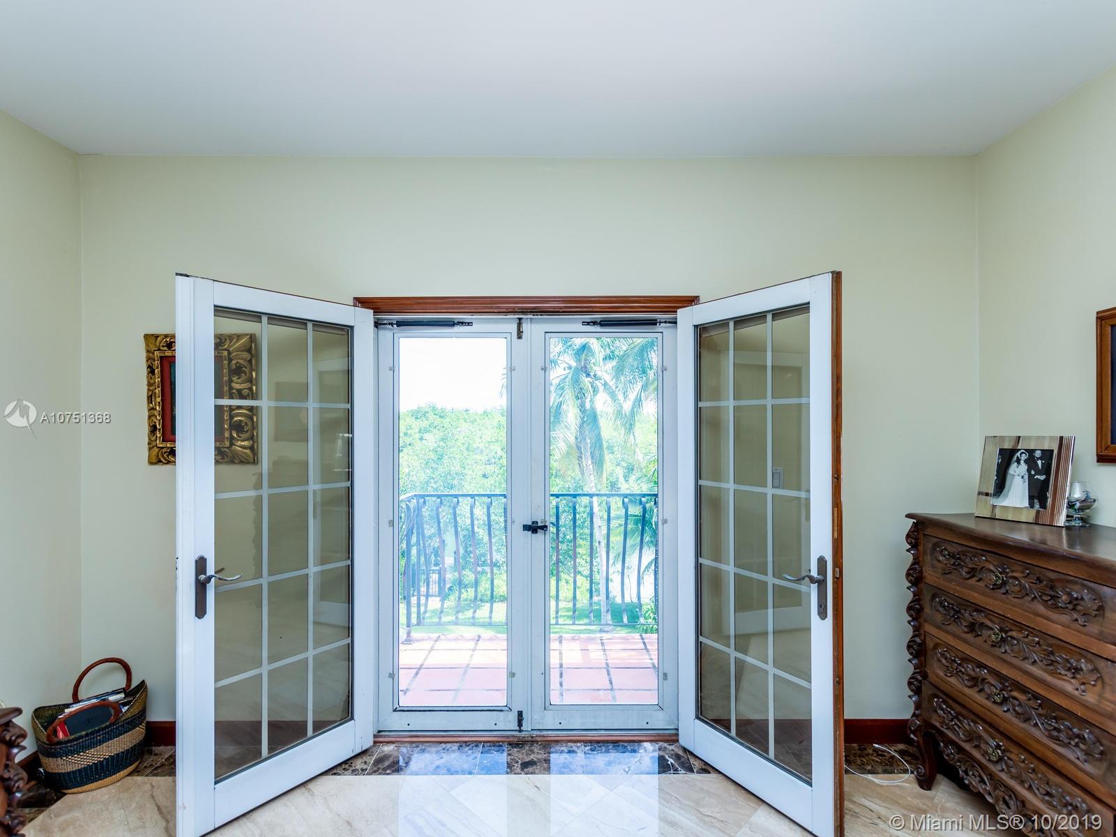 Poised in a well guarded community, this elegant tri-level Mediterranean residence possesses great style and warmth, achieved through exceptional design and superior grade construction. A six bedroom and six and one half bath with serene views of the lush patio and pool area, private water views and majestic mangrove preserve. Finely crafted custom woodworks with gleaming beige marble floors. Entry foyer, formal living room, formal dining room and large traditional library. Two story keystone fireplace in spacious and inviting family room. Newly renovated dock.
