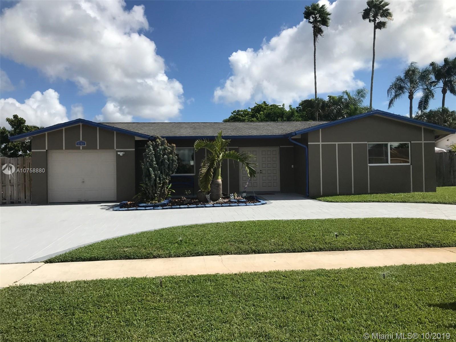 Move In Ready Home with 4 bedrooms (possible 5th), 2.5 bathrooms. 3 w/ walk-in closets. Half bath is great for guests. Hurricane impact windows throughout, 4 large Hurricane Impact Glass Doors in the rear Florida room with views of the peaceful Gazebo. Porcelain tiles throughout. The M/Bath has jetted jacuzzi tub, glass enclosed shower, bide, and large walk-in closet. Solid Maple Wood and Granite in Kitchen and Bathrooms. Stamped Concrete Circular driveway. Garage conversion with AC, office room, or possible 5th bedroom. Separate Laundry room. Tankless water heater. Updated with PVC plumbing, No cast iron pipes. Upgraded Electrical Panel and wiring. Air conditioner is 3 year old, 5 ton Rheem high efficiency. Large fenced lot with space on sides to fit a boat. Room for Pool. So Much More