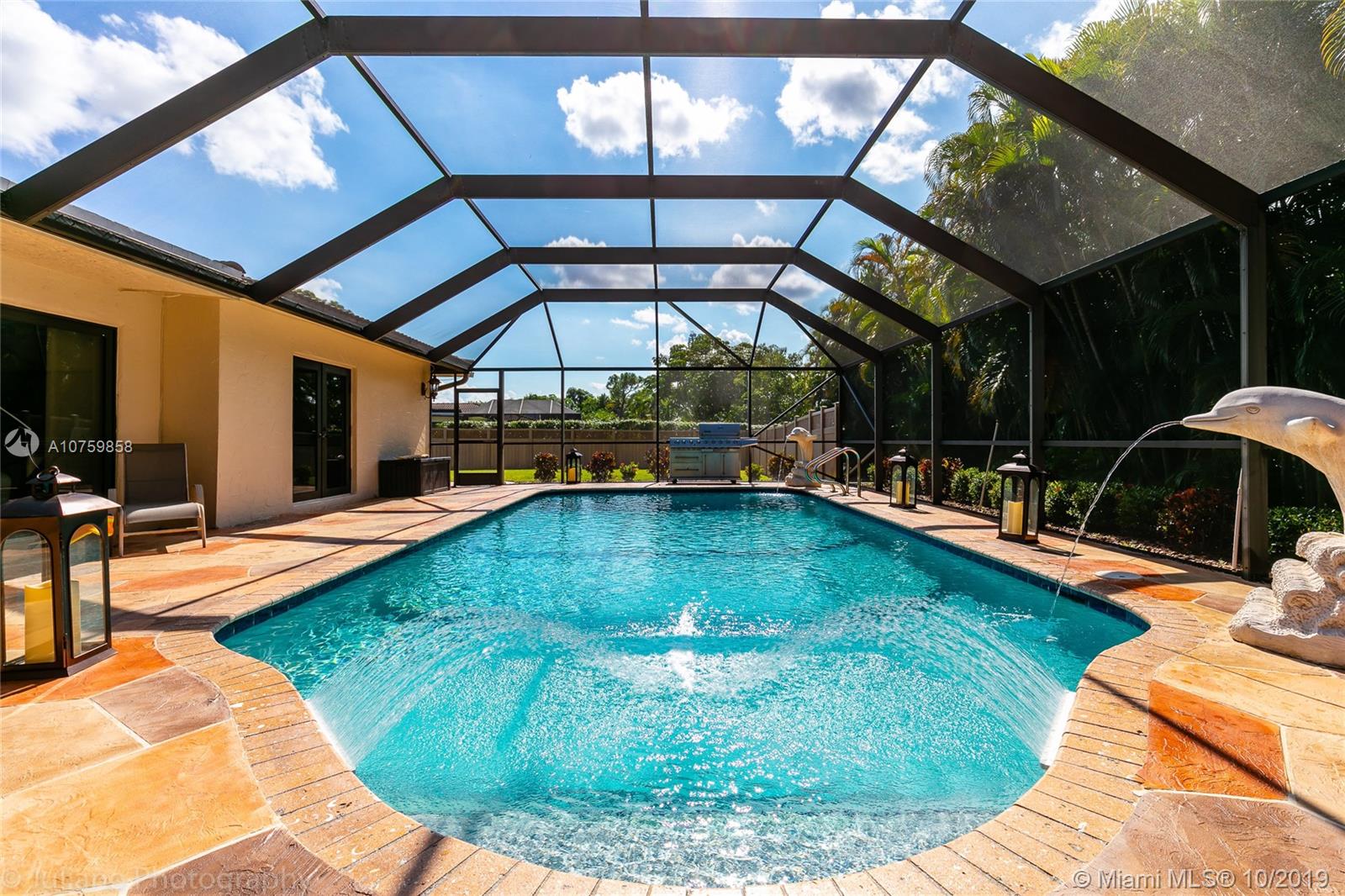 Immaculate 4bed 3bath(updated) private (screened) pool home with water view in Coral Springs Country Club West. No HOA. 18k sqft lot with 2000 sqft fenced area beside the pool, wonderful for families with children and pets. 2 Master suites w/ spilt floor plan. The kitchen offers newer stainless appliances with a 14 ft island, formal dining, and eat in kitchen. Impact Windows throughout. Wouldn't it be wonderful to spend the holidays with family and friends in such a great property?
