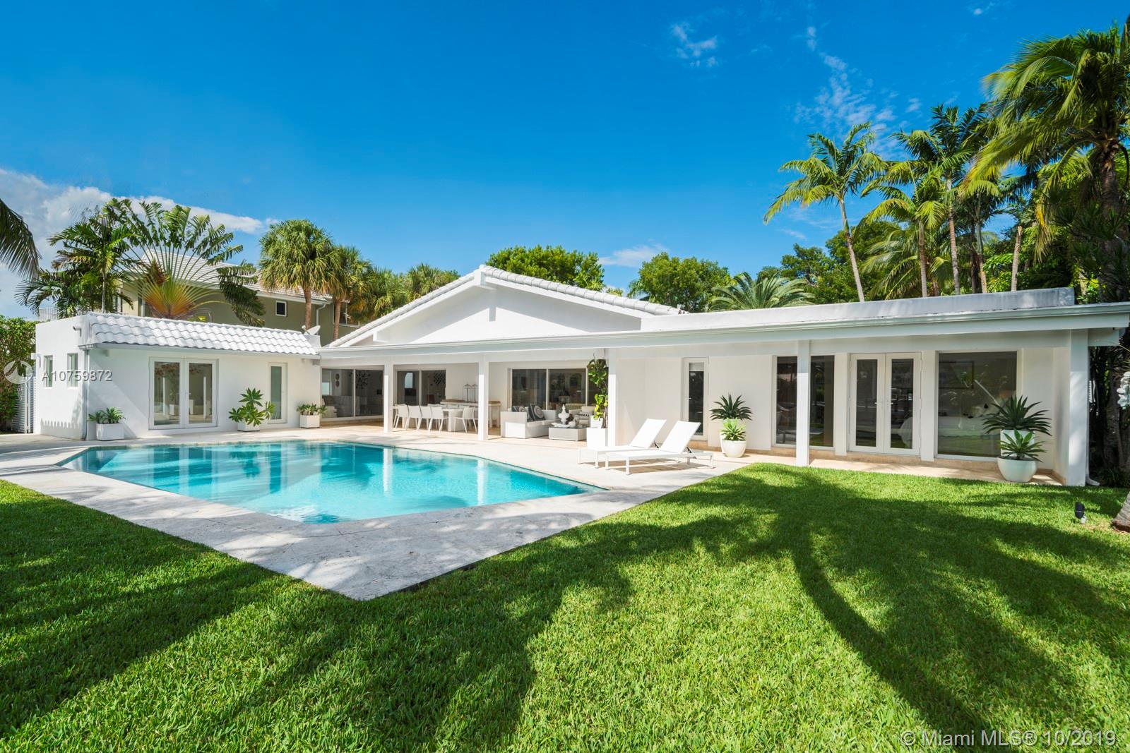 Stunning, magazine quality waterfront home on the exclusive & idyllic island of Key Biscayne. Enjoy water views from light-filled living spaces w/ soaring, vaulted wood-beamed ceilings, a striking white color palette & a modern vibe throughout. Updates include new: limestone flooring, spa-like baths, impact glass, interior & exterior Sonos sound system, new dock w/adjoining floating dock & new stone terrace & pool deck. European-style kitchen features black granite countertops, Viking appliances & breakfast area. Lush, tropical garden surrounds the resort-like outdoor space that offers an expansive covered terrace, pool & gazebo w/ spectacular sunset views. Protected, private dock w/davits & no bridges to the bay. Direct ocean access, 180’ turning basin at the head of the canal.