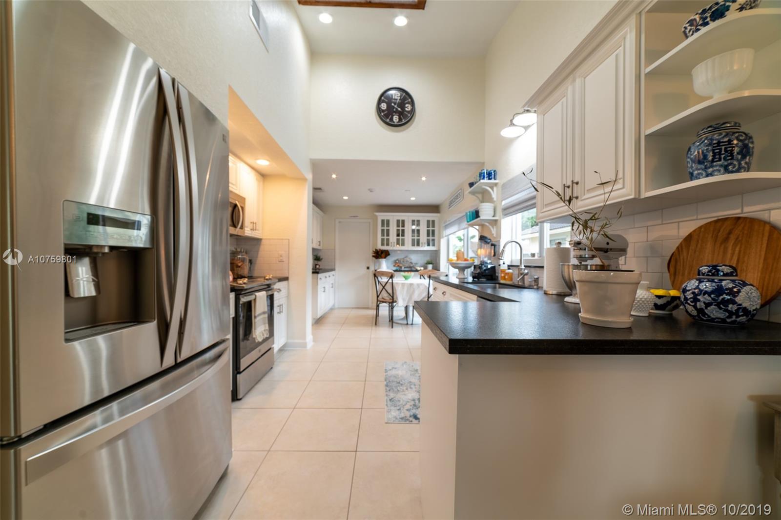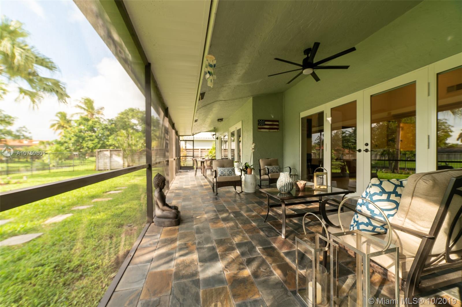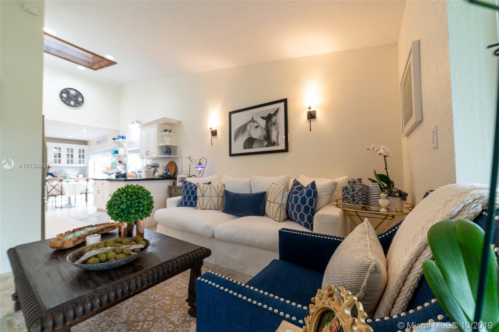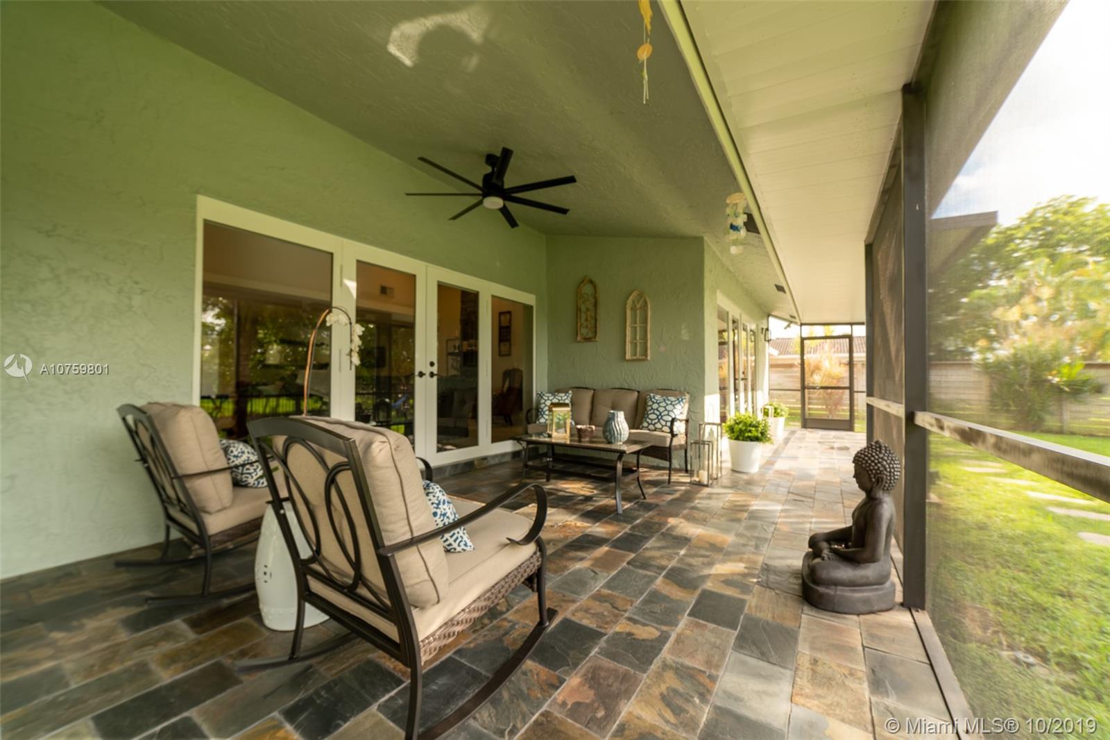 Stunning & Elegant 4 bedrooms 2.5 baths home featuring open floor plan with spacious, light & airy living areas, opens up to a 60 foot screened patio overlooking the beautiful water and garden. Gorgeous updated kitchen with white wood cabinetry and black leather stone countertops. PGT Impact Windows, Doors & Skylights throughout. High ceilings, renovated bathrooms, plantation shutters, finished closets & LED lighting throughout. On large waterfront lot with mango trees & palm trees. The back yard is completely fenced in and secure for your kids and/or pets. Enjoy fishing on the wide canal on your small boat, or relax watching the tranquil water and songbirds. This home has it all! Ready to move in and enjoy the holidays with your family and friends! Perfect to enjoy the Florida lifestyle.