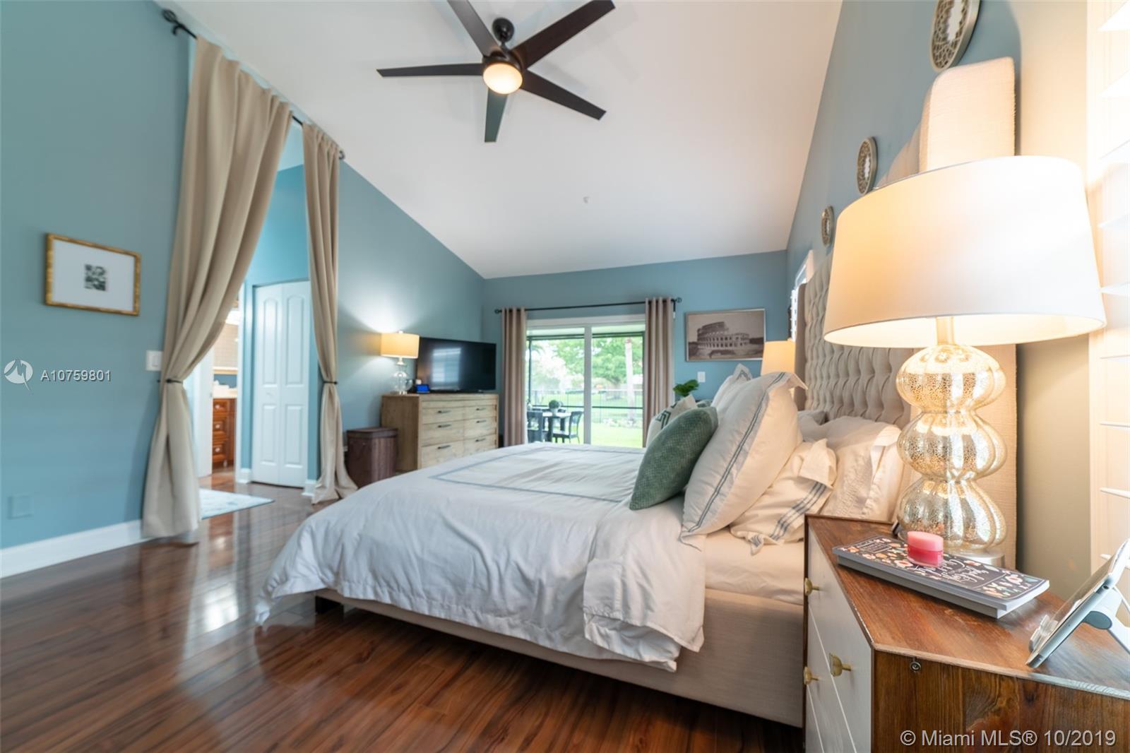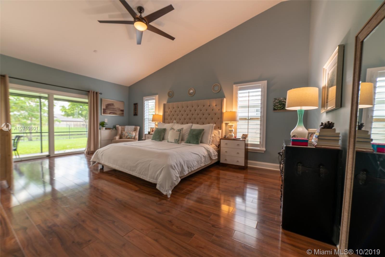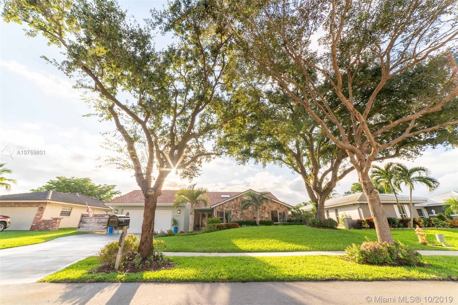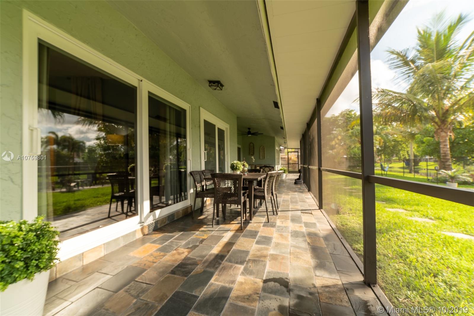 Stunning & Elegant 4 bedrooms 2.5 baths home featuring open floor plan with spacious, light & airy living areas, opens up to a 60 foot screened patio overlooking the beautiful water and garden. Gorgeous updated kitchen with white wood cabinetry and black leather stone countertops. PGT Impact Windows, Doors & Skylights throughout. High ceilings, renovated bathrooms, plantation shutters, finished closets & LED lighting throughout. On large waterfront lot with mango trees & palm trees. The back yard is completely fenced in and secure for your kids and/or pets. Enjoy fishing on the wide canal on your small boat, or relax watching the tranquil water and songbirds. This home has it all! Ready to move in and enjoy the holidays with your family and friends! Perfect to enjoy the Florida lifestyle.